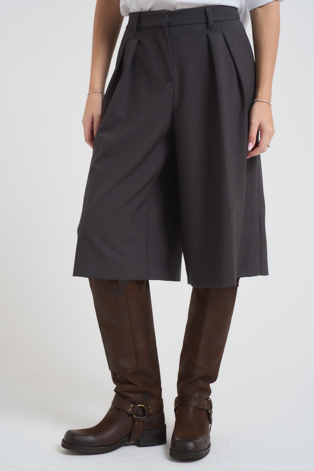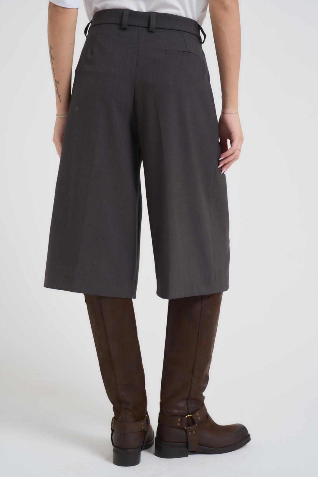 TENSIONE IN Bermuda donna morbidi antracite. Modello con doppia pinces. Chiusura frontale con zip e gancetto. Tasca a filo sul retro. Passanti in vita. Composizione: 63% poliestere, 33% viscosa, 4% elastane. La modella è alta 172 cm e indossa la taglia S.