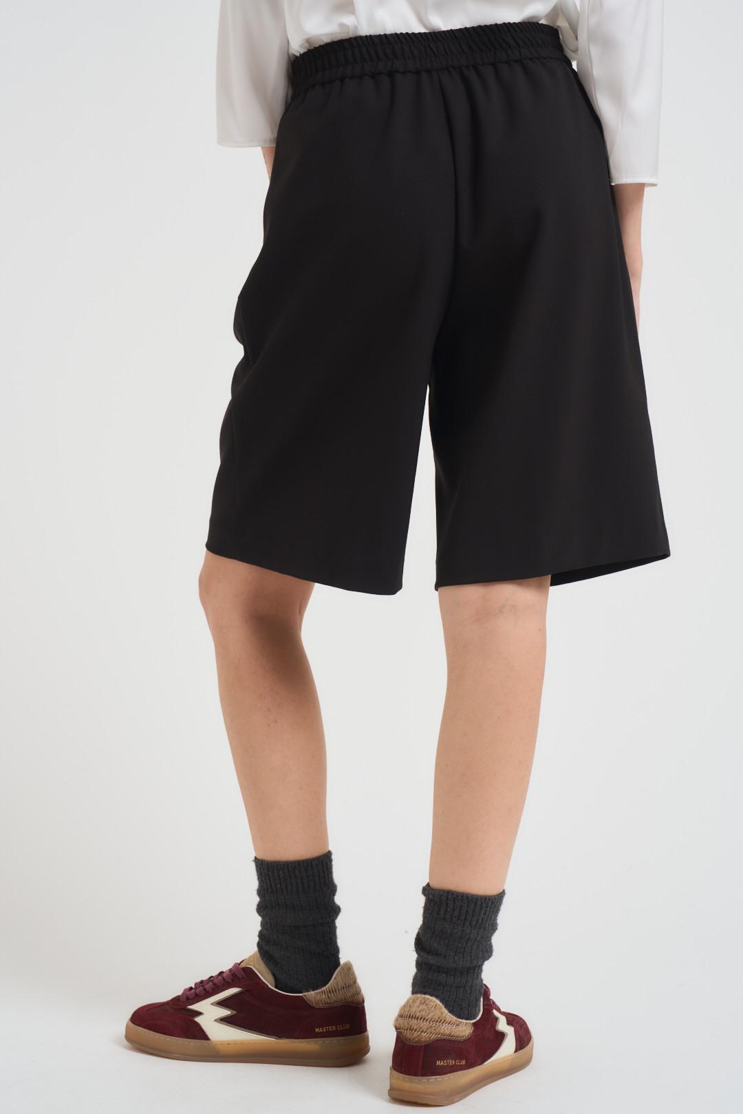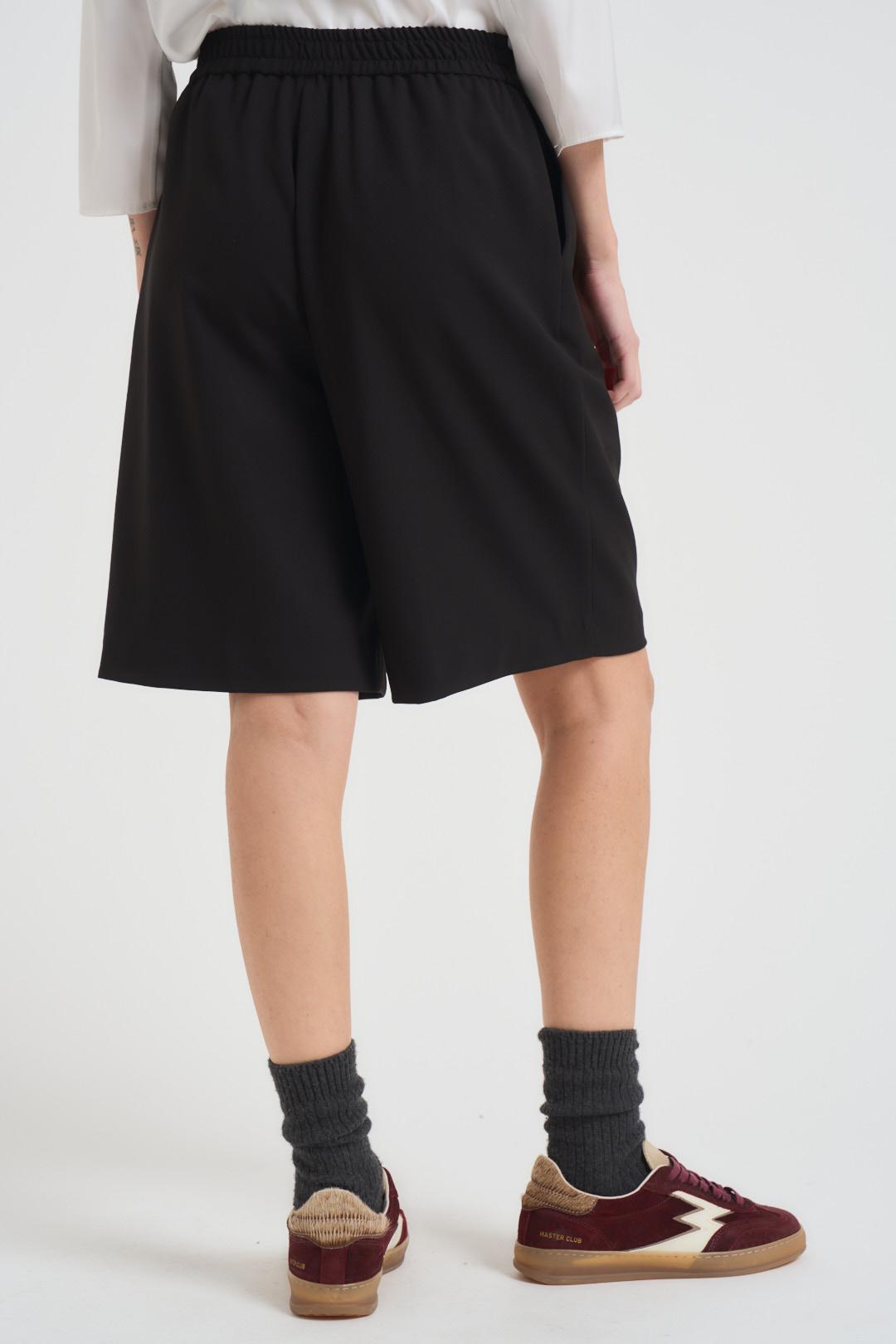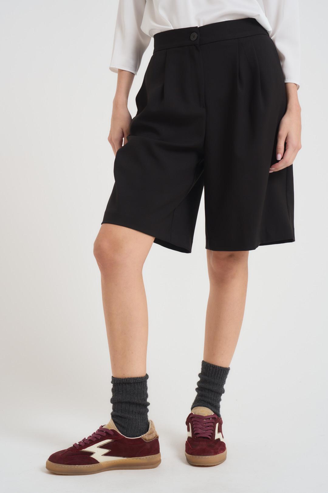 IMPERIAL Bermuda donna over nero. Modello a vita media e gamba larga, passanti per cintura, tasche laterali e chiusura anteriore con bottone. Composizione 100% tencel. La modella è alta 175cm e indossa la taglia S.