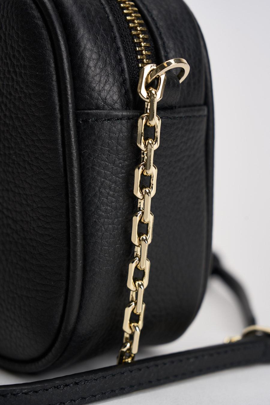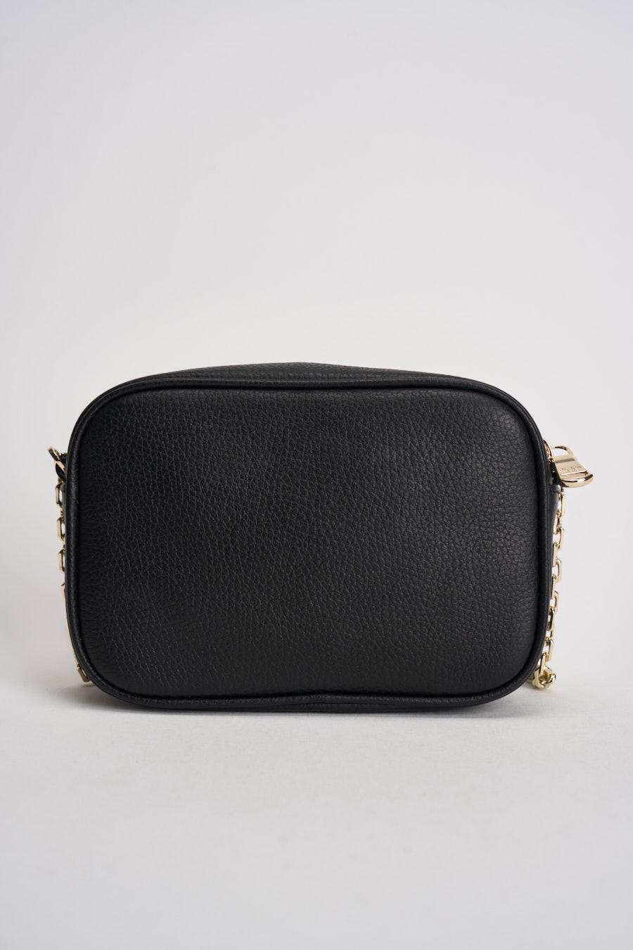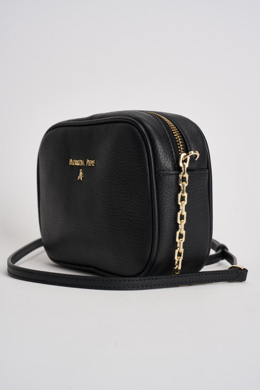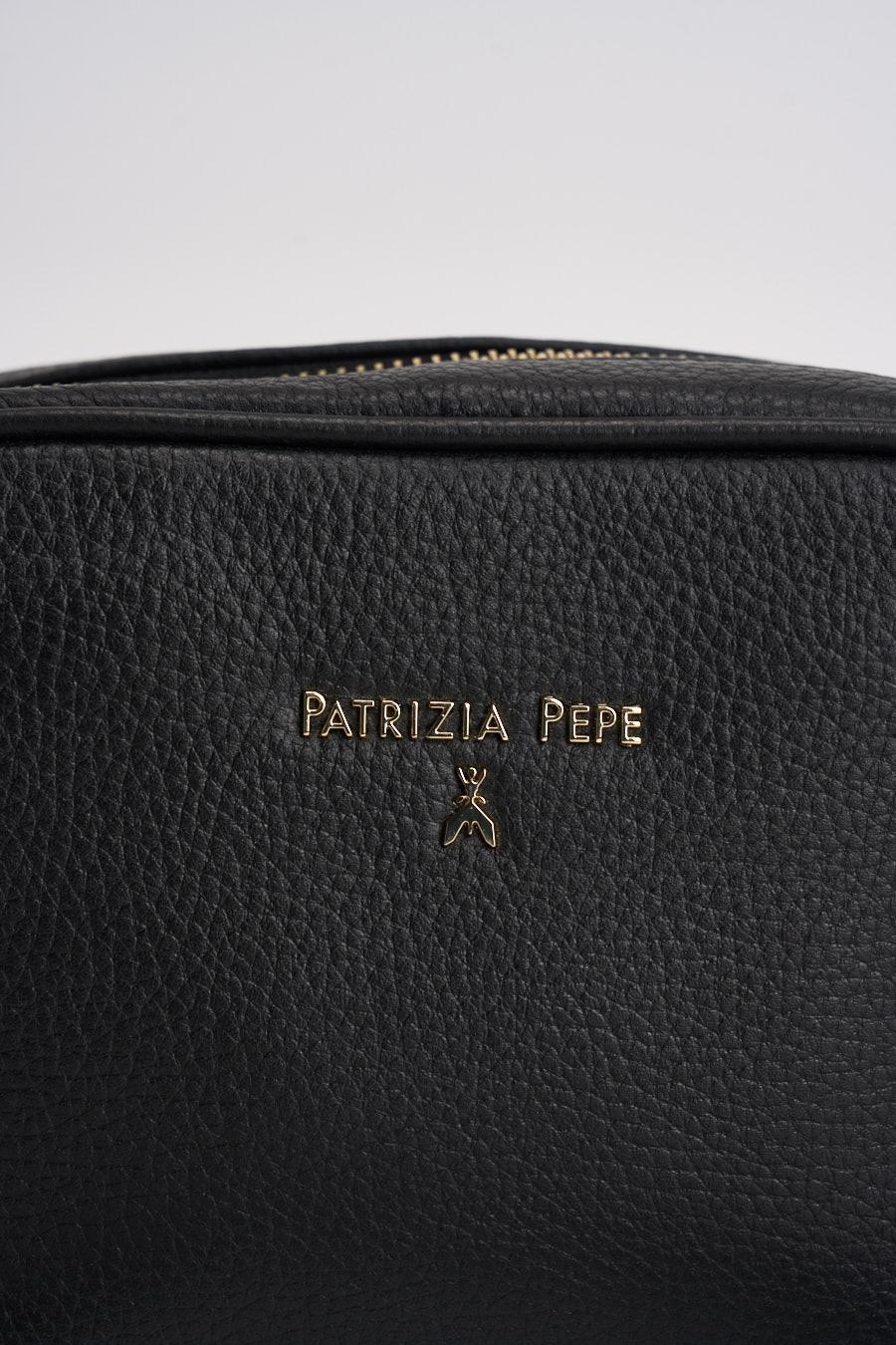 PATRIZIA PEPE Borsa donna a tracolla nera. Modello in pelle, chiusura con zip, regolabile cinghia di spalla, finiture in metallo oro. Fodera interna logata in poliestere, uno scomparto principale e tasca interna. Misure: 22x17x6cm. Composizione: 100% pelle.