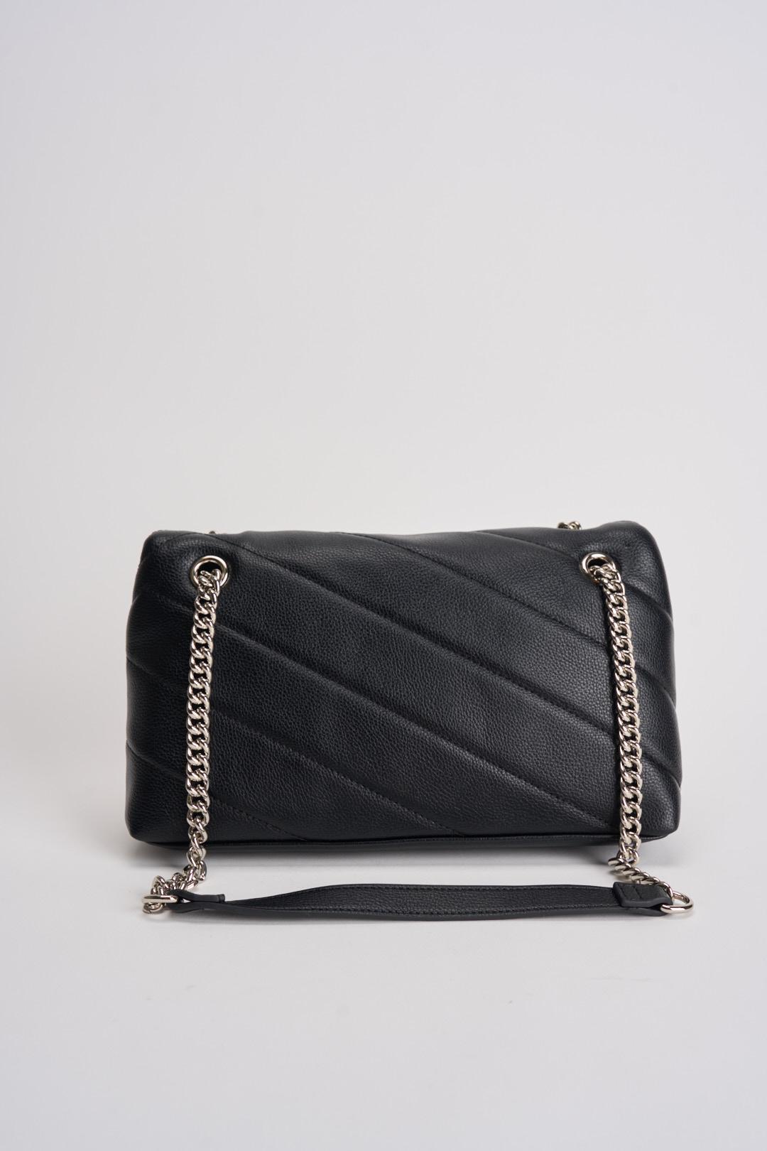GAELLE Borsa donna a tracolla nera. Modello da portare a spalla o a tracolla, tessuto trapuntato, chiusura con bottone magnetico. Logo brand in oro sul davanti. Composizione: 100% Poliuretanica. Dimensioni: 29x10x17 cm.