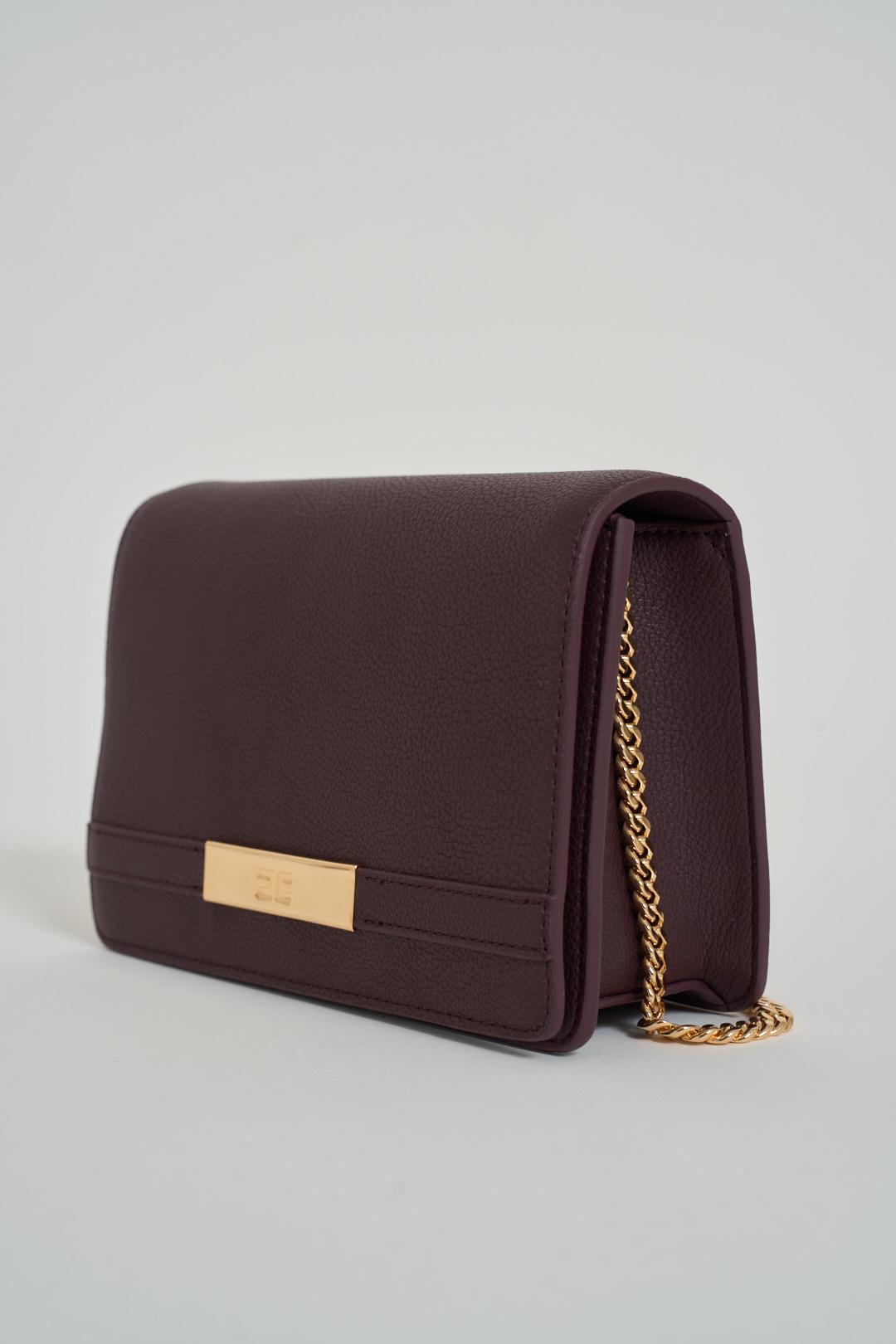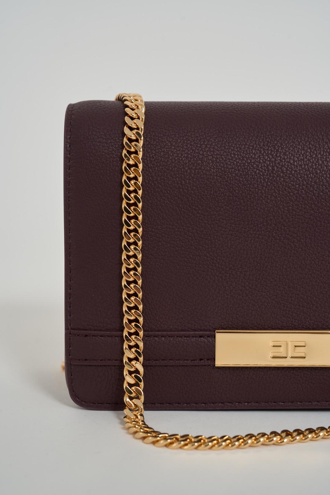 ELISABETTA FRANCHI Borsa donna bordeaux e oro. Modello con tracolla dorata, placca dorata con brand frontale. Composizione: 100% poliuretano. Dimensioni: 14x20x7cm.
