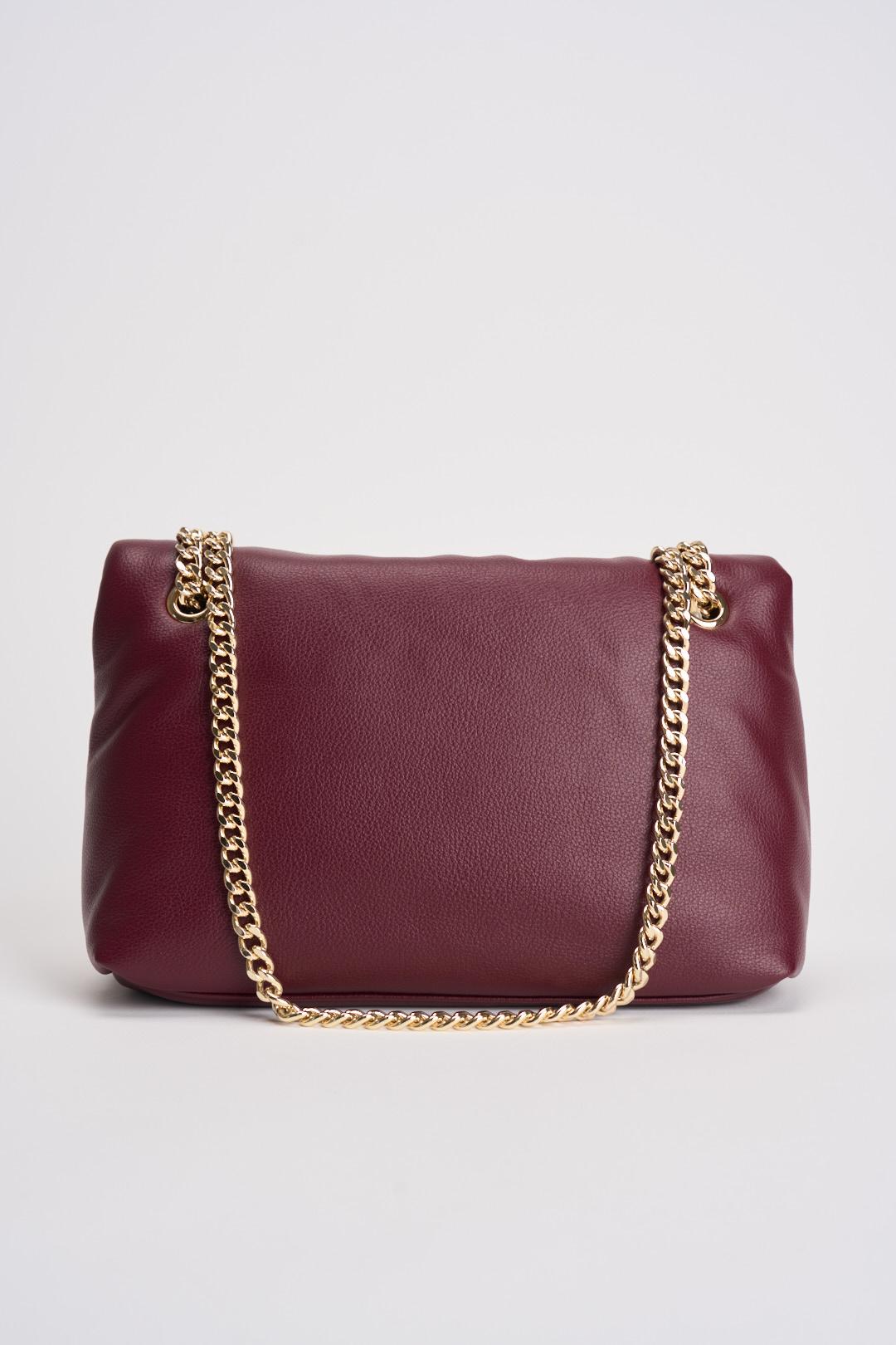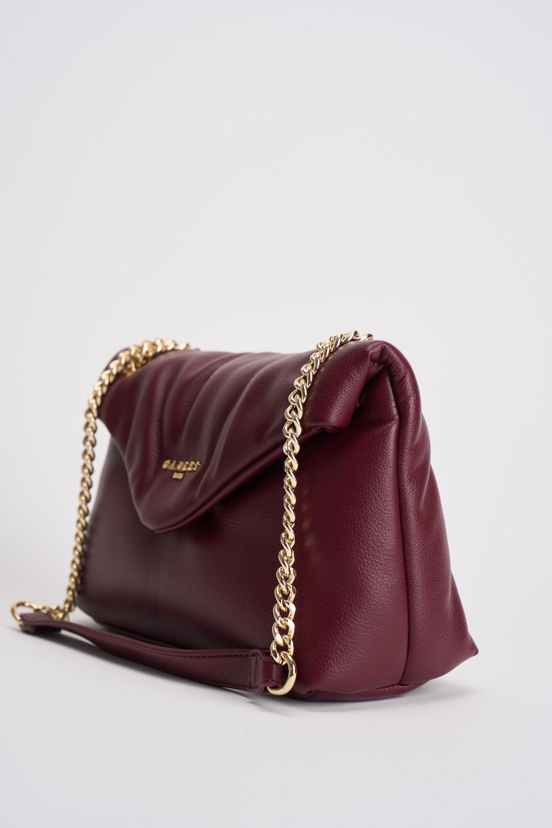 GAELLE Borsa donna in ecopelle bordeaux. Modello con catena dorata e manico in ecopelle da portare o a spalla o a tracolla. Brand dorato sul davanti. Dimensioni: 27,5 x 18 x 10. Composizione: 100% Poliuretano.
