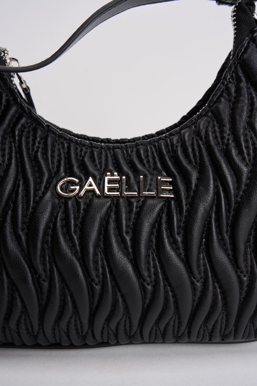 GAELLE Borsa donna matelassè a spalla nera. Modello da portare o a spalla o mano, trama trapuntata, logo silver sul davanti, chiusura con zip, unico scomparto. Fibbia regolabile. Composizione: 100% similpelle. Misure: 26x14x8 cm.