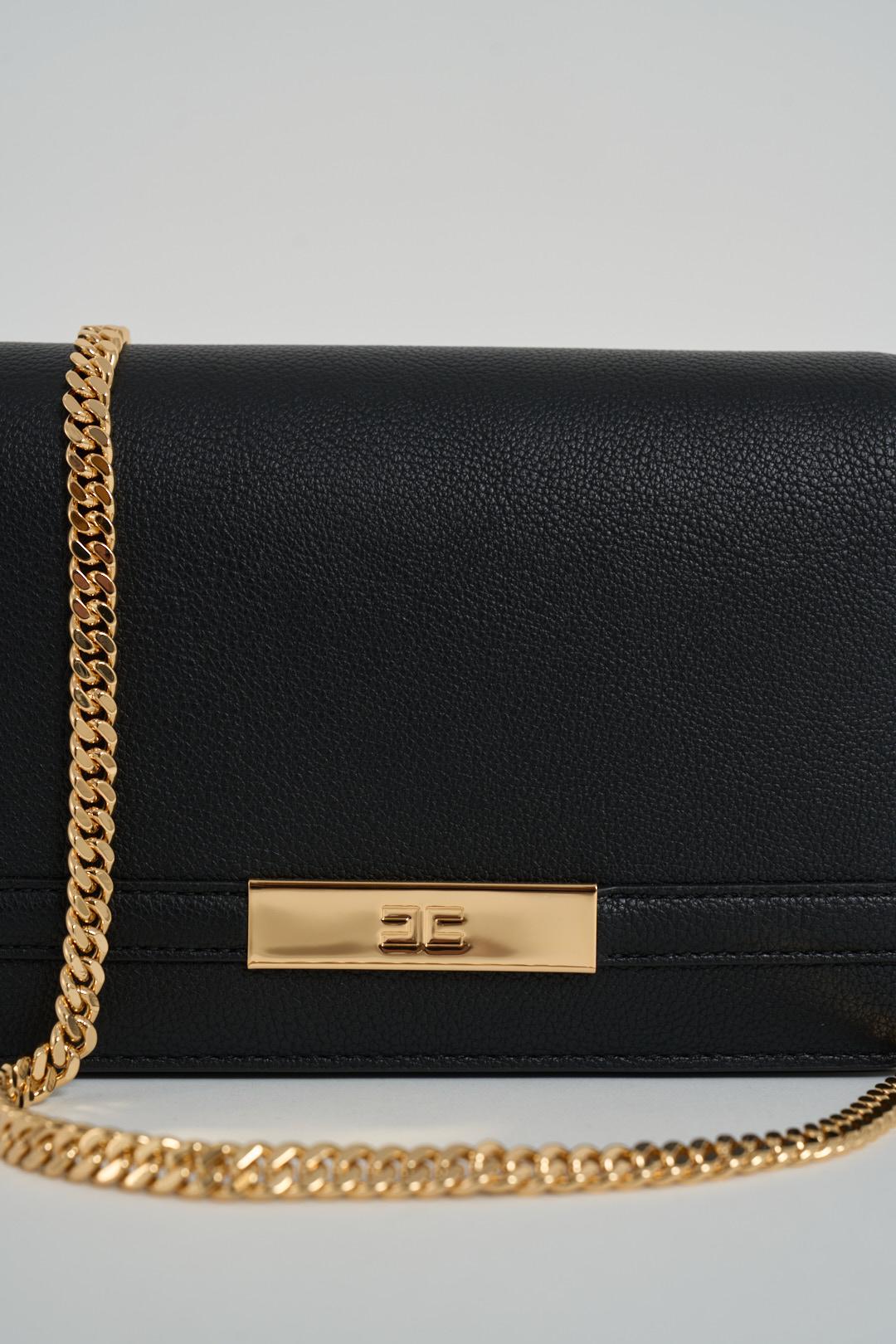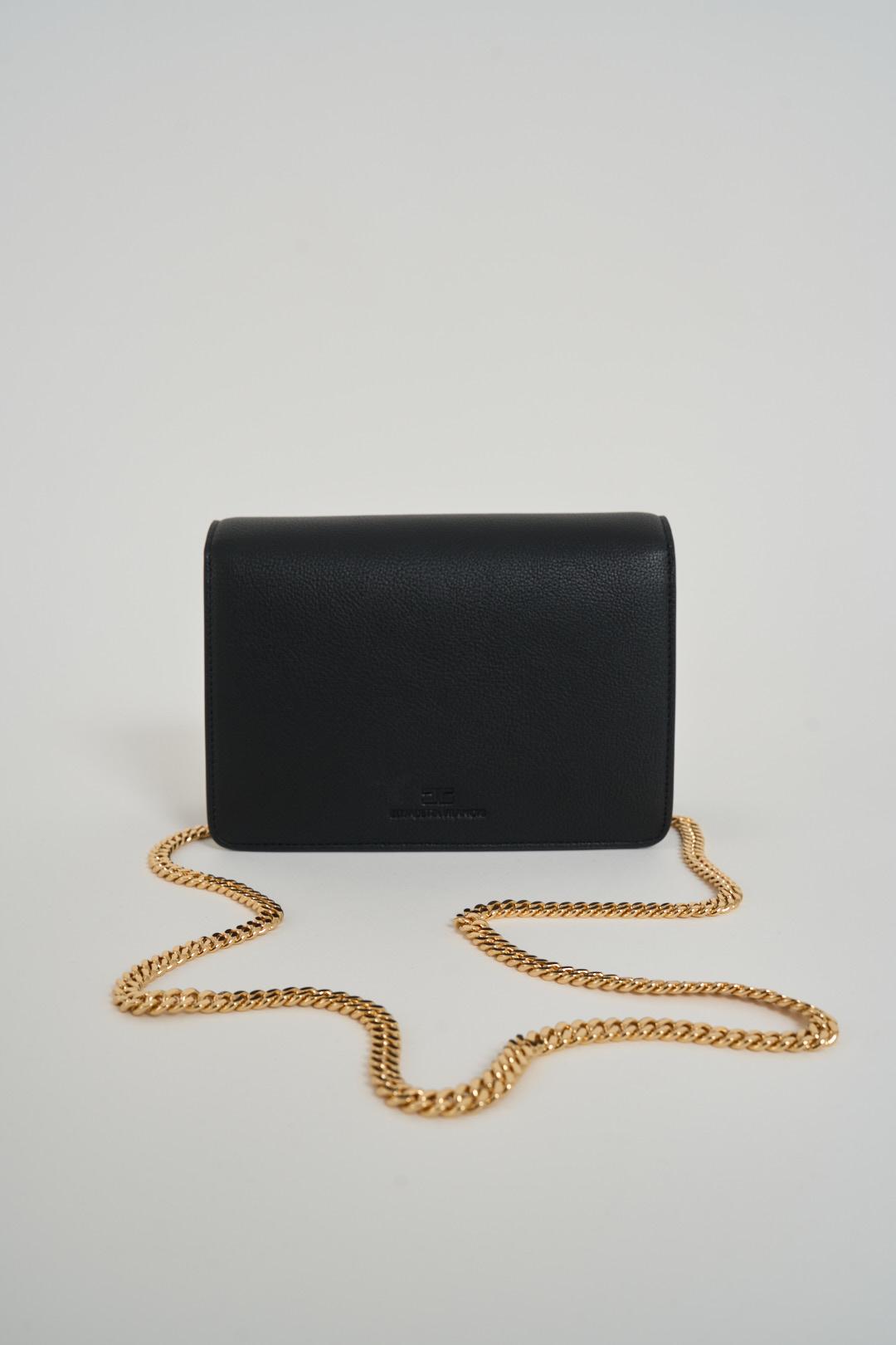 ELISABETTA FRANCHI Borsa donna nera e oro. Modello con tracolla dorata, placca dorata con brand frontale. Composizione: 100% poliuretano. Dimensioni: 14x20x7cm.