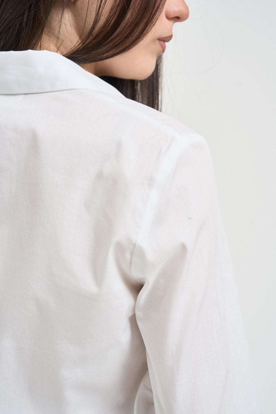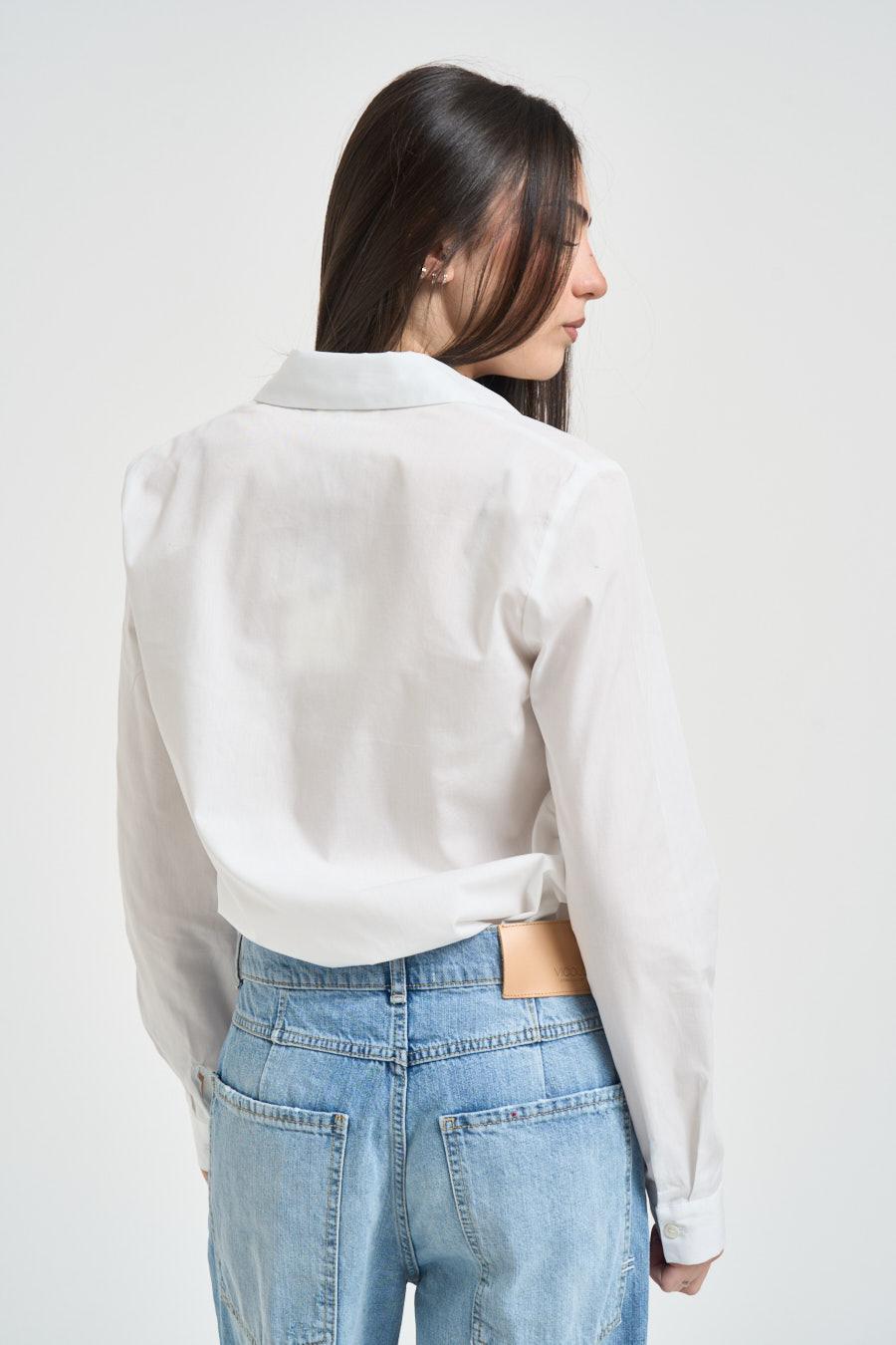 VICOLO Camicia donna bianca. Modello con classico colletto e maniche lunghe. Chiusura frontale con bottoncini e chiusura polsi con bottoncini. Fit classico. Composizione: 100%cotone. La modella è alta 172cm e indossa la taglia S.