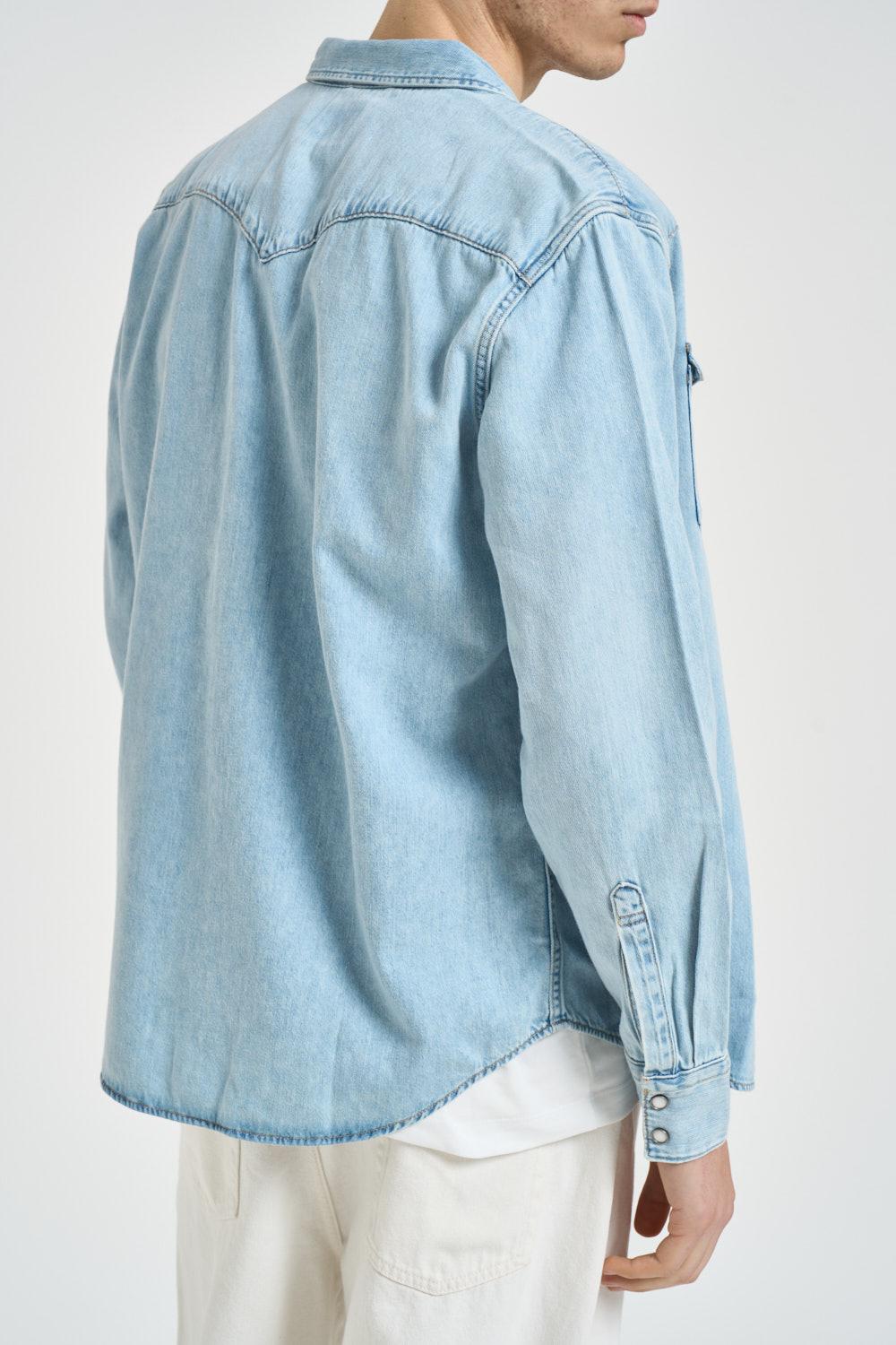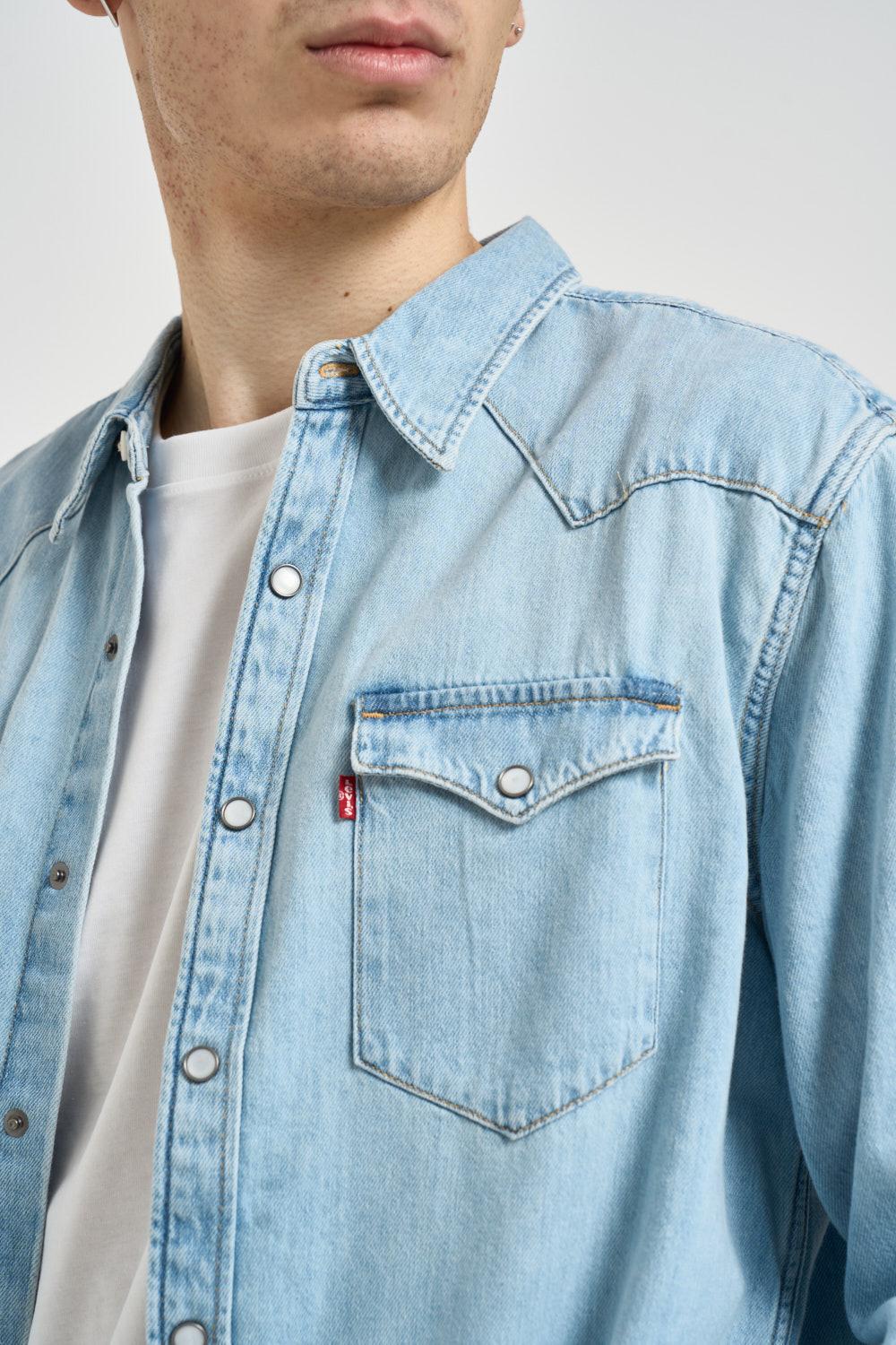 LEVI'S Camicia uomo Barstow in denim chiaro. Modello in stile western con classico colletto e due tasche con bottoni sul petto. Chiusura con bottoni a pressione. Manica lunga. Bottoni su polsino. Composizione: 100% cotone. Il modello è alto 190cm e indossa la taglia L.