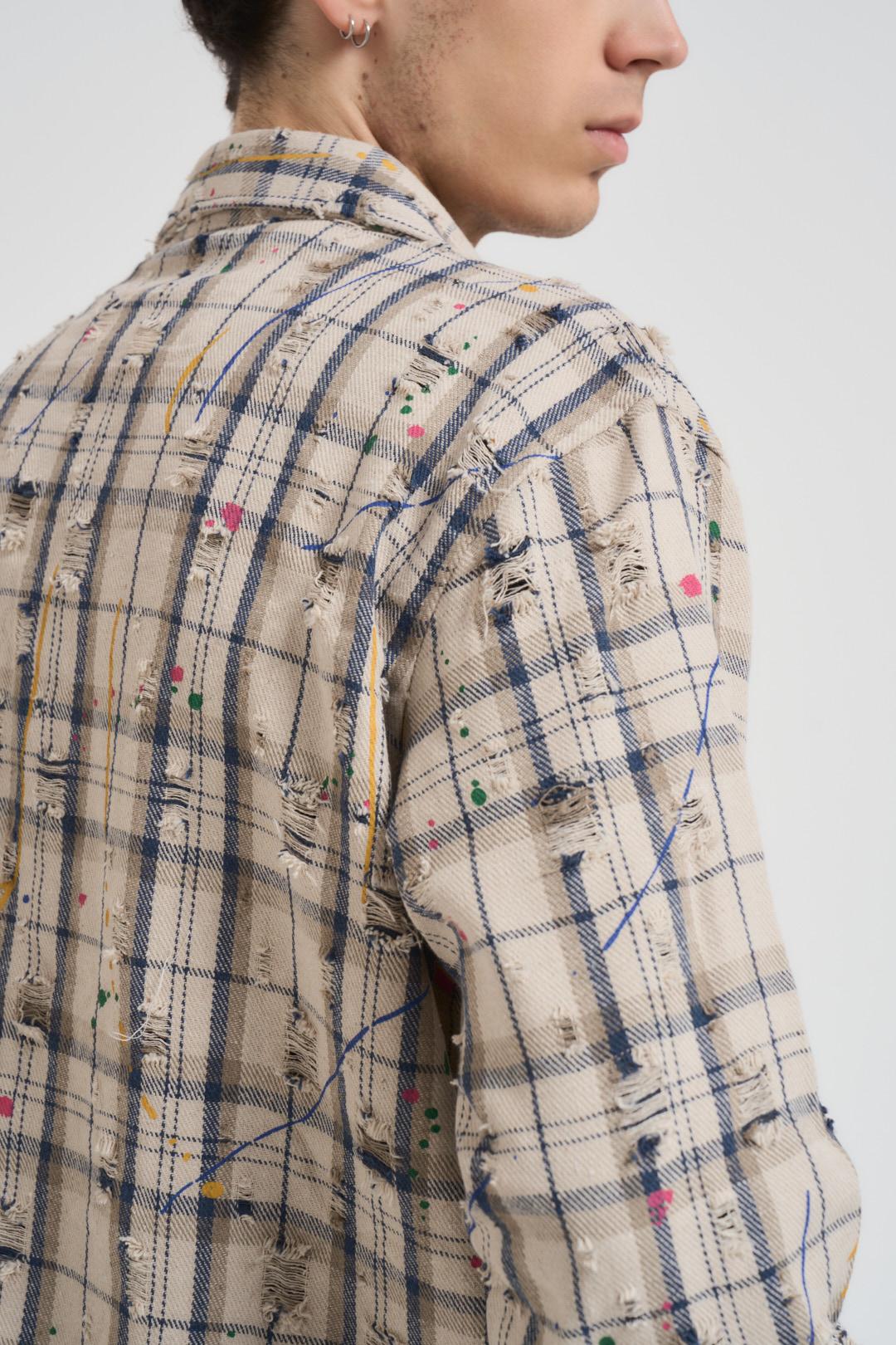 BERNA Camicia uomo con rotture beige. Modello relaxed fit con chiusura frontale con bottoni. Colletto classico. Manica lunga con chiusura con bottone sul polso. Due tasche frontali con patta e chiusura con bottone. Composizione: Cotone. Il modello è alto 190 cm e indossa la taglia L.