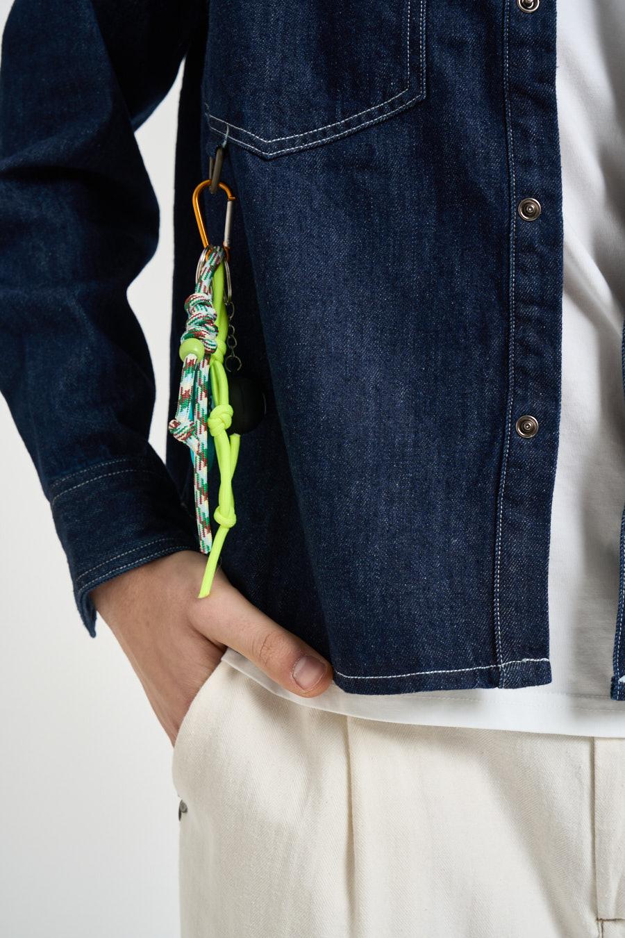 BERNA Camicia uomo in denim scuro con patch. Modello a maniche lunghe con colletto classico e chiusura frontale con bottoni a pressione, caratterizzato da doppia tasca sul petto. Il capo è arricchito da numerose patch e ricami multicolor applicati su fronte e retro, tra cui scritte, numeri e grafiche ispirate al mondo college e travel. Vestibilità morbida con linea leggermente boxy, ideale per outfit casual e contemporanei. Composizione: 100%cotone. Il modello è alta 190cm e indossa la L.