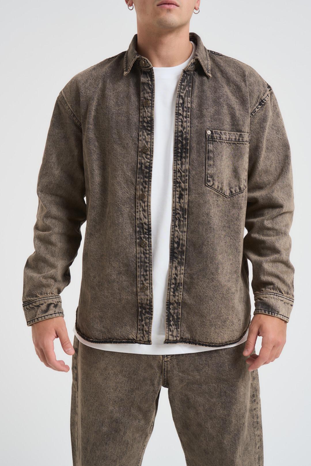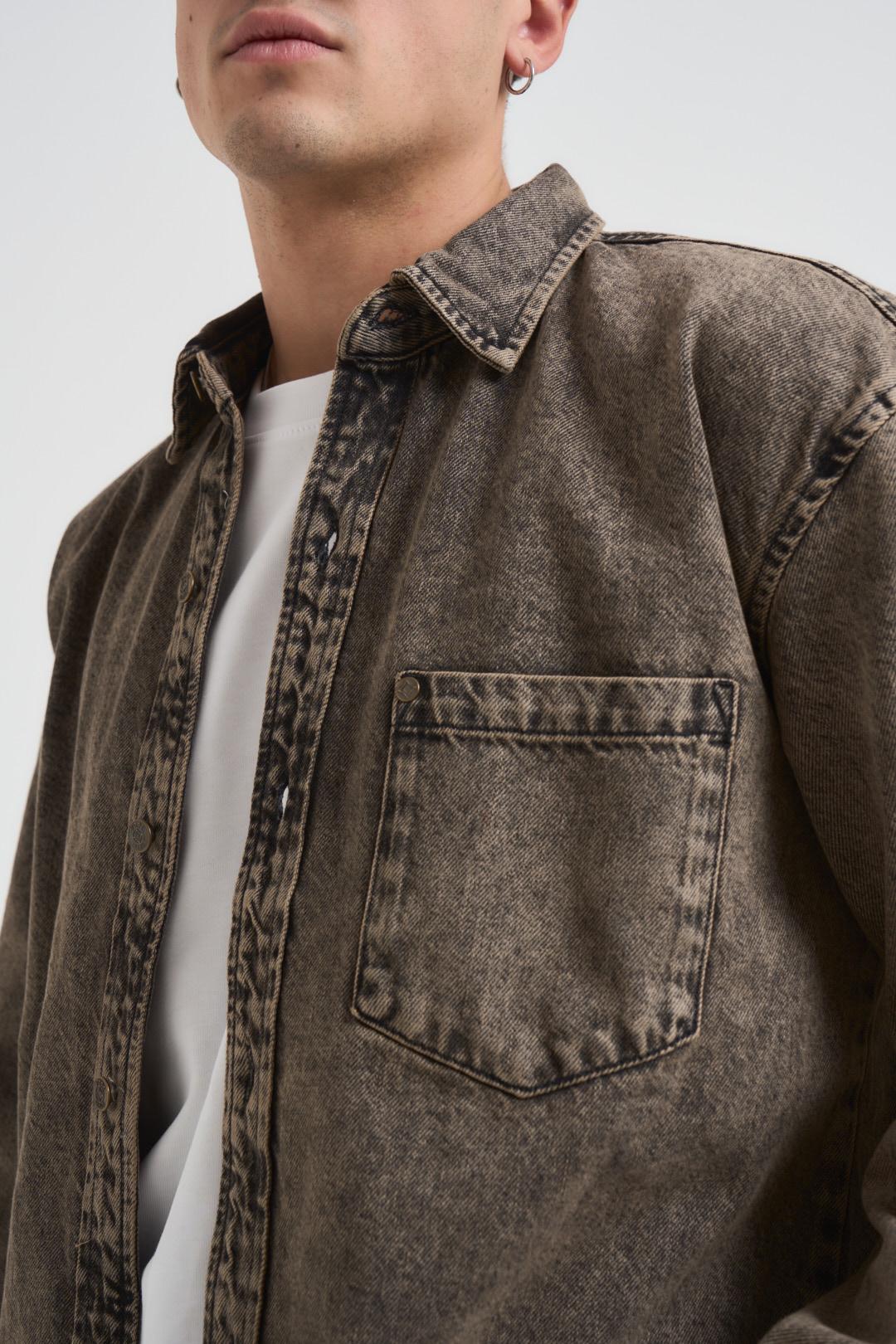 PONT DENIM Camicia uomo Spinosa grigia. Modello con spalla leggermente scesa. Chiusura con bottoni sul davanti. Bottone sui polsi. Composizione: 100% Cotone. Il modello è alto 190 cm e indossa la taglia L.