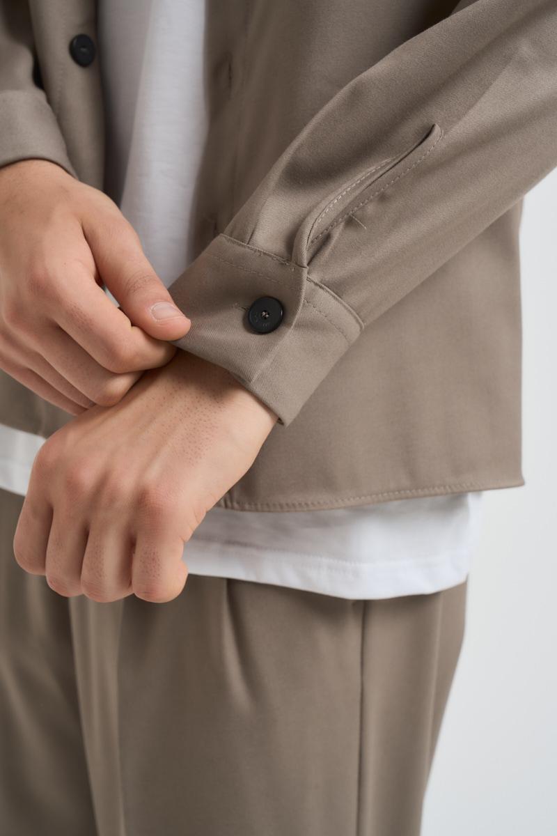 IMPERIAL Camicia uomo tortora. Modello con classico colletto, chiusura con bottoni e due tasche a patta sul davanti con bottone. Composizione: 78% poliestere 18% viscosa 4% elastane. Il modello è alto 190 cm e indossa la taglia L.