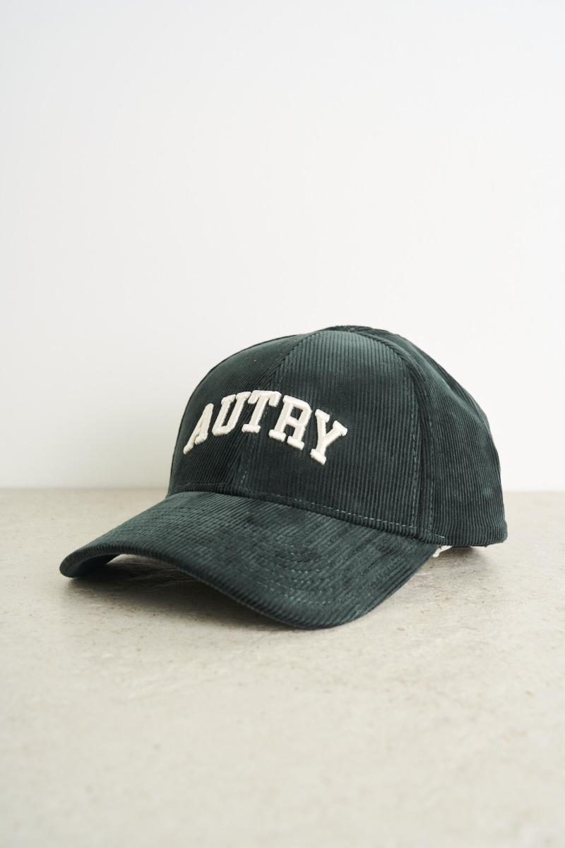 AUTRY Cappello uomo baseball verde in velluto. Lavorazione a costine. Composizione: 100% cotone. Tesa con cuciture tono su tono. Fascia antisudore interna. Fori per la traspirabilità. Logo ricamato frontalmente. Cinturino regolabile a strappo.