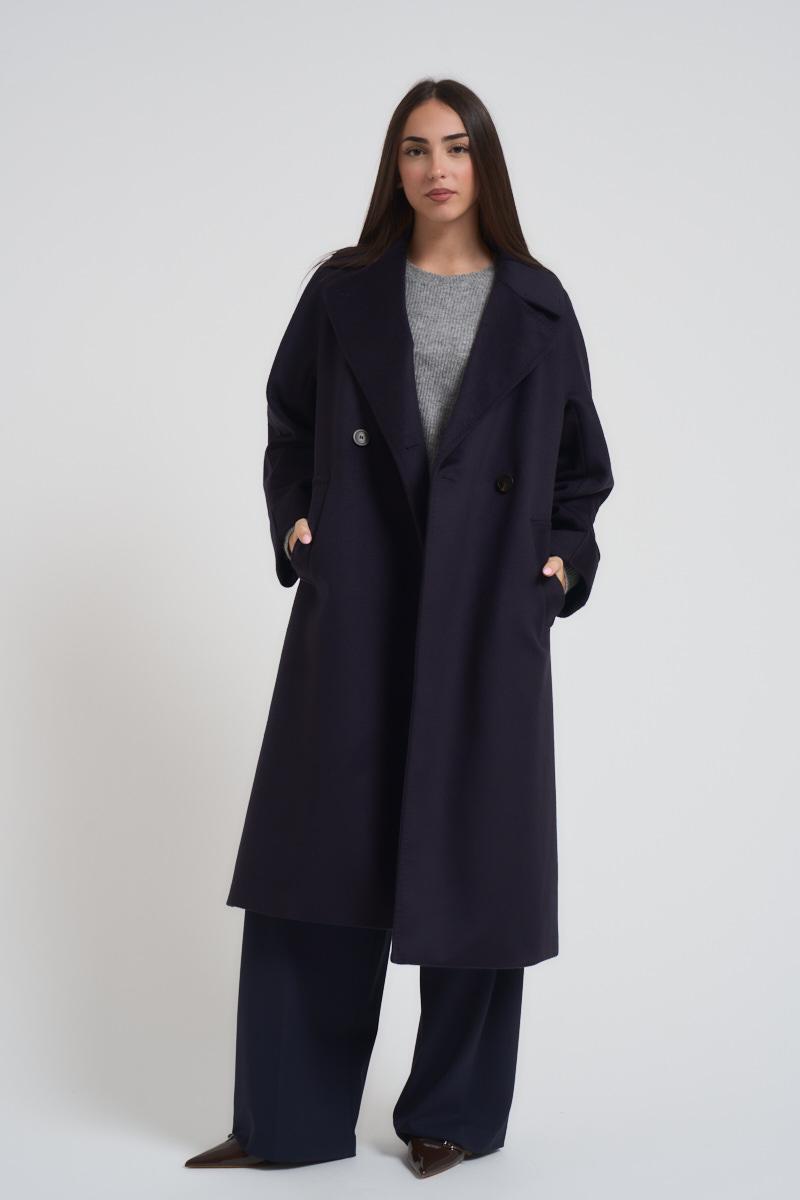 MAX MARA WEEKEND Cappotto donna Resina blu. Modello con colletto a bavero. Chiusura con bottoni e cintura. Lunghezza al polpaccio. Tasche anteriori. Regular fit. Composizione: 100% Lana. La modella è alta 172 cm e indossa la taglia 38.