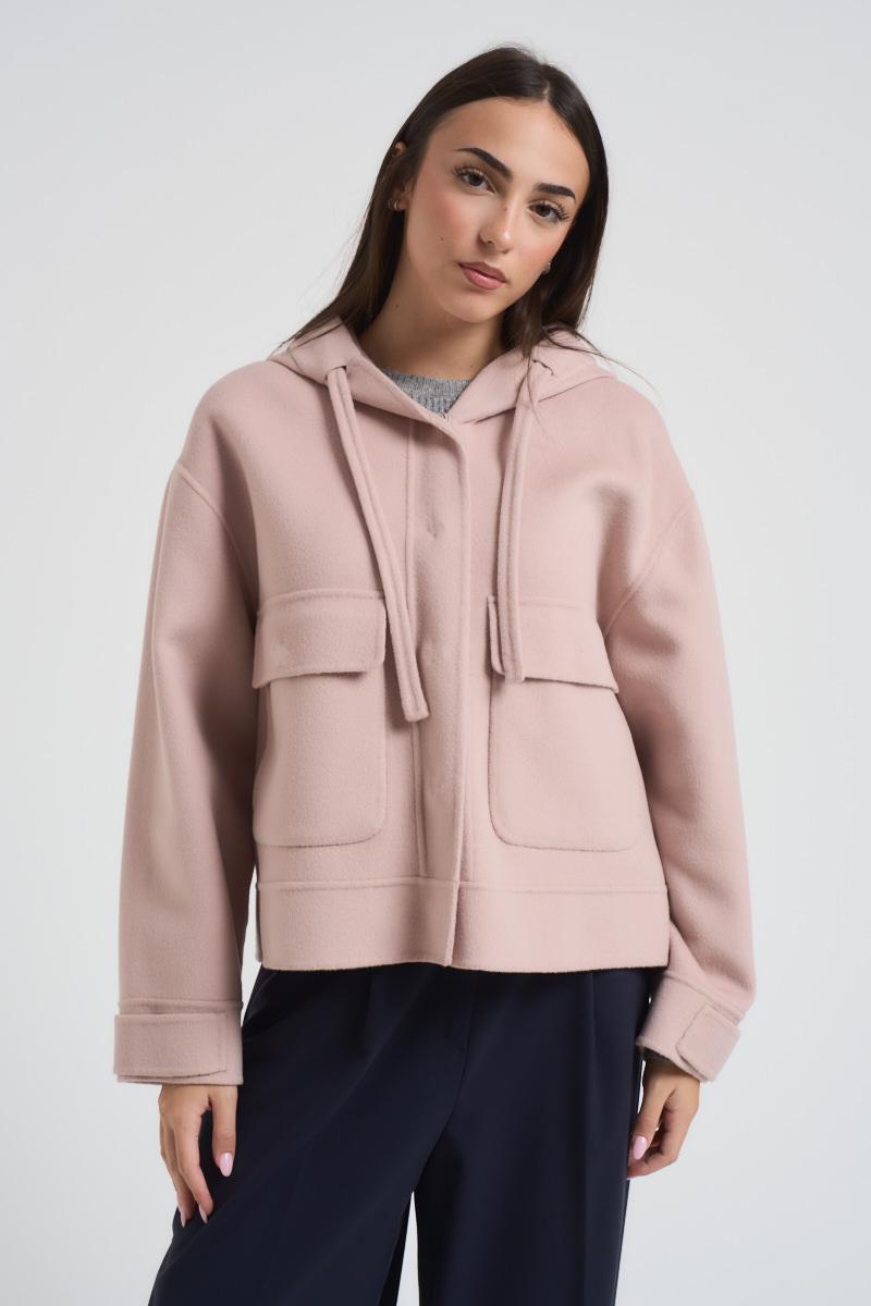 MAX MARA WEEKEND Cappotto Gary donna cipria. Modello con manica lunga e spalle scese. Due tasche laterali a taglio con chiusura a pressione. Cappuccio con coulisse. Polsini abbottonati. Regular fit. Composizione: 55% Poliestere 45% Viscosa. La modella è alta 172 cm e indossa la taglia 40.