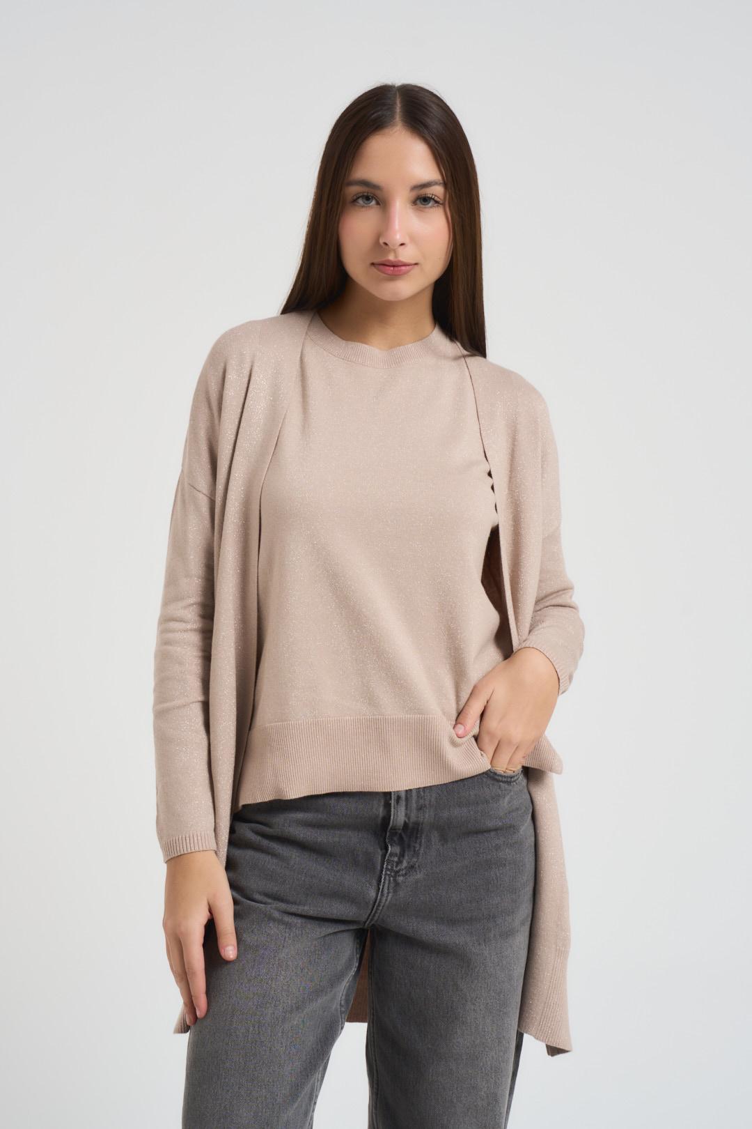INCLOTH Cardigan sciallato donna beige in lurex. Modello con manica lunga, lunghezza media, polso e fondo a coste. Giromanica sceso. Vestibilità regolare. Composizione: 100% pl. La modella è alta 176cm e indossa la tg S/M.