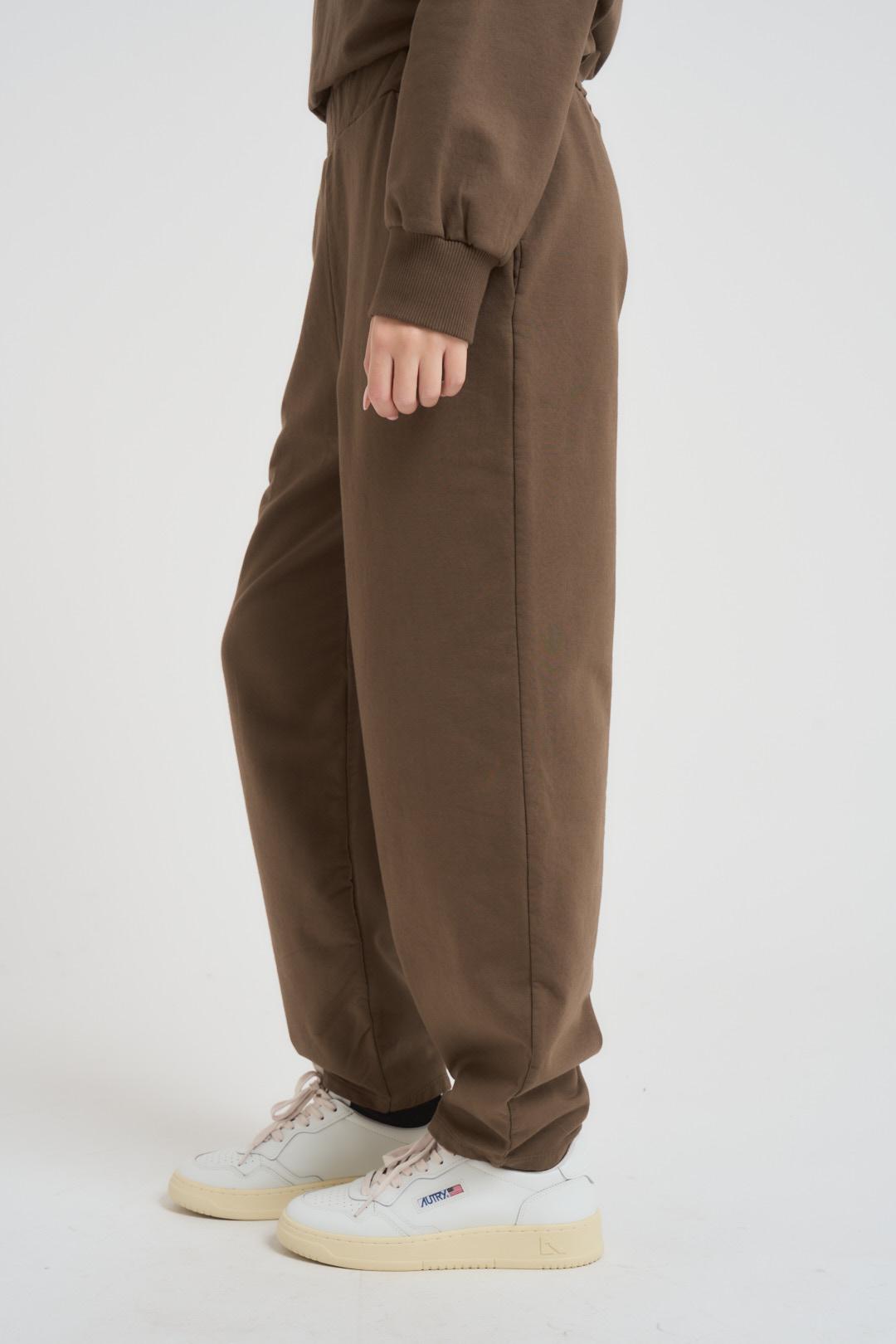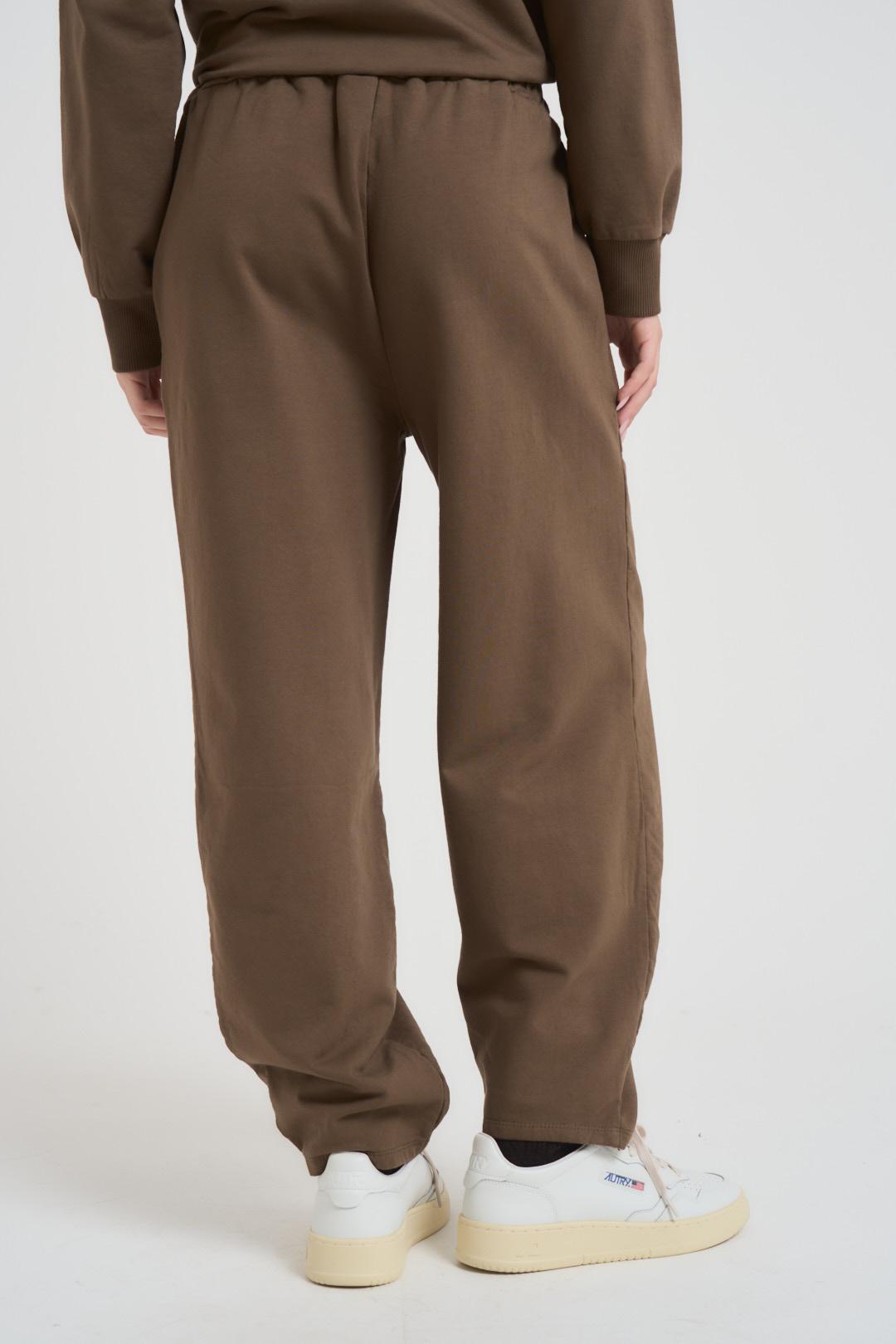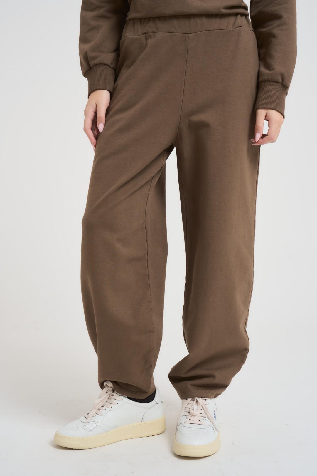 SUSY MIX Completo tuta donna marrone. Modello composta da felpa girocollo e pantalone a palazzo, regular fit. Composizione: 95%co 5%ea. La modella è alta 172 cm e indossa la taglia unica.