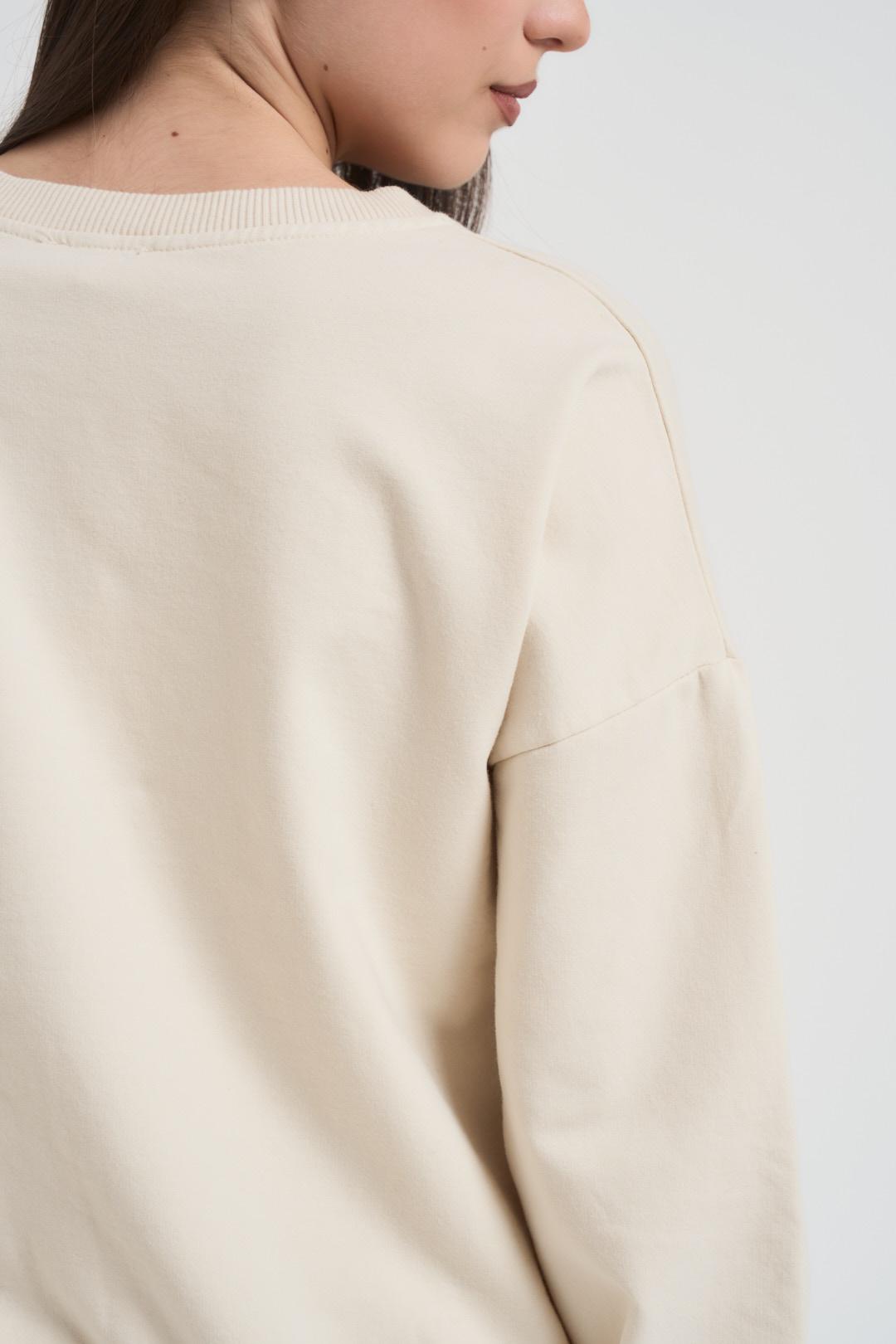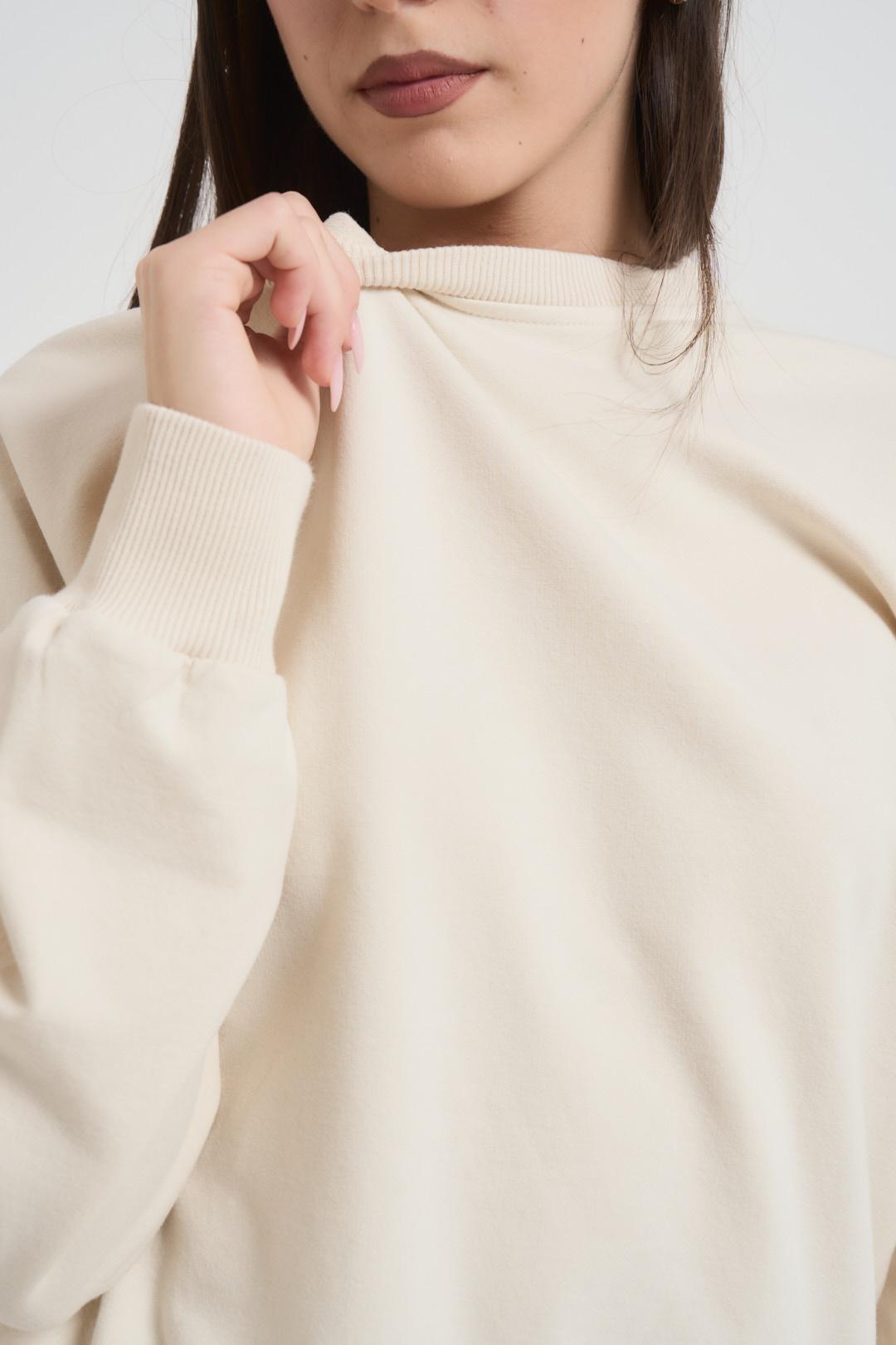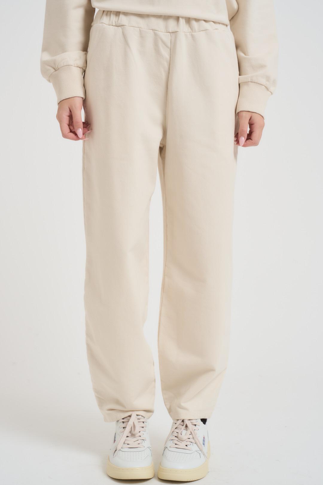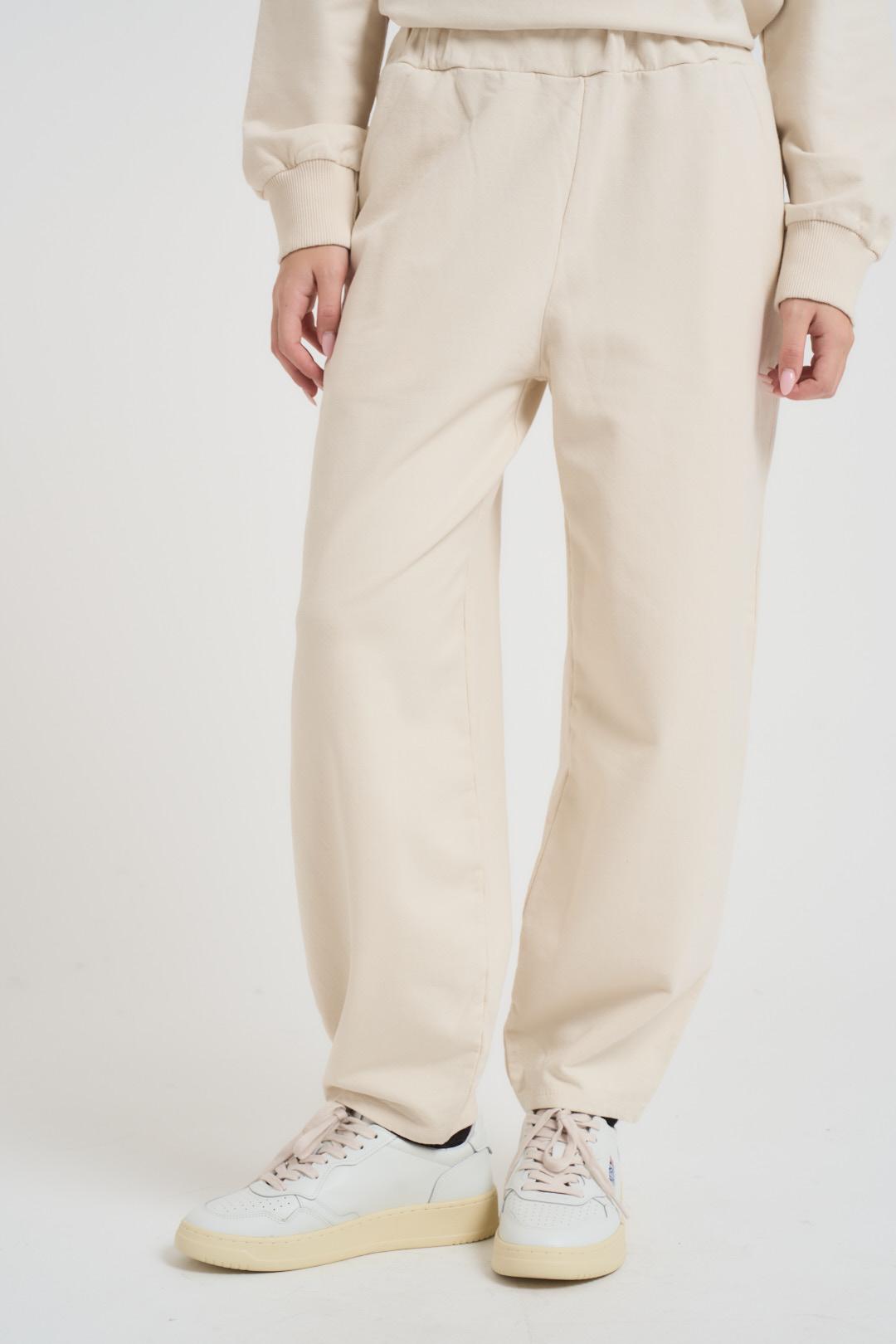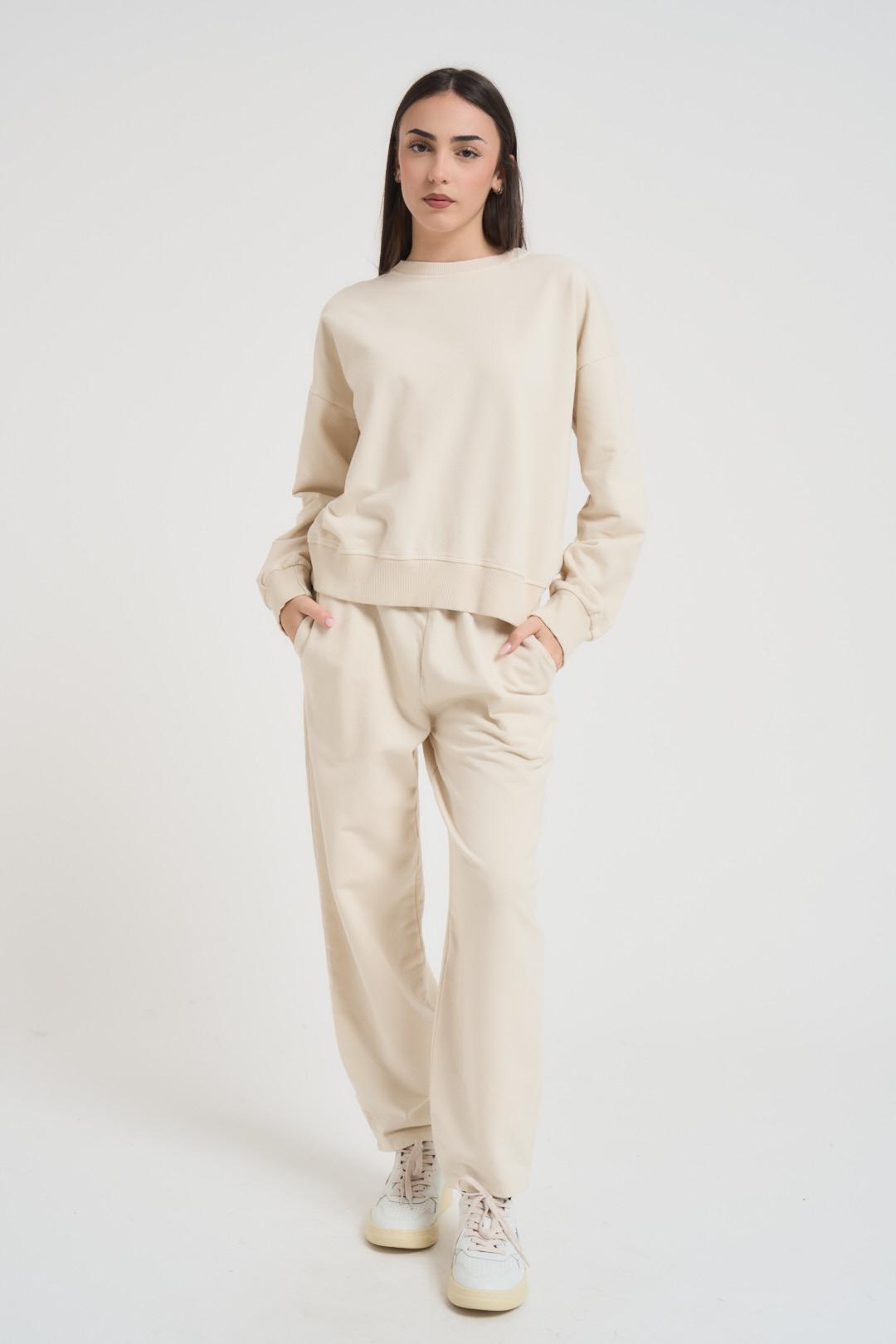 SUSY MIX Completo tuta donna panna. Modello composta da felpa girocollo e pantalone a palazzo, regular fit. Composizione: 95%co 5%ea. La modella è alta 172 cm e indossa la taglia unica.