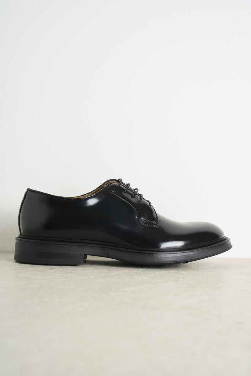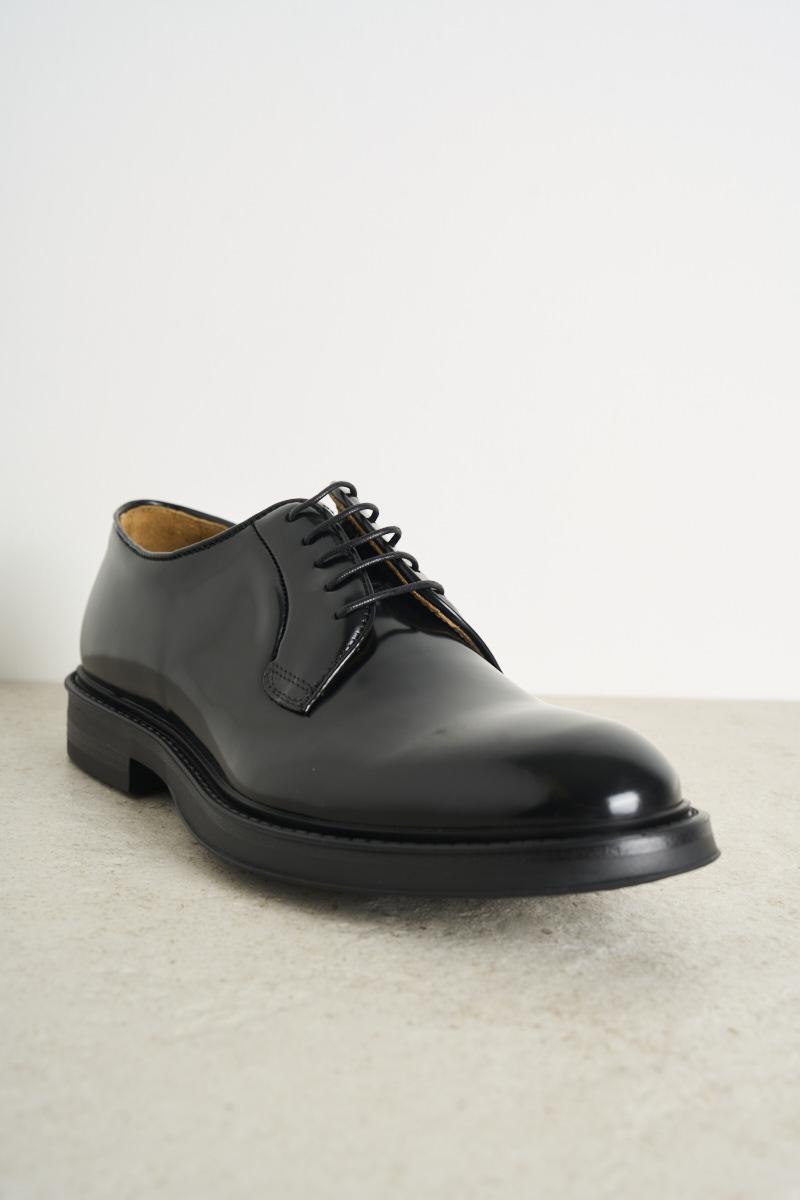 CORVARI Men's black shiny lace-up shoe. Wide fit. Leather lining. Leather sole. Composition: 100% leather.