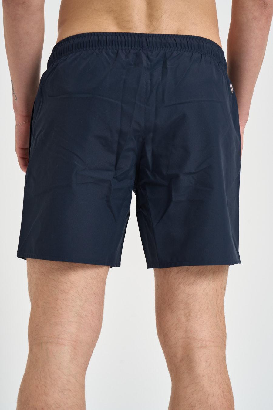 COLMAR Costume uomo corto blu. Modello con vita elasticizzata e coulisse regolabile. La linea pulita e contemporanea è valorizzata dalla tonalità versatile e dal logo applicato lateralmente. Composizione tessuto esterno: 100% poliestere. Fodera: 100% poliestere. Il modello è alto 190 cm e indossa la taglia 50.