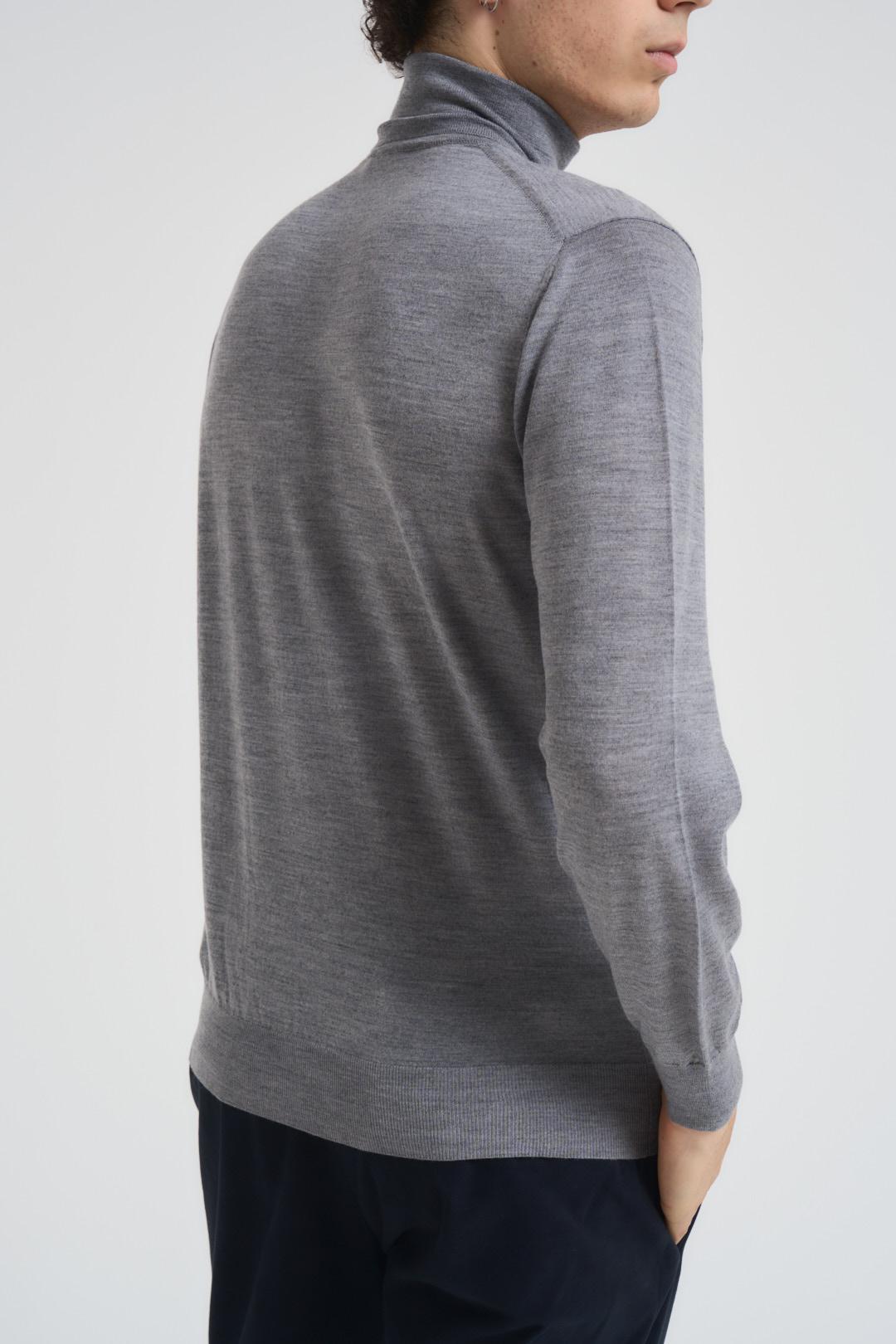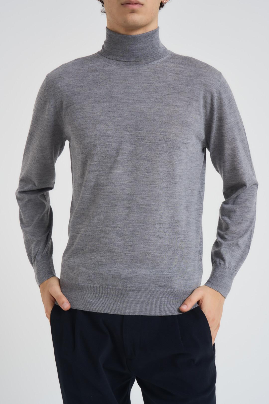 KANGRA Dolcevita basic uomo. Modello con collo tondo, maniche lunghe. Composizione: 100% cotone. Colore: grigio. Il modello è alto 190 cm e indossa la tg 48.