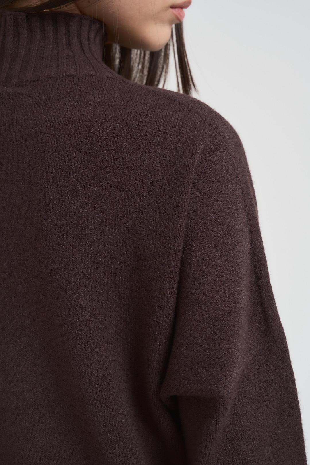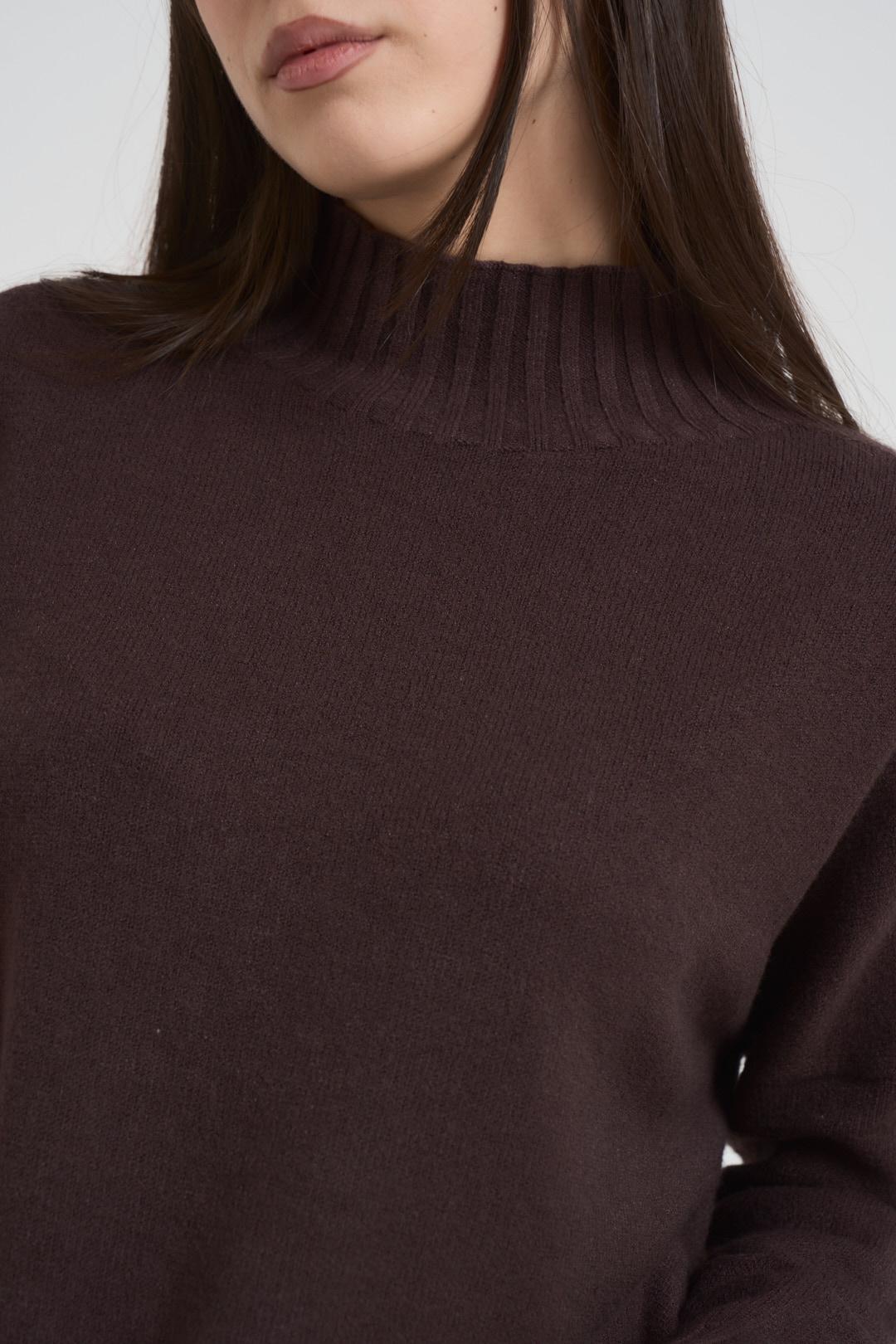 SUSY MIX Dolcevita donna regular marrone. Modello con collo alto, spalle scesa e manica lunga, dettagli a costine. Composizione: 50% viscosa 27% poliestere 23% poliammide. La modella è alta 172 cm e indossa la taglia unica.