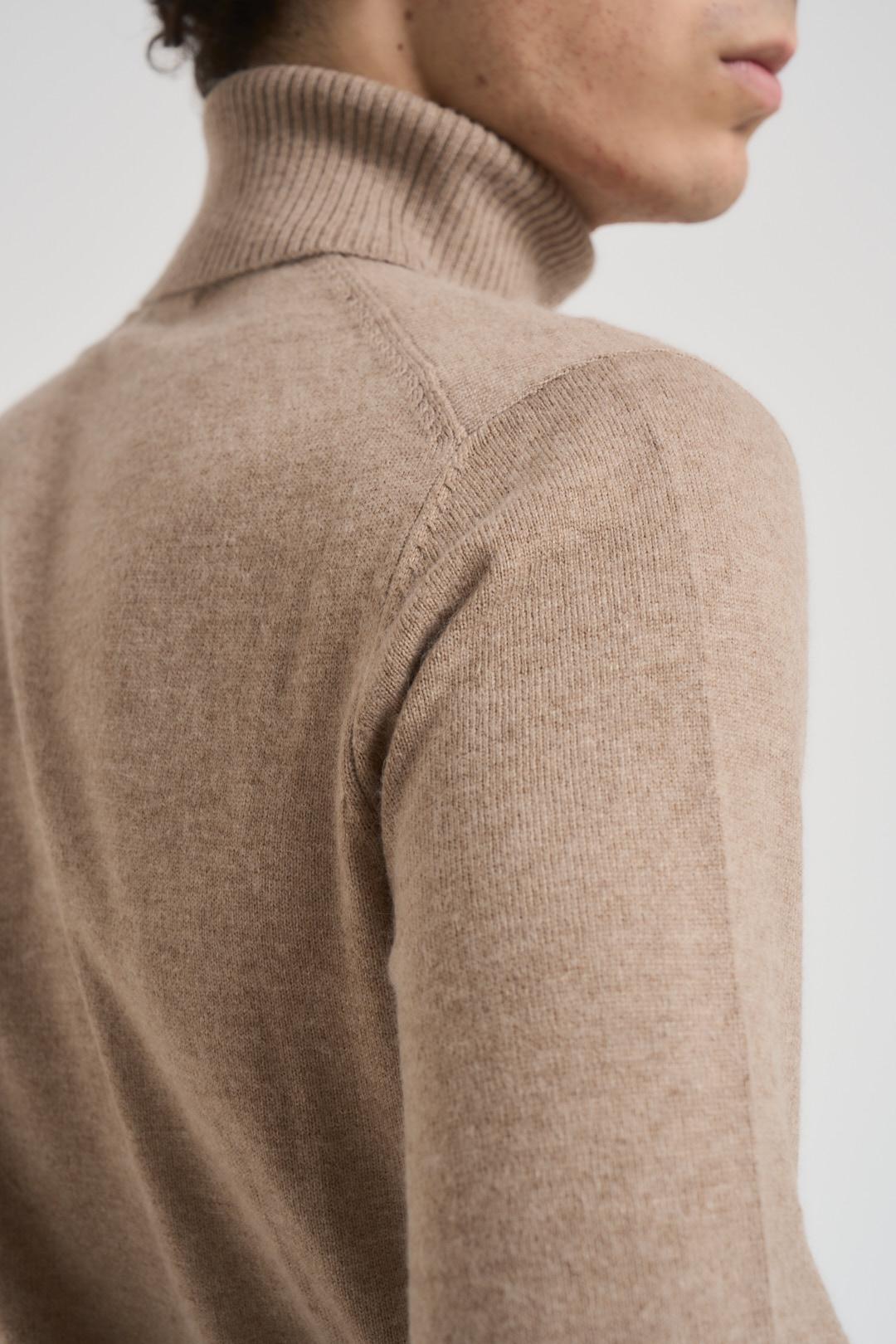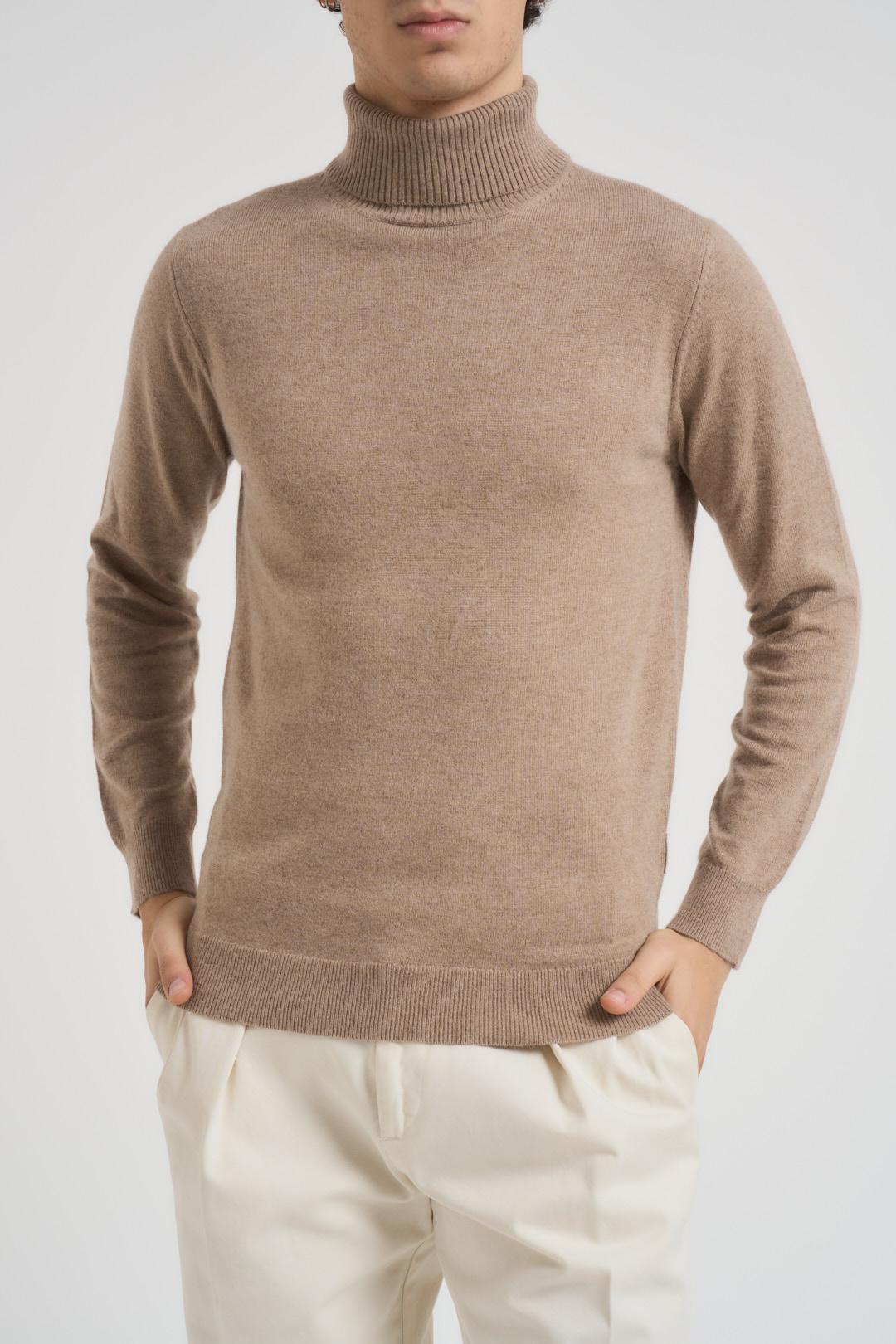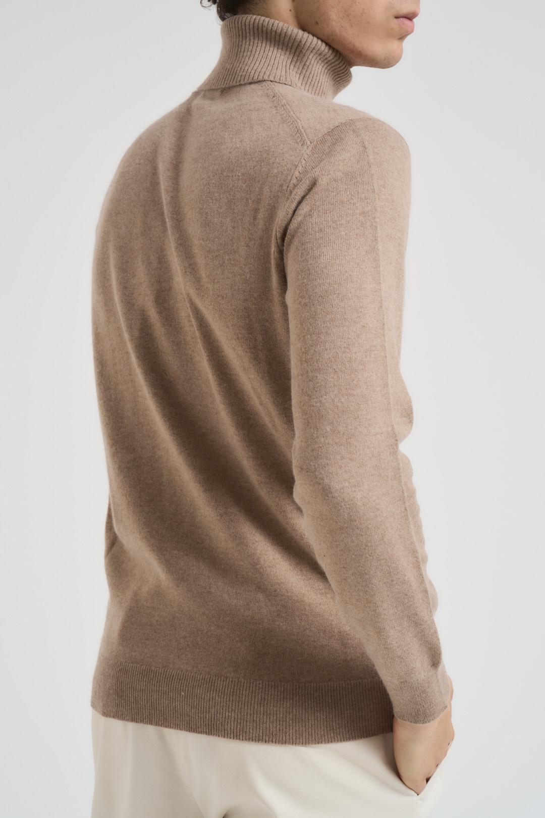 SSEINSE Dolcevita uomo cammello. Modello con fondo, polsini e collo a costine, maniche lunghe. Composizione: misto cashmere. Il modello è alto 190cm e indossa la taglia L.