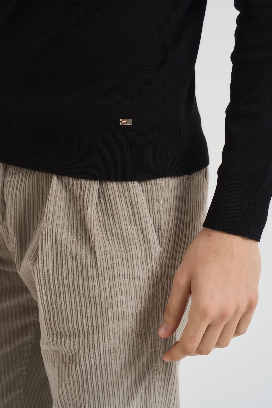 MARKUP Dolcevita uomo nero. Modello a maniche lungo, rasato. Fit regular. Colore: latte. Composizione: 80% viscosa, 20% nylon. Il modello è alto 190 cm e indossa la tg L.