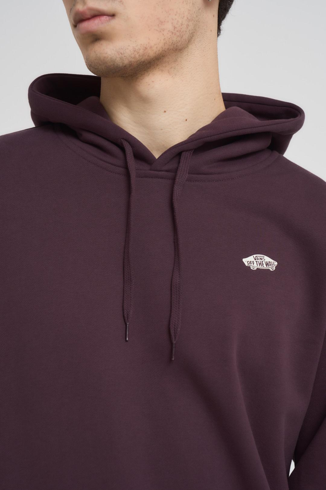 VANS Felpa uomo con cappuccio bordeaux. Modello con cappuccio e coulisse regolabile, stampa brand sul petto a sinistra in bianco e dettaglio grafica logo Vans in bianco sul retro. Composizione: 70% cotone 30% poliestere. Il modello è alto 190cm e indossa la taglia L.