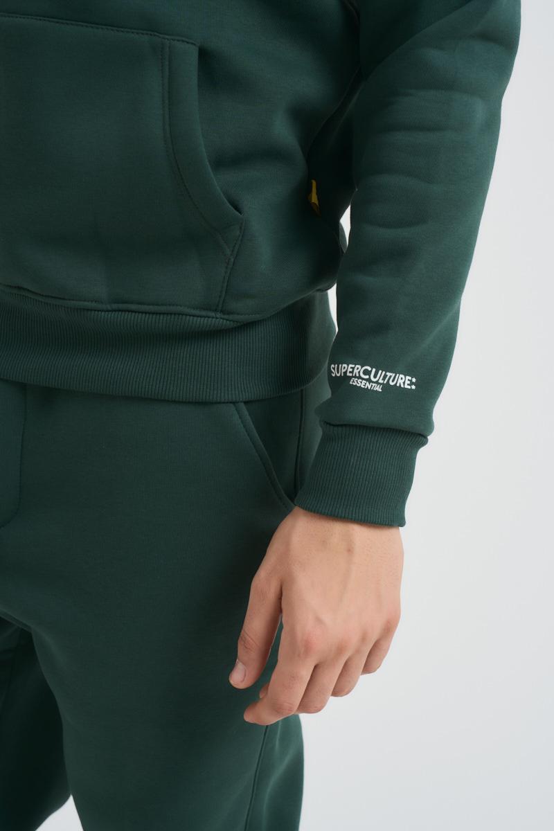 SUPERCULTURE Felpa uomo verde con cappuccio. Laccio regolabile sul cappuccio. Polsini e fondo a costine. Regular fit. Composizione: 65% Cotone 35% Poliestere. Il modello è alto 185cm e indossa la taglia L.