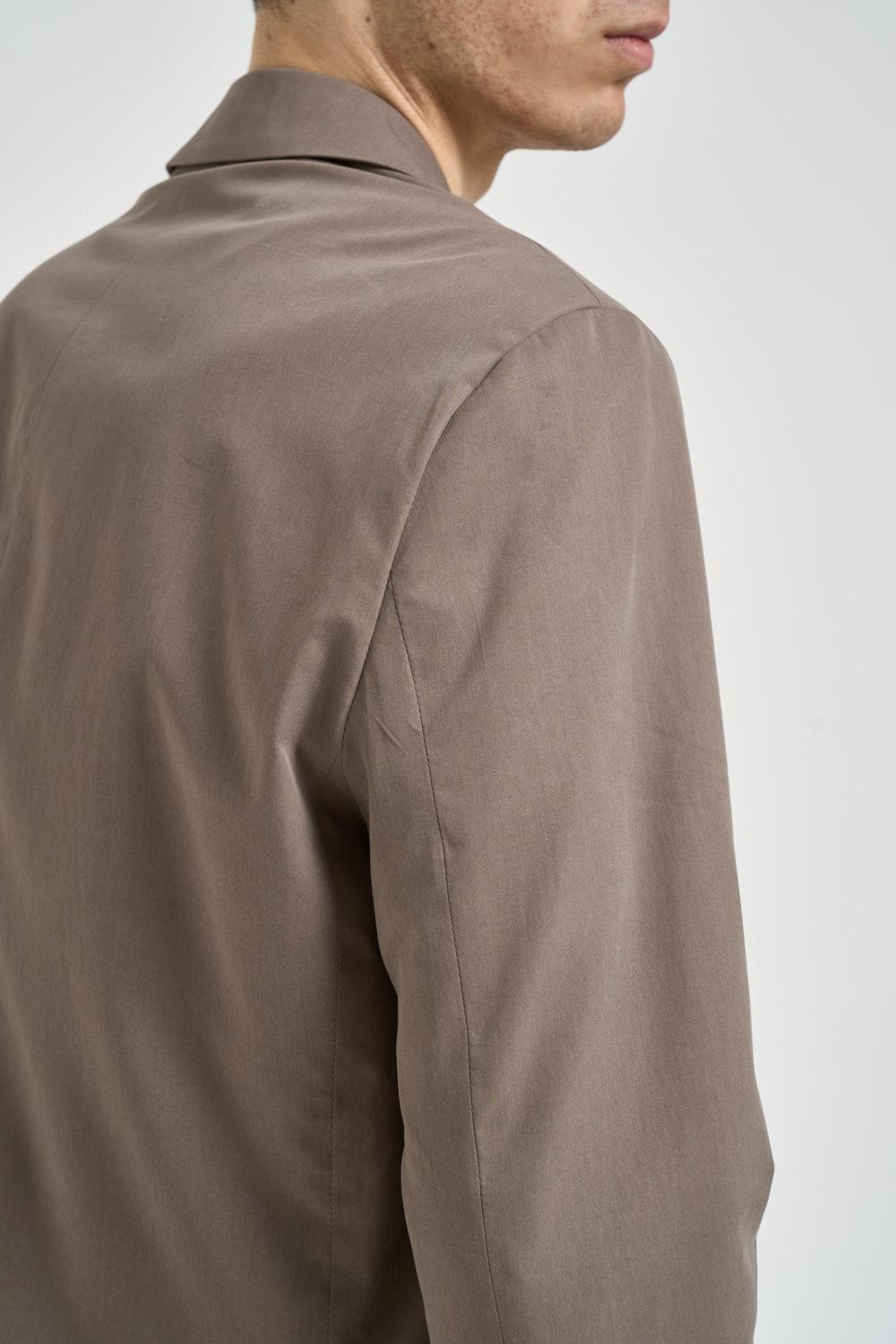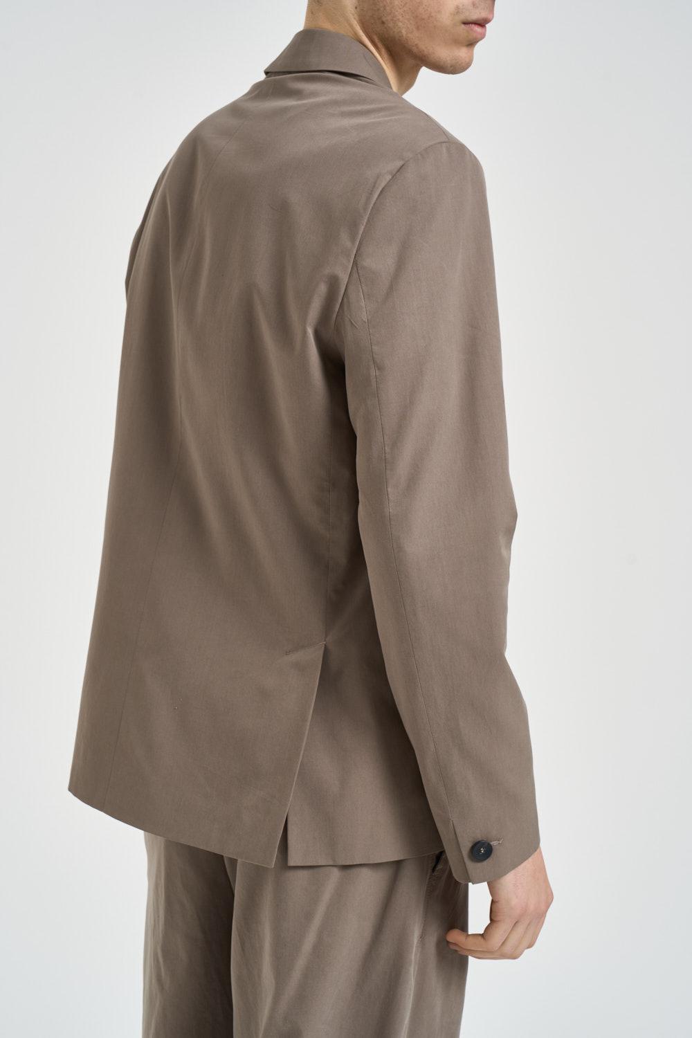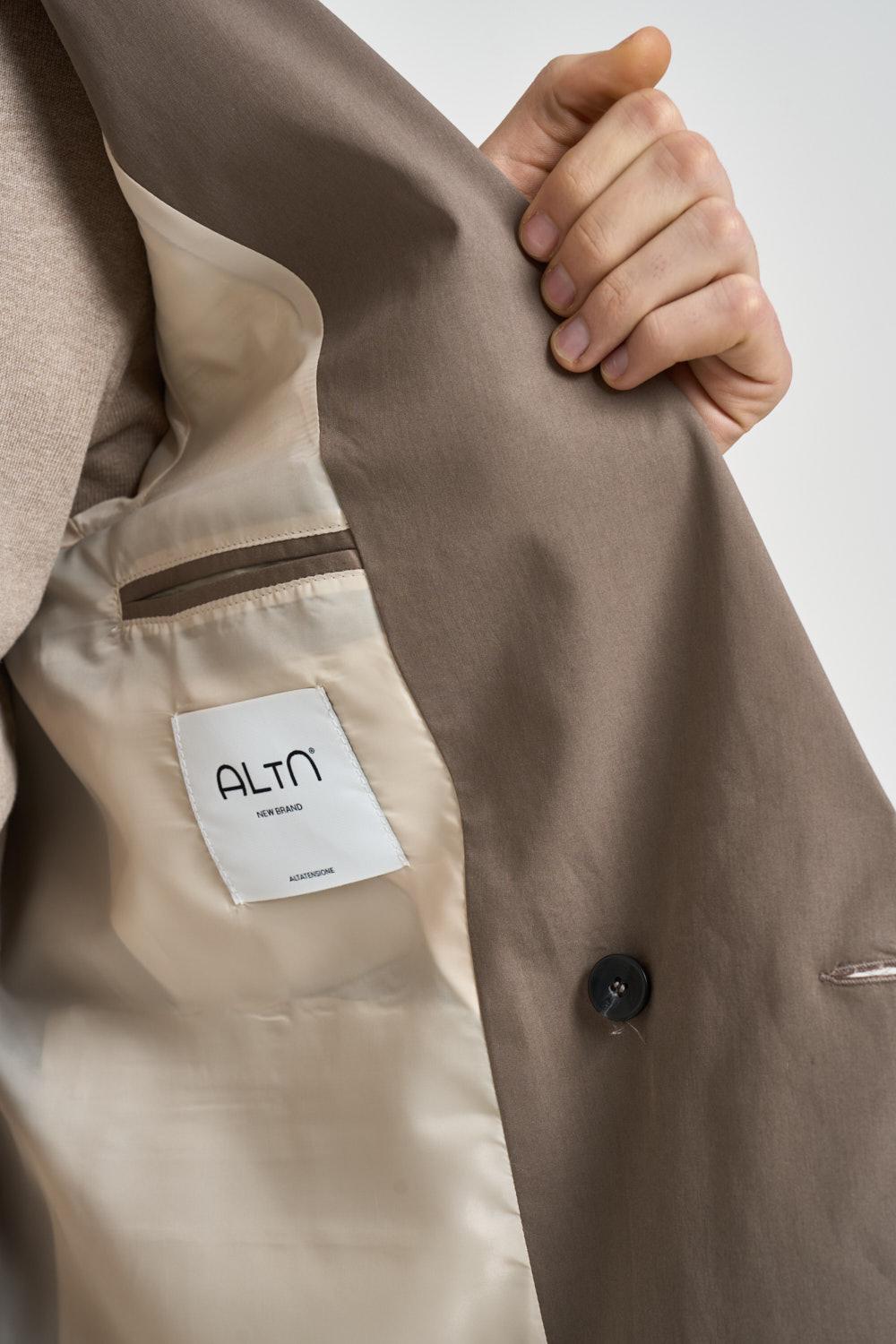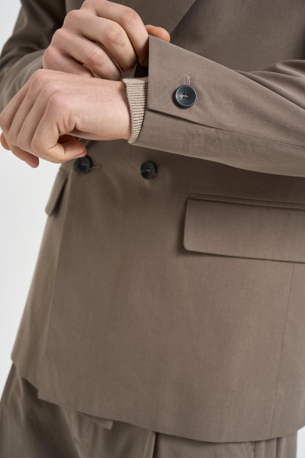 ALTA TENSIONE Giacca uomo doppiopetto fango. Modello dalla vestibilità morbida. Chiusura con bottone. Manica lunga. Bottone su fondo manica. Tasche con patta. Rever classico. Composizione: 50% Cotone, 50% Lyocell. Il modello è alto 190cm e indossa la taglia 50.