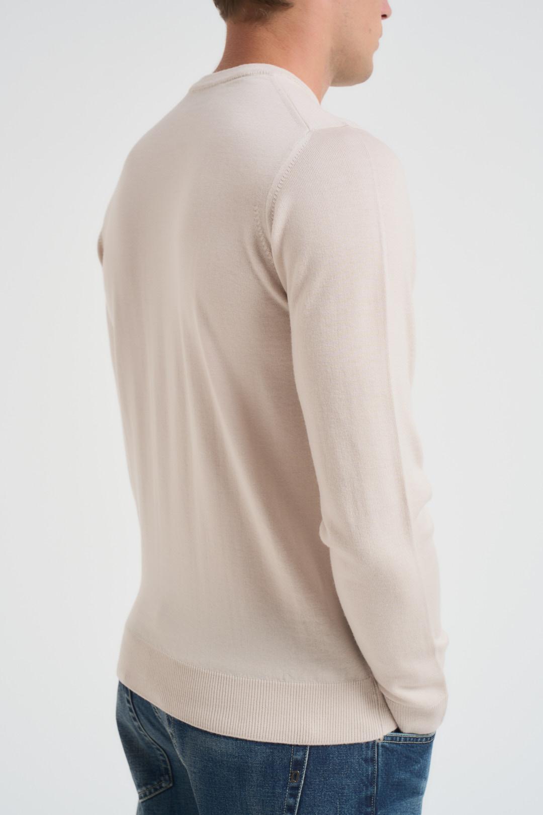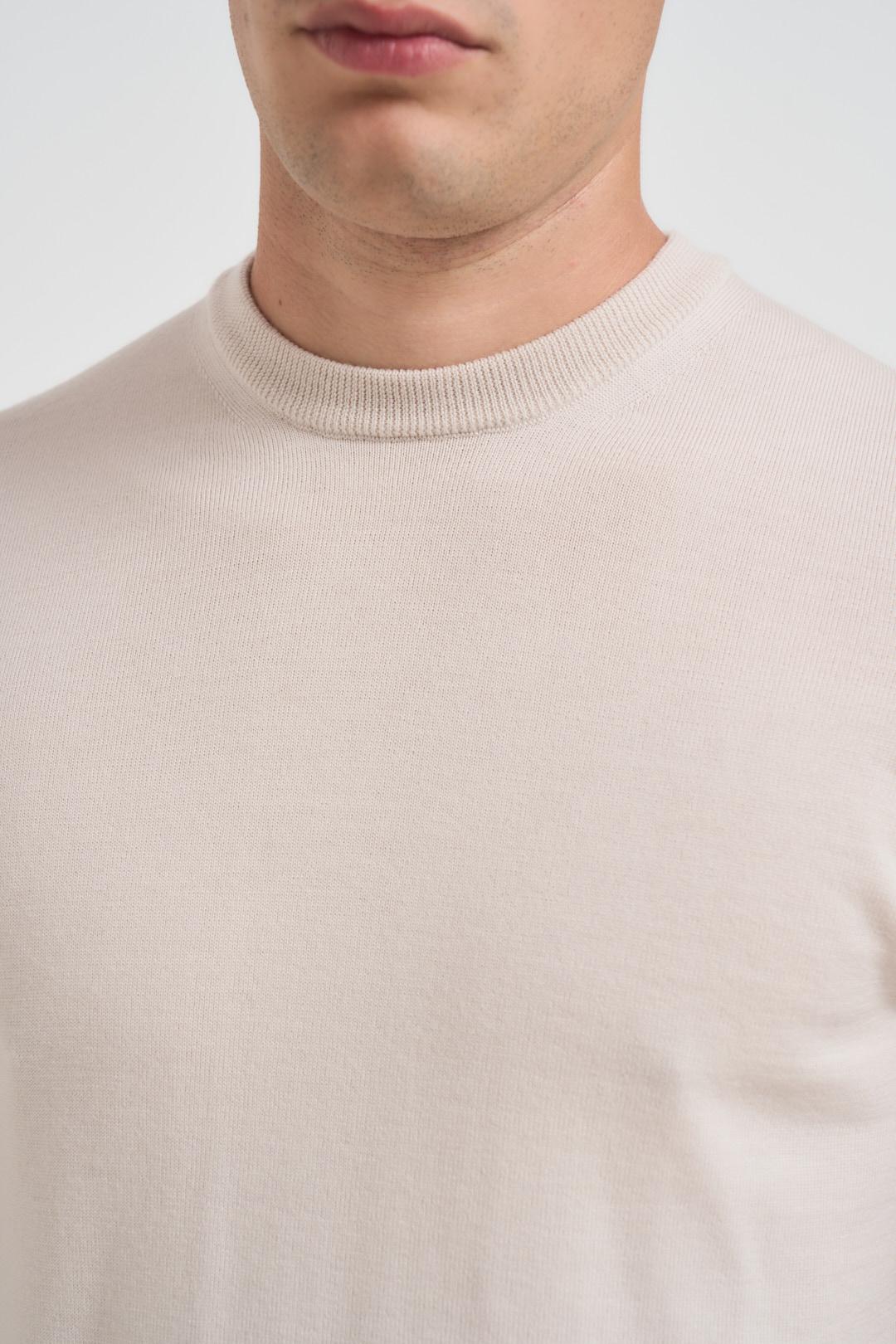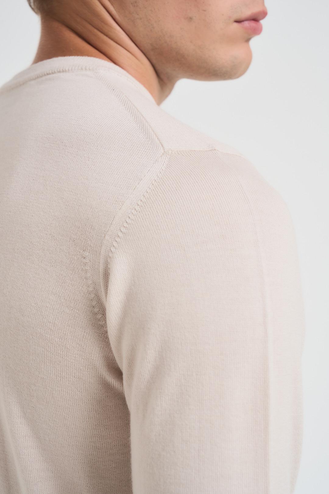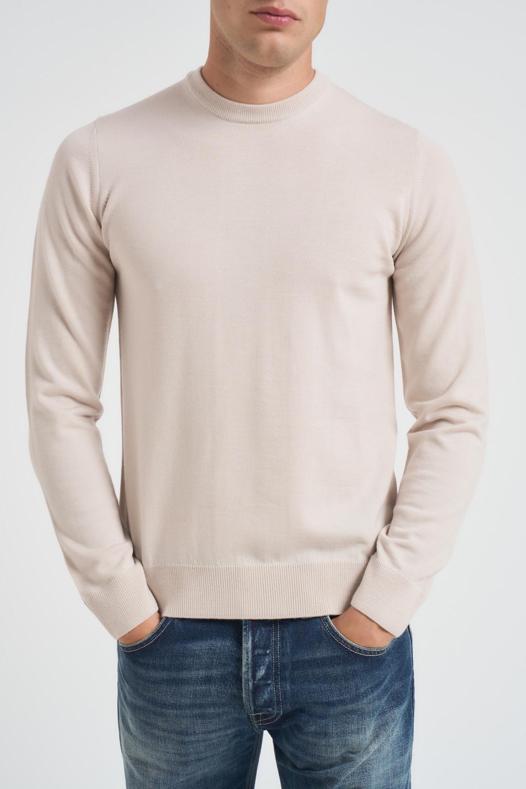 ALPHA STUDIO Girocollo uomo in lana stucco. Modello a maniche lunghe in lana merinos. Collo, polsi e fondo a costine. Slim fit. Composizione: 100% Lana Merinos. Il modello è alto 190 cm e indossa la taglia 48.