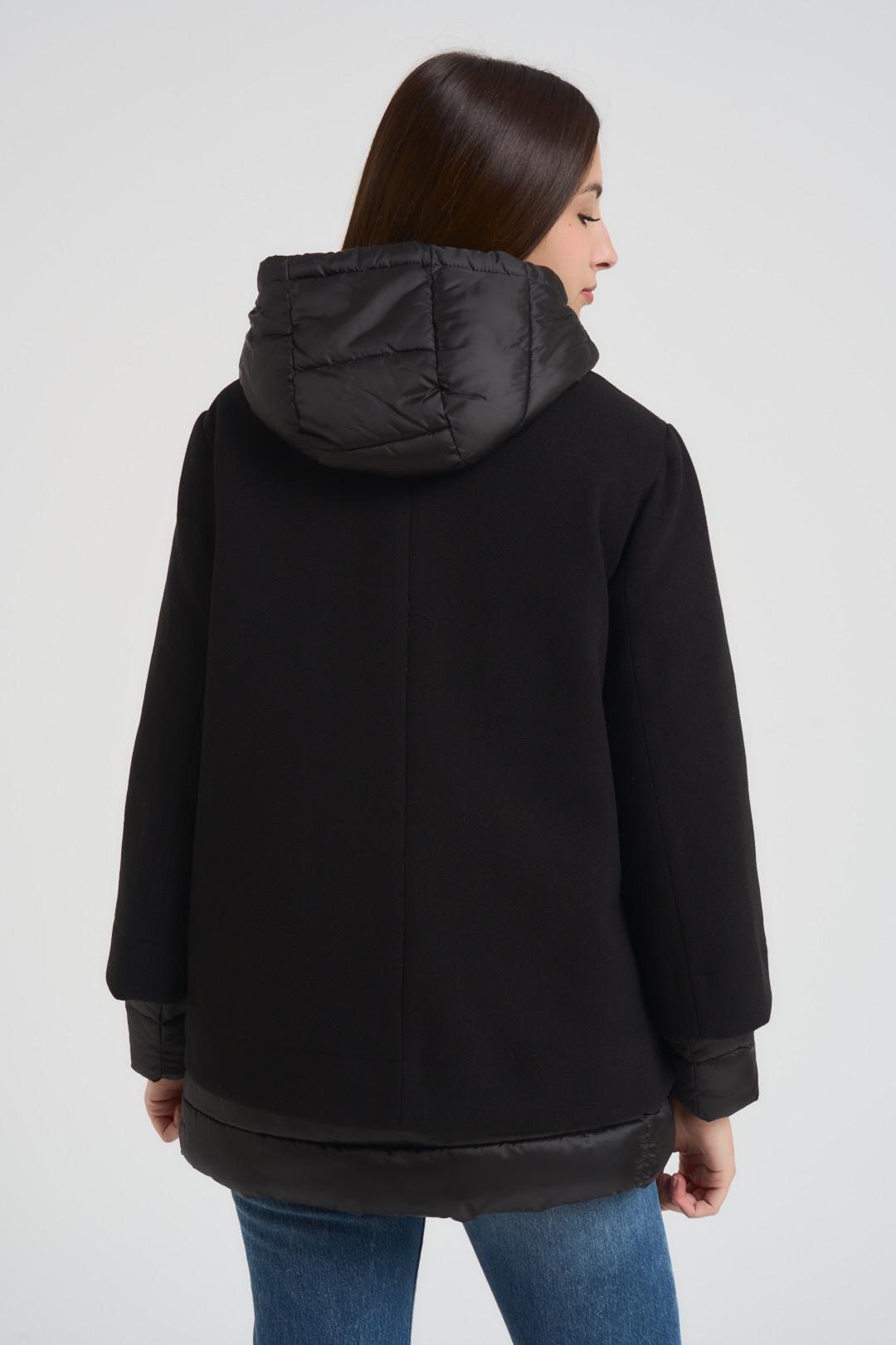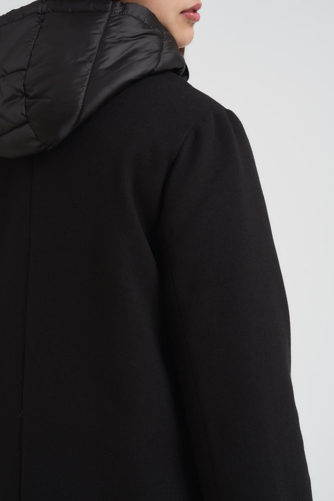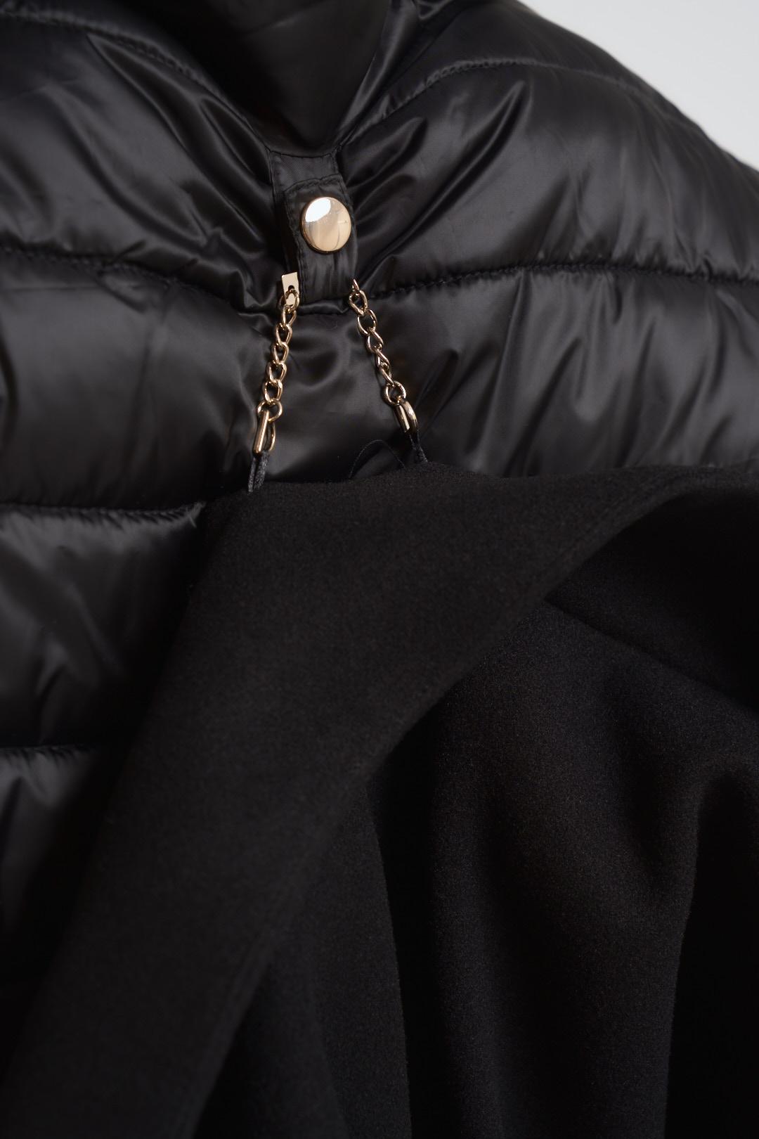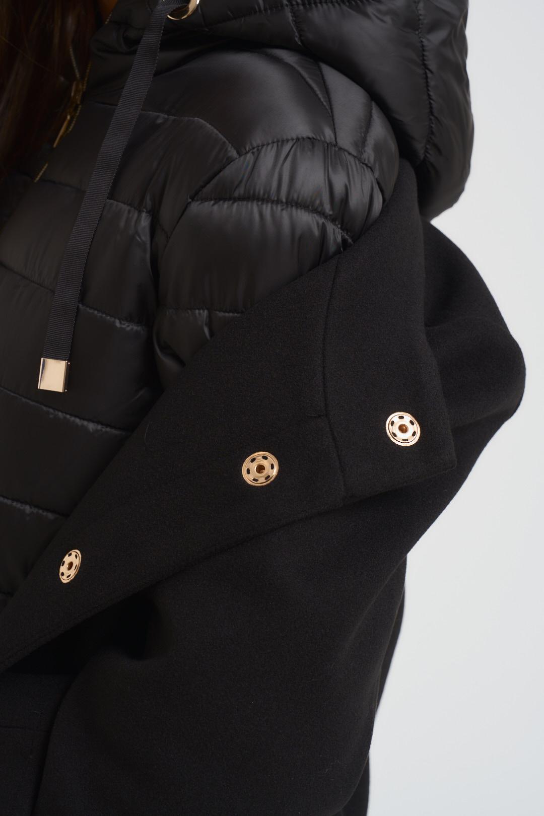 ADIMARI Giubbotto donna con pettorina rimovibile nero. Modello corto. Pettorina con chiusura frontale con bottoni a pressione e manica a tre quarti. Due tasche a filetto. Piumino sottostante con coulisse e cappuccio. Chiusura frontale con zip. Manica lunga. Due tasche con chiusura con zip. Composizione: nylon e poliestere. La modella è alta 176 cm e indossa la taglia S.