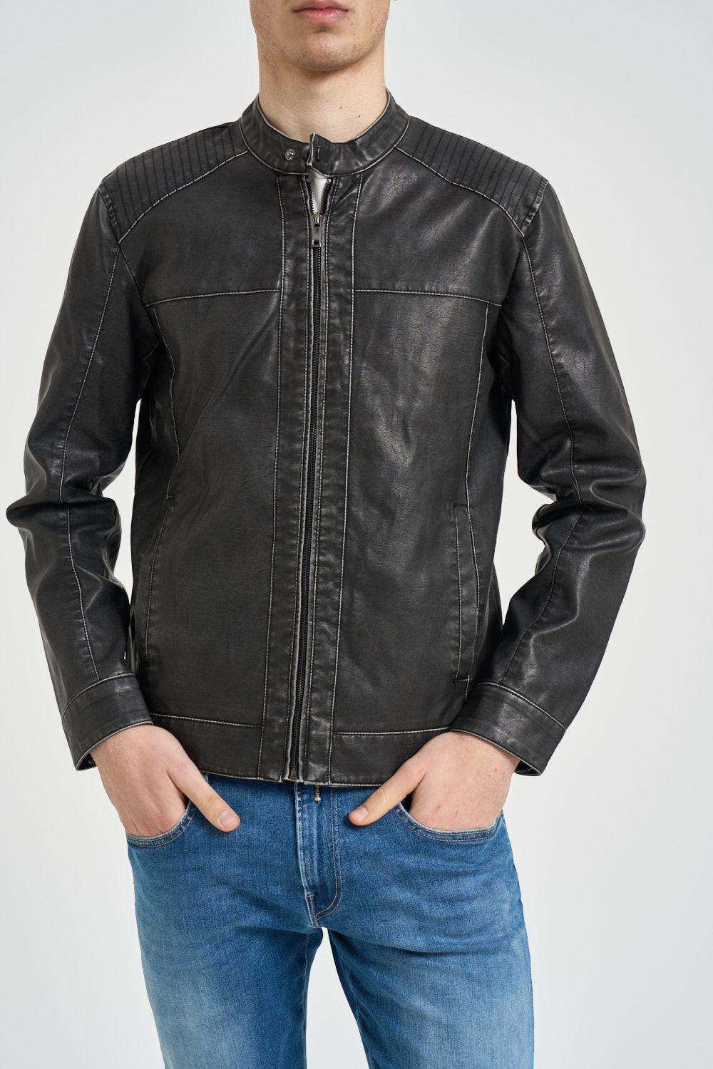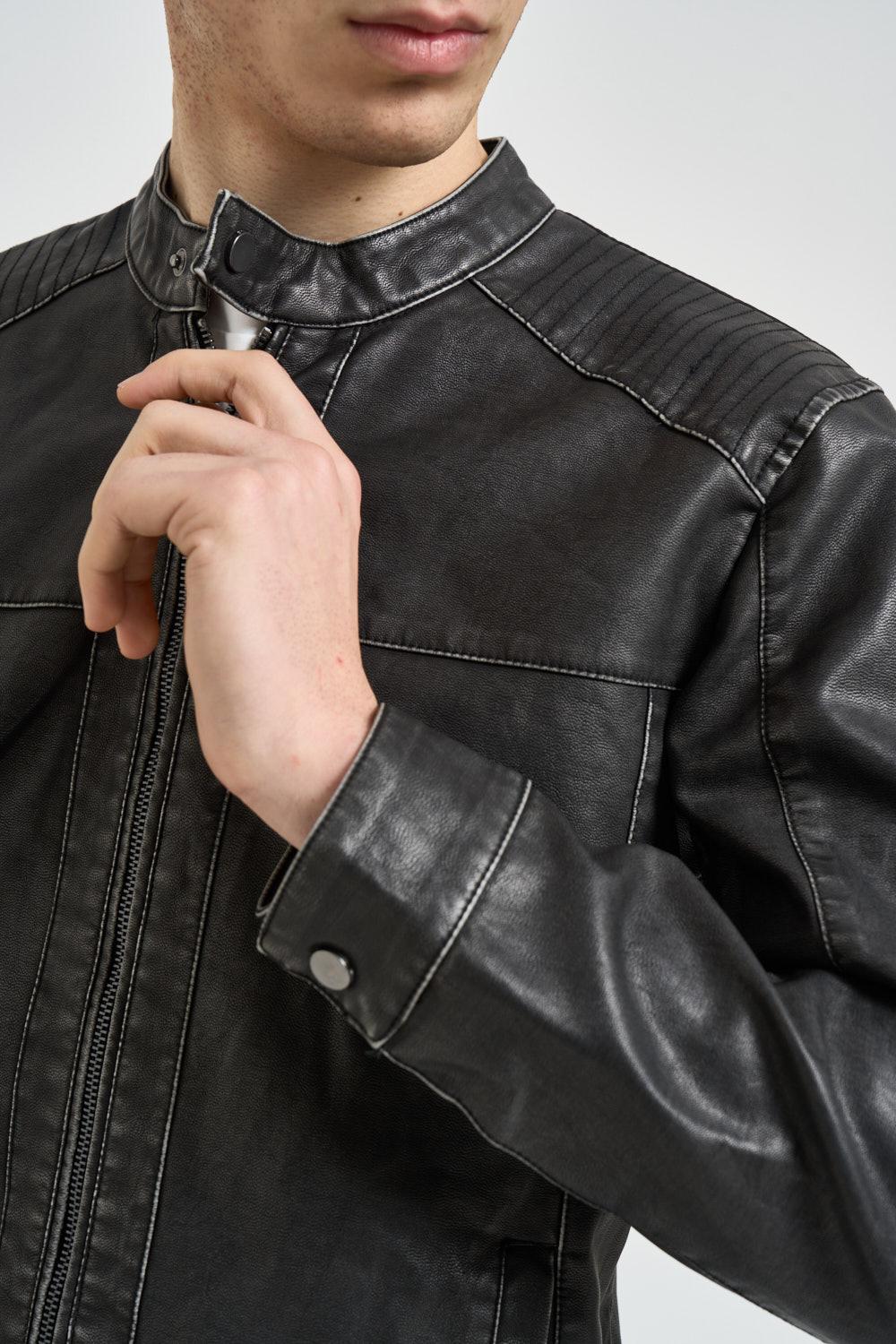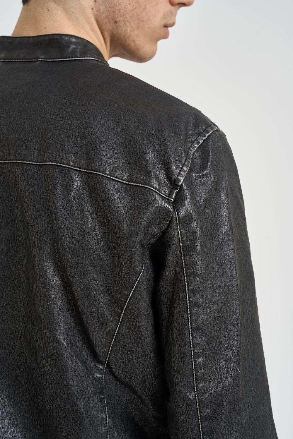 ONLY&SONS NOOS Giubbotto in ecopelle vintage nera. Modello biker con collo alla coreana e dettagli trapuntati sulle spalle. Chiusura frontale con zip. Due tasche laterali a filetto con zip. Composizione: 100% poliestere. Il modello è alto 190 cm e indossa la taglia L.