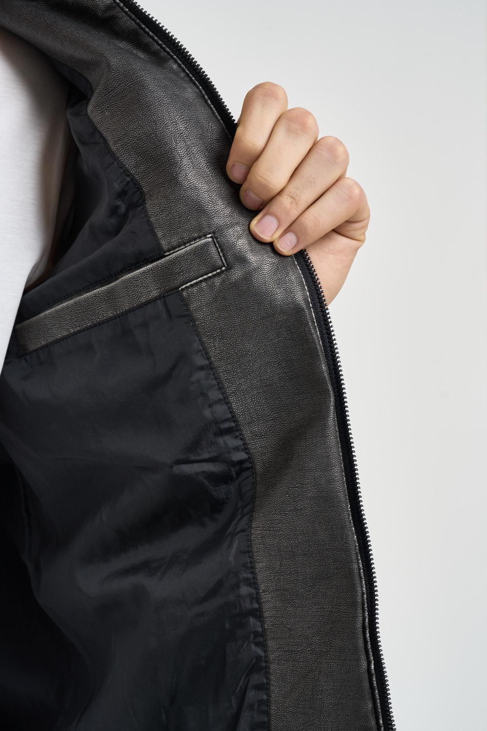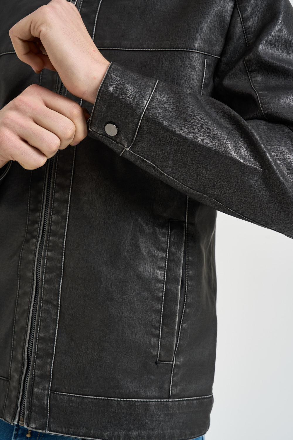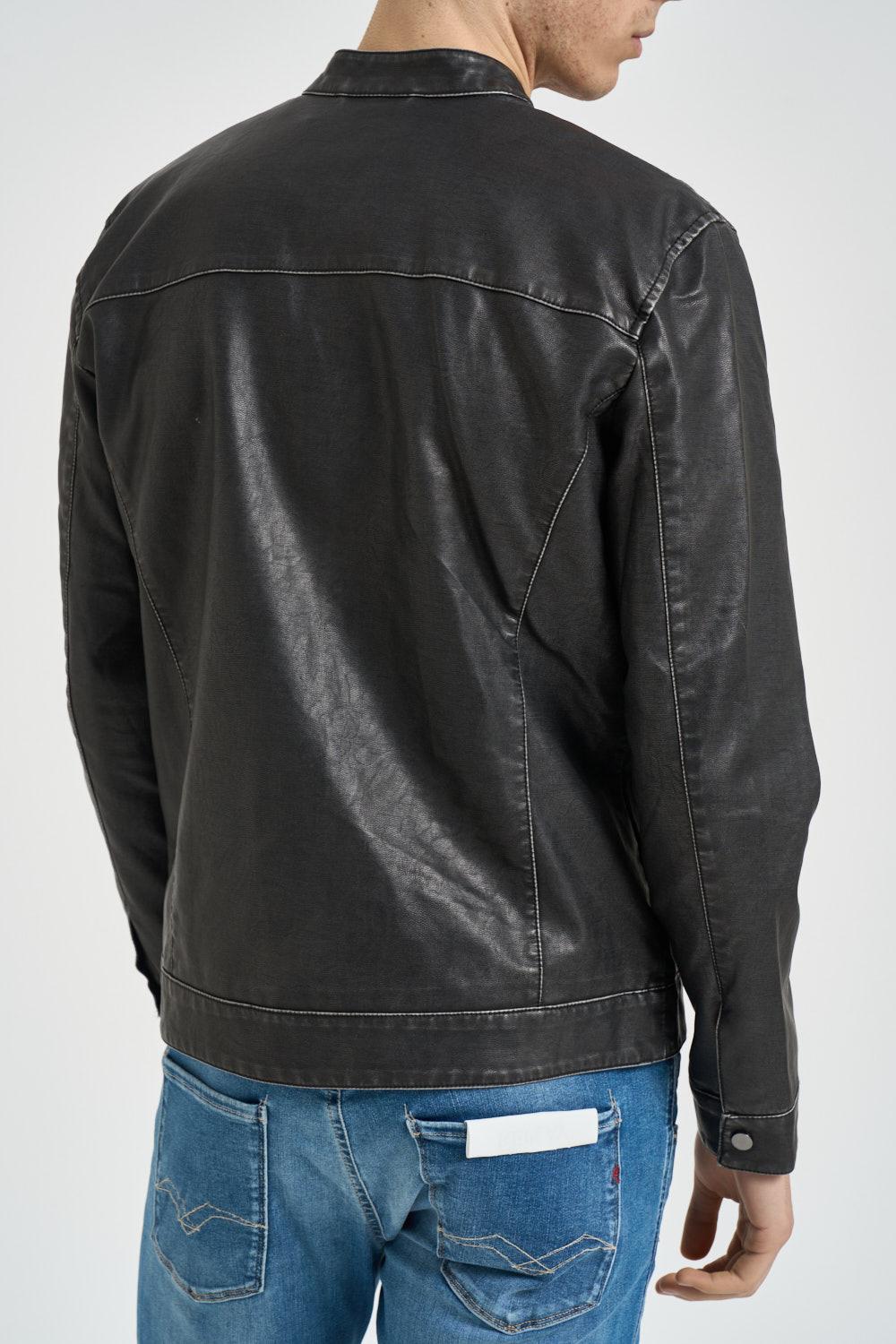 ONLY&SONS NOOS Giubbotto in ecopelle vintage nera. Modello biker con collo alla coreana e dettagli trapuntati sulle spalle. Chiusura frontale con zip. Due tasche laterali a filetto con zip. Composizione: 100% poliestere. Il modello è alto 190 cm e indossa la taglia L.