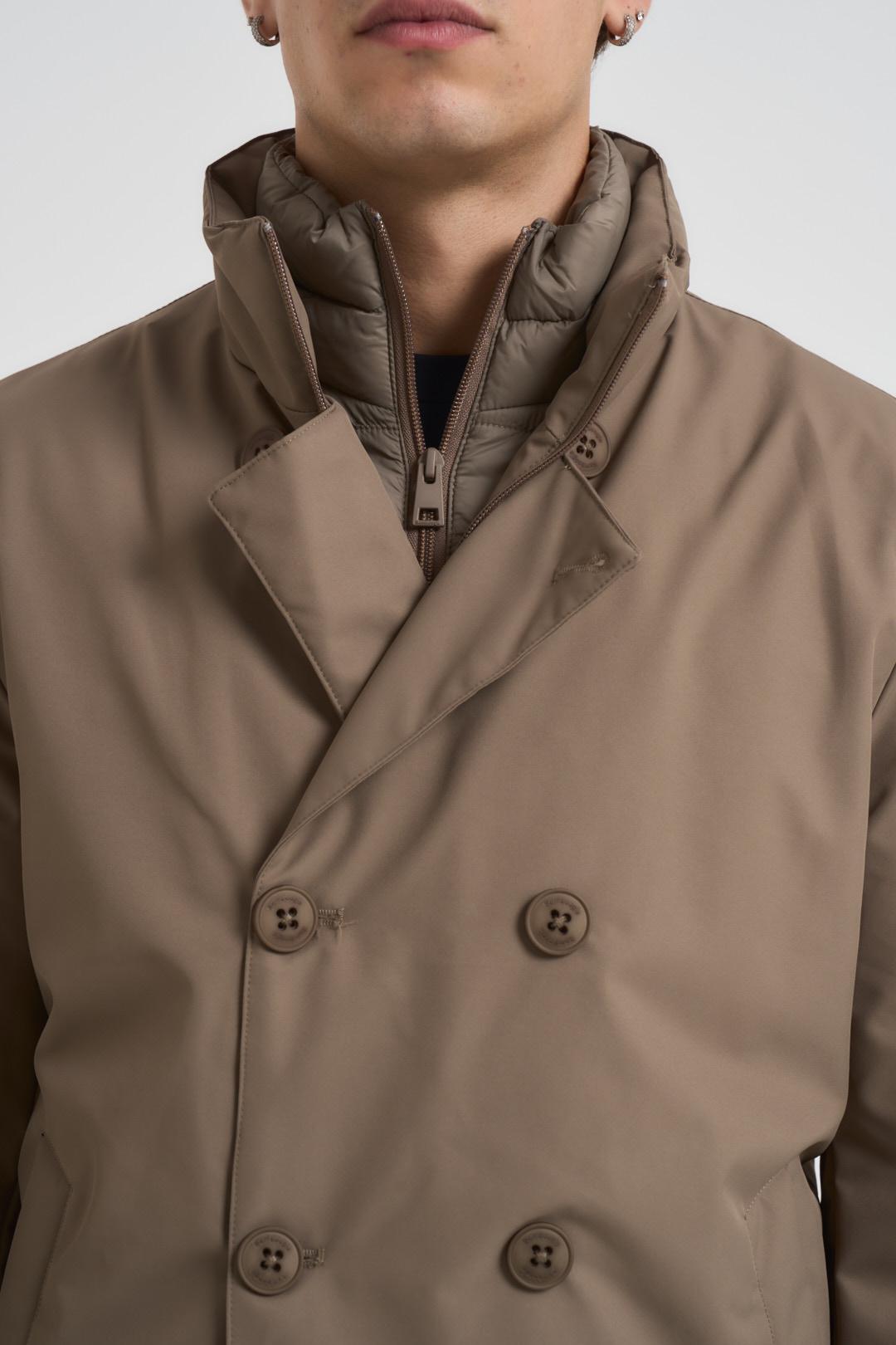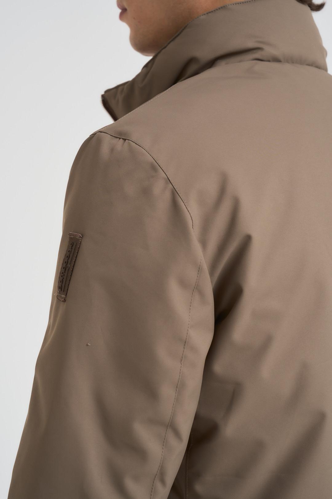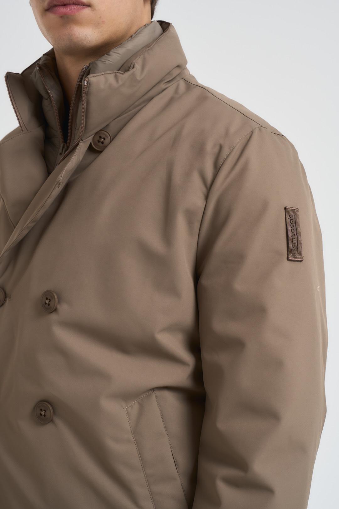 BOMBOOGIE Giubbotto uomo con bottoni. Modello chiusura con zip e bottoni, traspirante, impermeabile, antivento. Fodera in nylon. Composizione: 100% pl. Colore: sabbia. Il modello è alto 185cm e indossa la tg L.