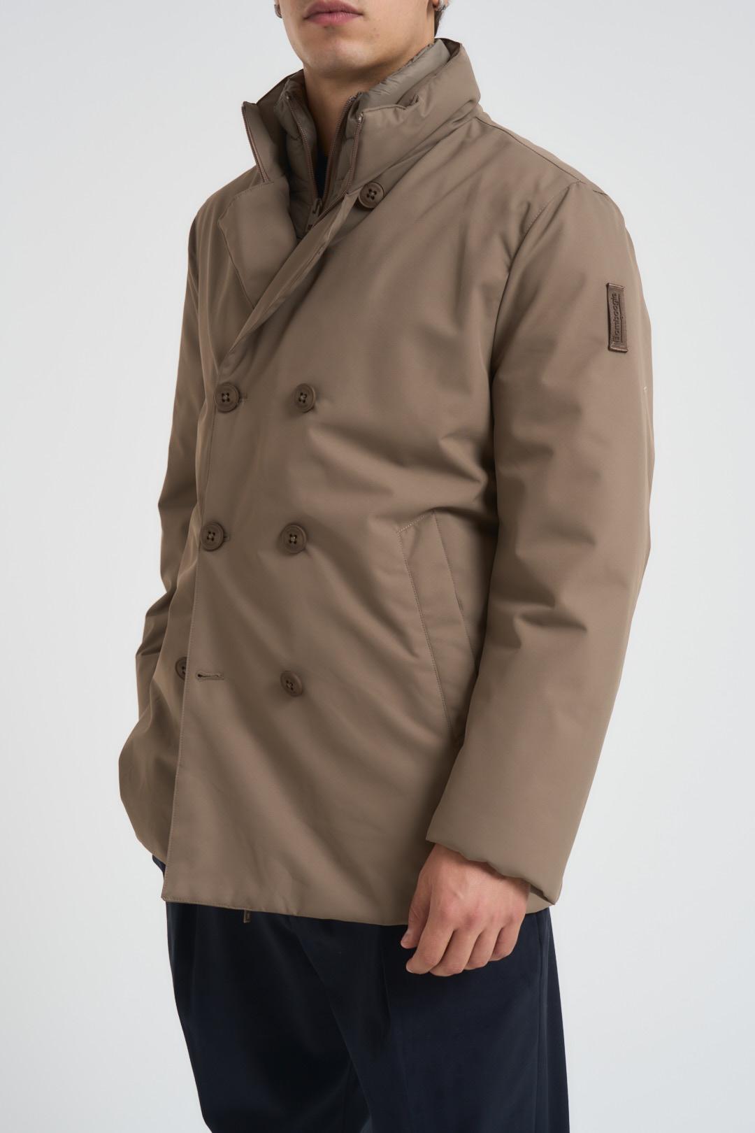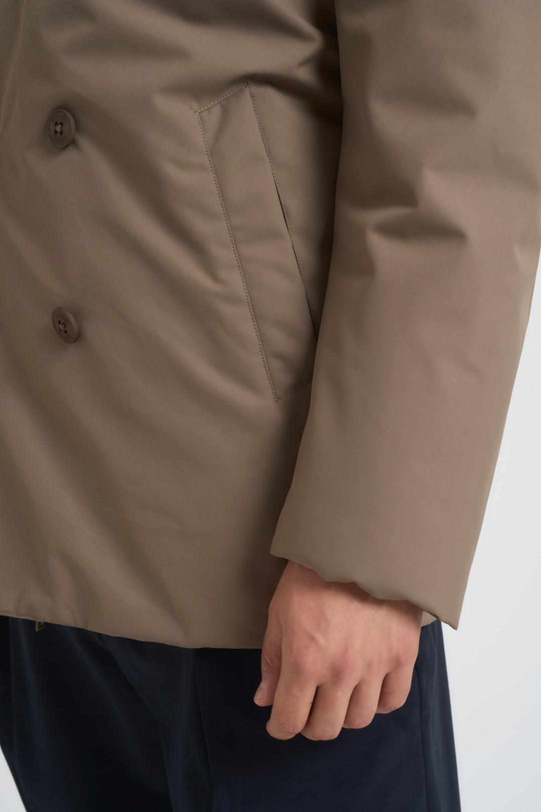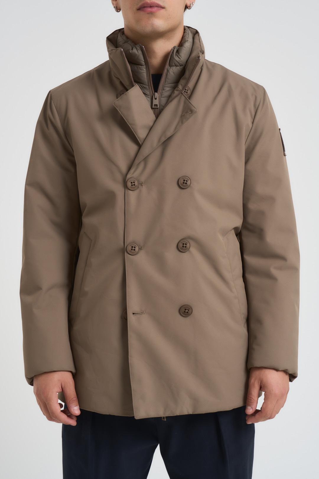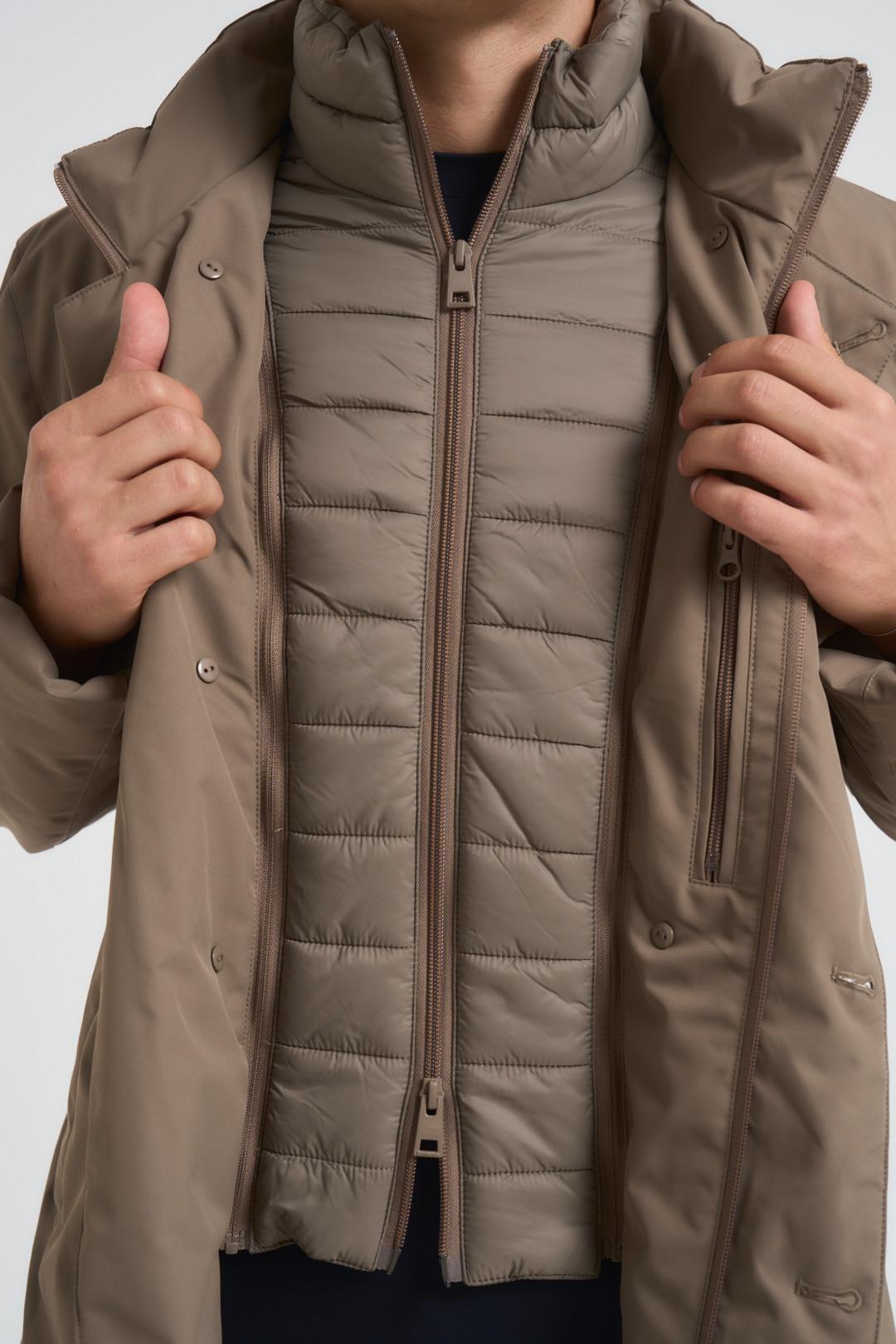 BOMBOOGIE Giubbotto uomo con bottoni. Modello chiusura con zip e bottoni, traspirante, impermeabile, antivento. Fodera in nylon. Composizione: 100% pl. Colore: sabbia. Il modello è alto 185cm e indossa la tg L.