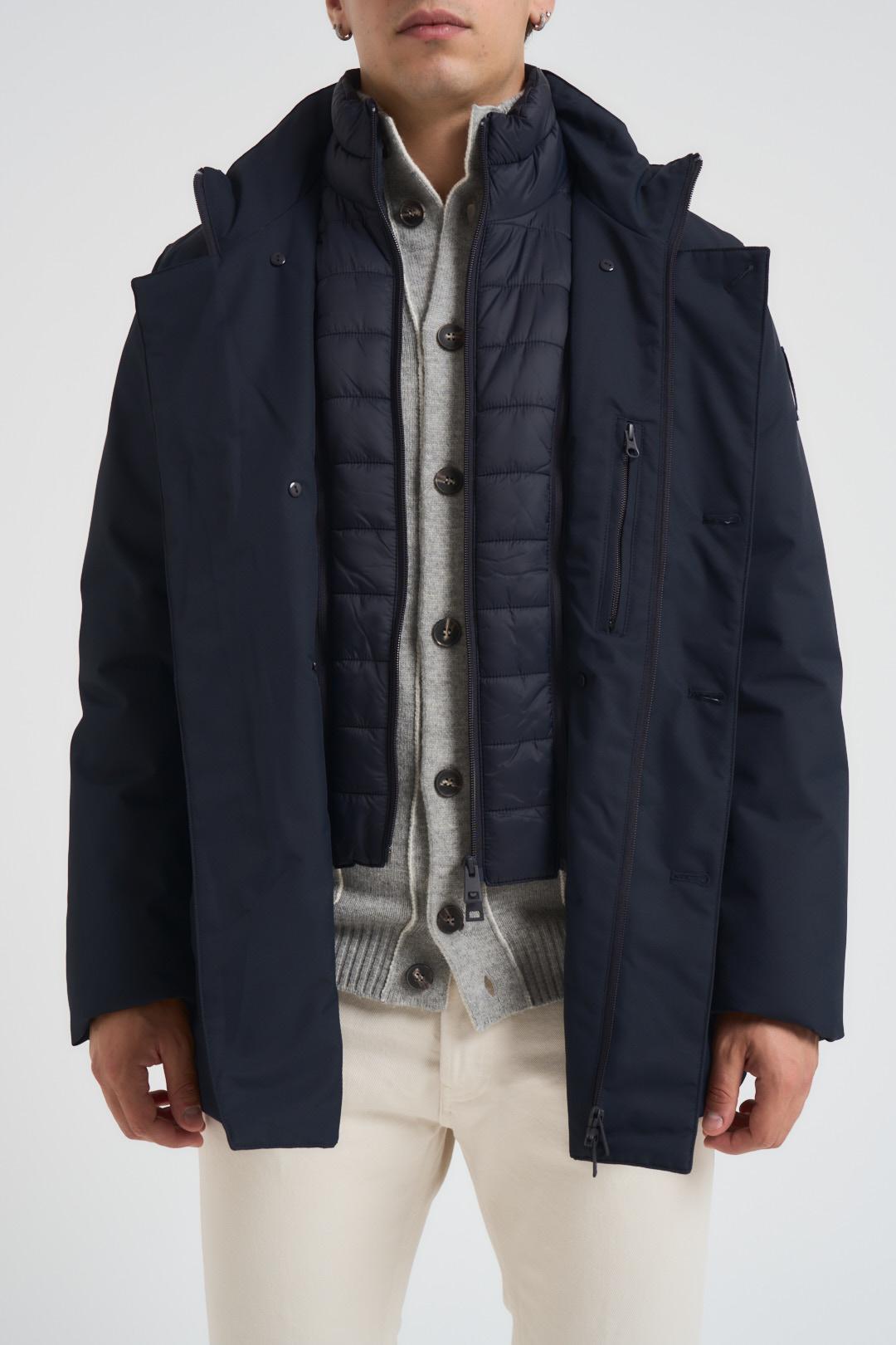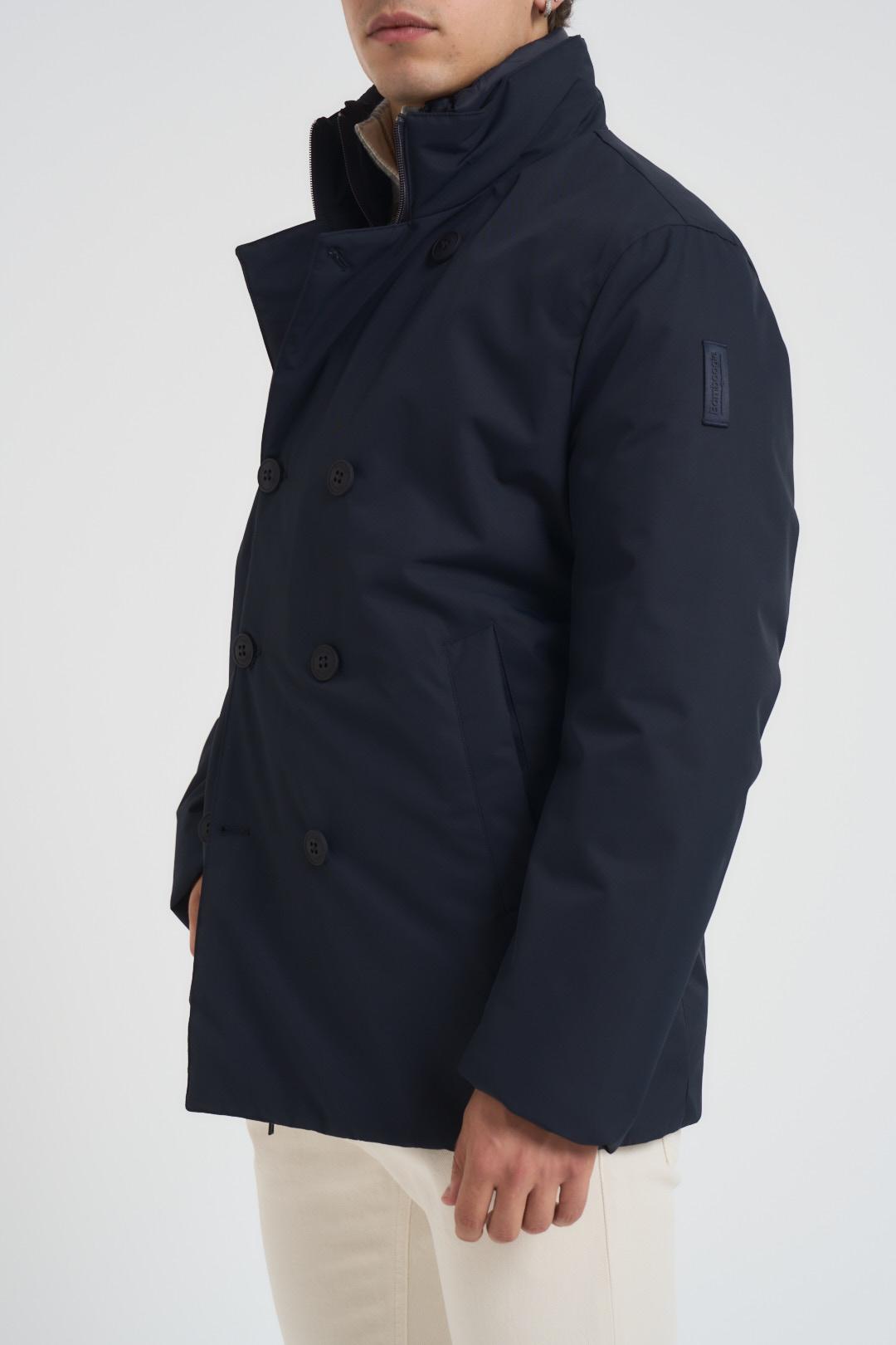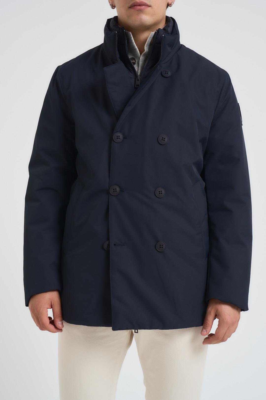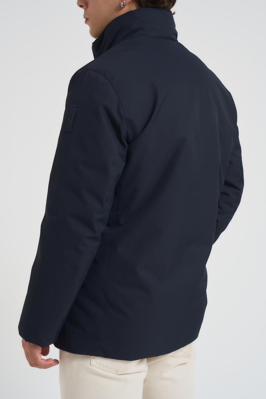 BOMBOOGIE Giubbotto uomo con bottoni. Modello chiusura con zip e bottoni, traspirante, impermeabile, antivento. Fodera in nylon. Composizione: 100% pl. Colore: blu. Il modello è alto 185cm e indossa la tg L.