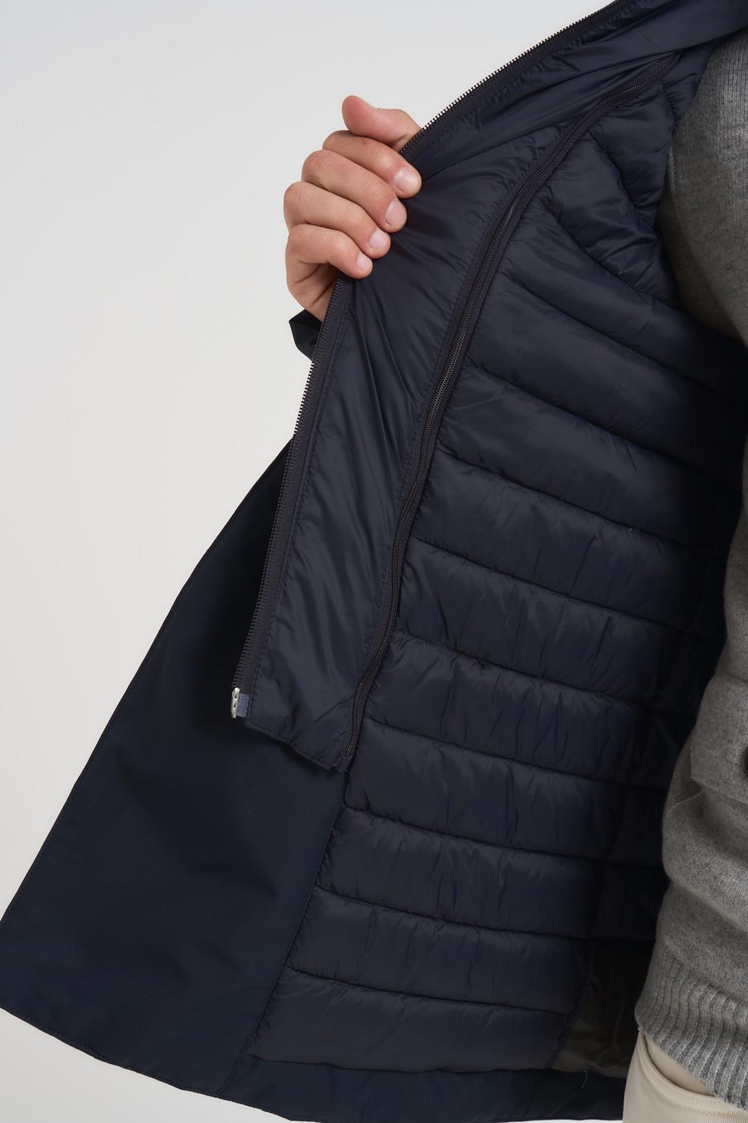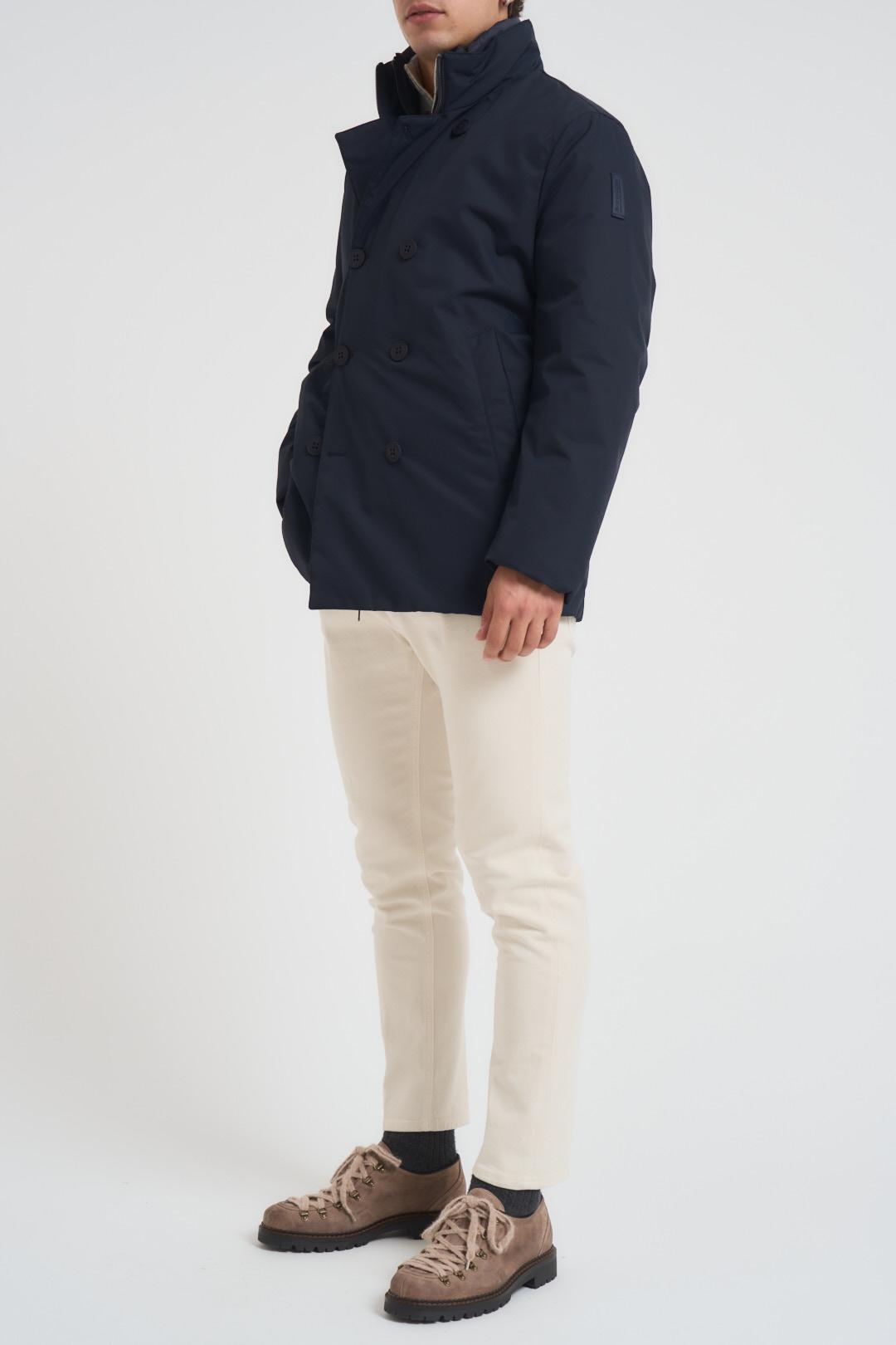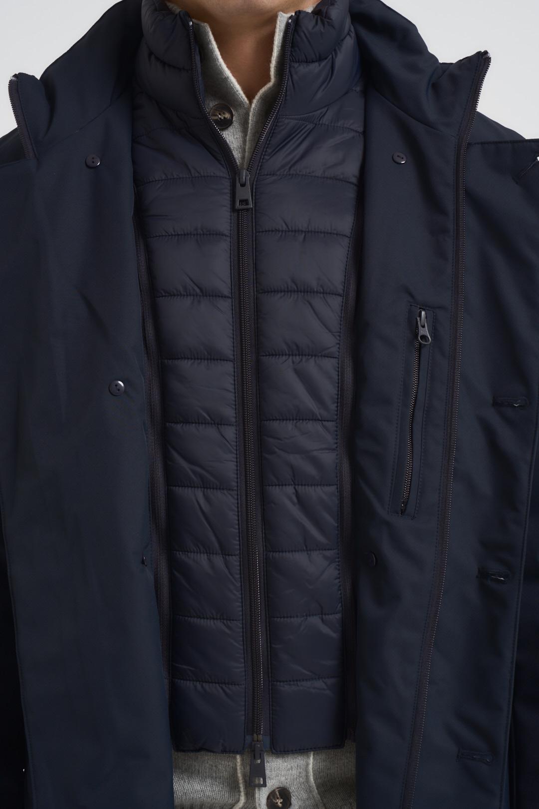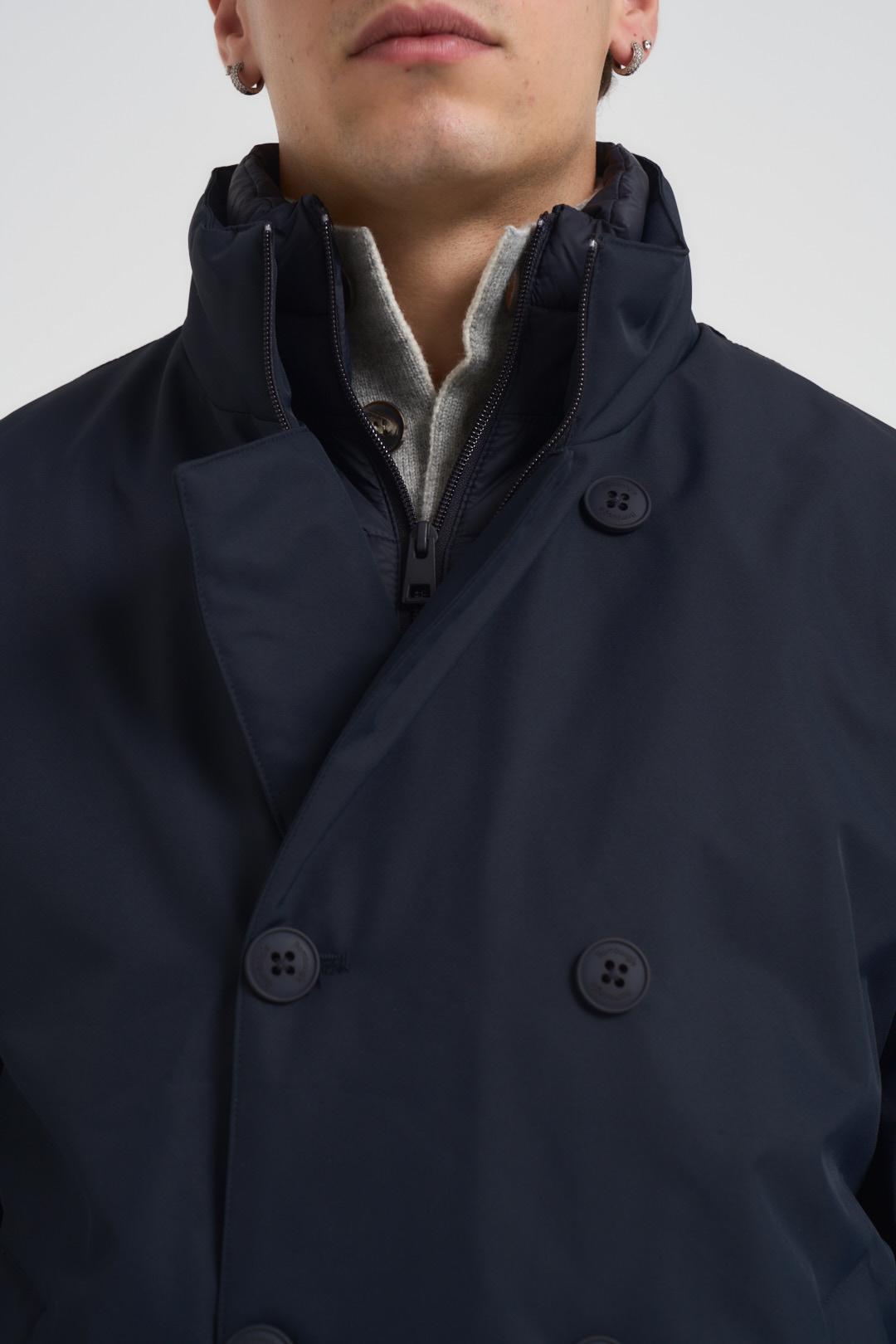 BOMBOOGIE Giubbotto uomo con bottoni. Modello chiusura con zip e bottoni, traspirante, impermeabile, antivento. Fodera in nylon. Composizione: 100% pl. Colore: blu. Il modello è alto 185cm e indossa la tg L.