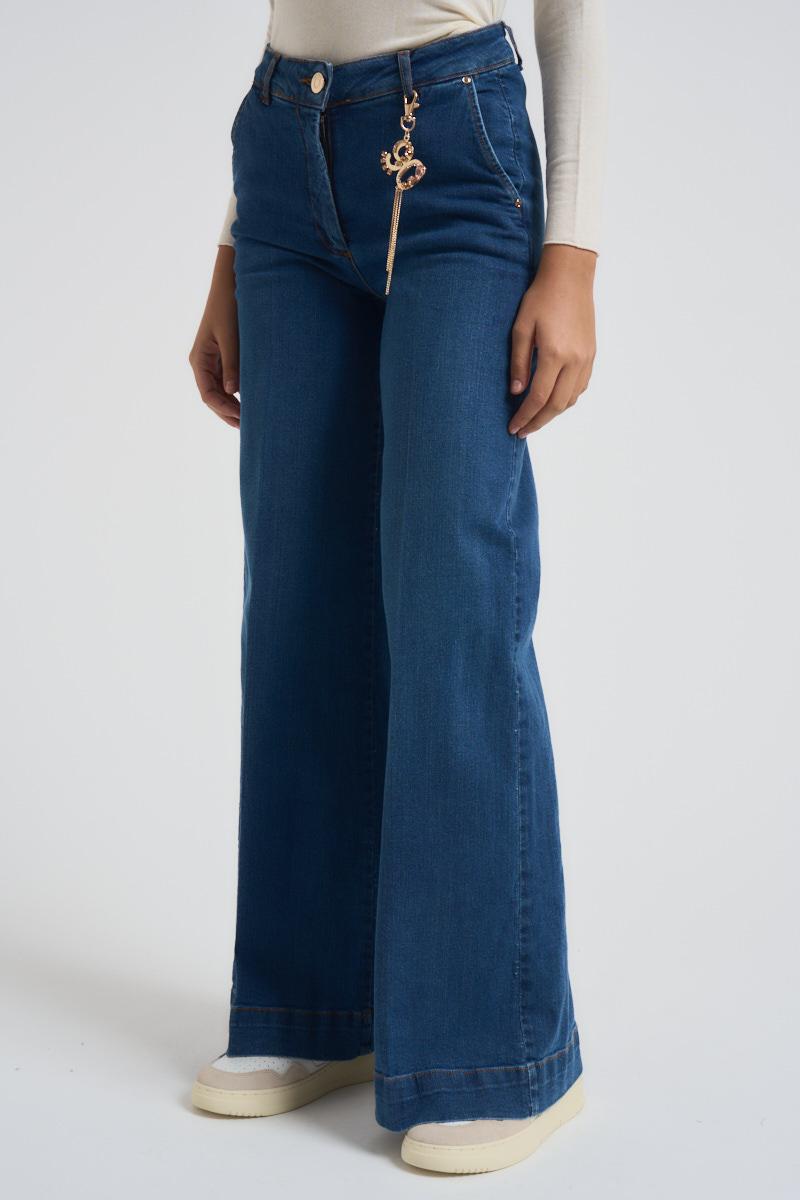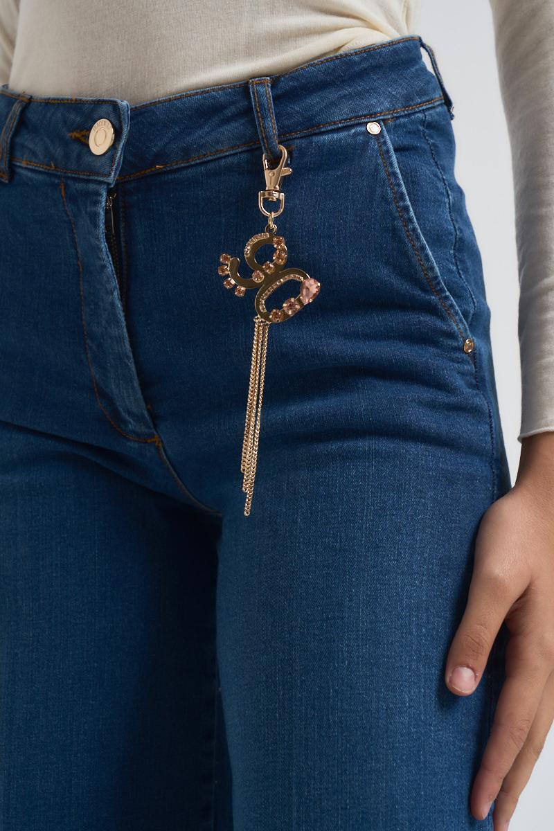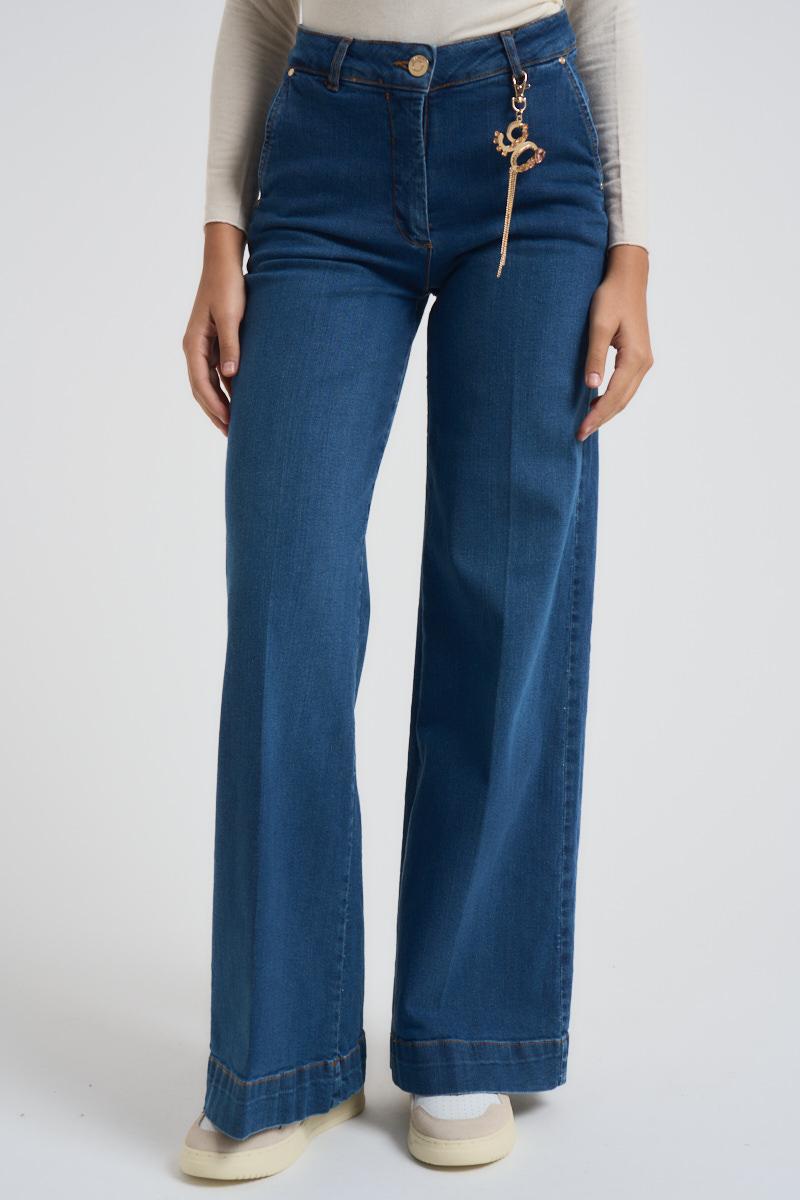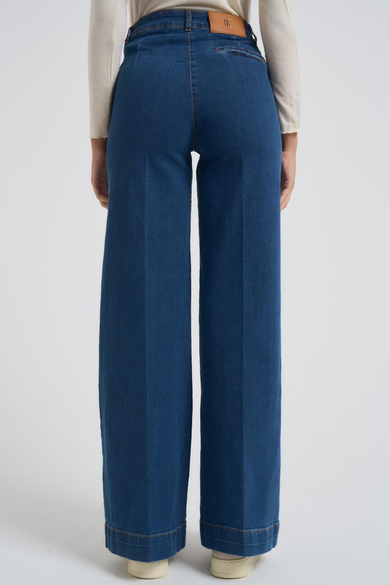 FRACOMINA Jeans a zampa in denim stretch donna blu. Modello aderente, a zampa e vita alta. Chiusura con bottone e cerniera. Due tasche laterali a taglio. Composizione: 99% Cotone 1% Elastan.La modella è alta 172 cm e indossa la taglia 25.