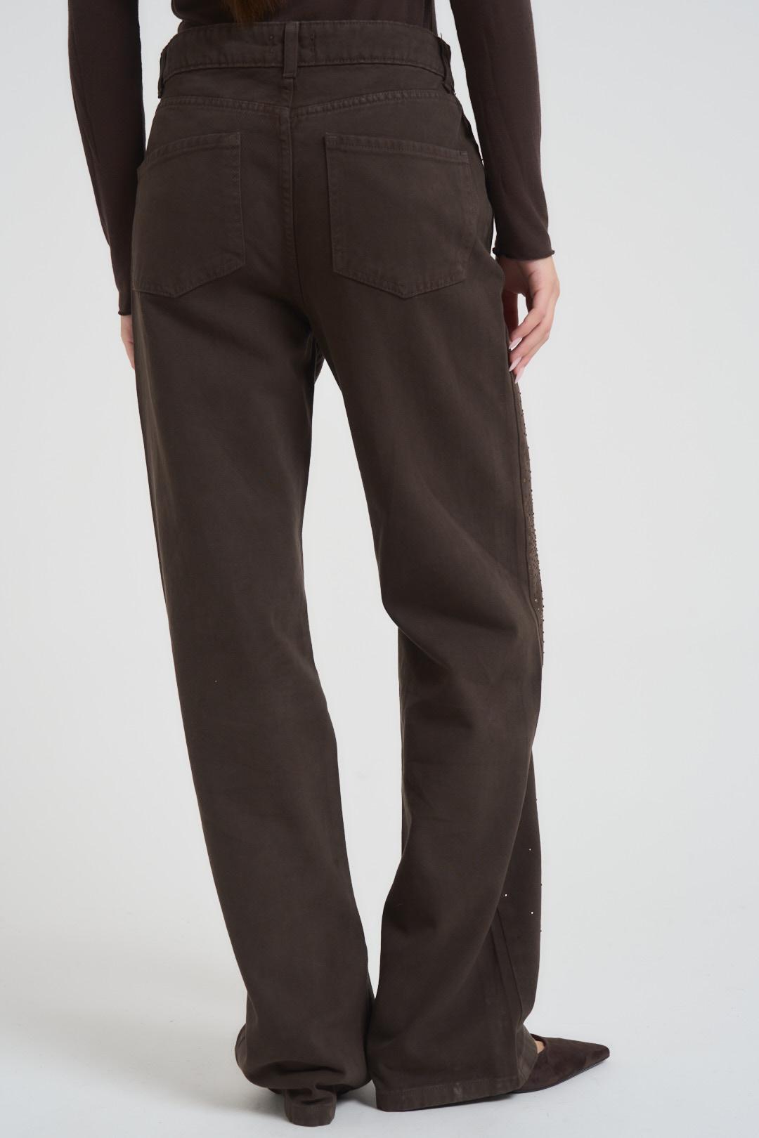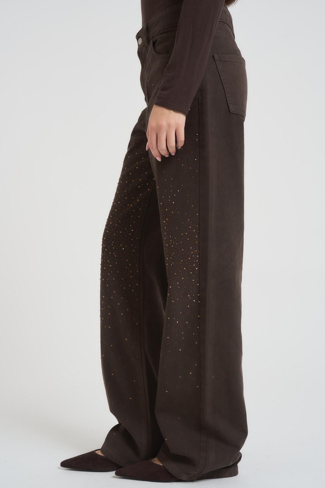 SUSY MIX Jeans donna con strass moro. Modello wide leg. Chiusura frontale con zip e bottone. Cinque tasche Composizione: 100% Cotone. La modella è alta 172 cm e indossa la taglia S.