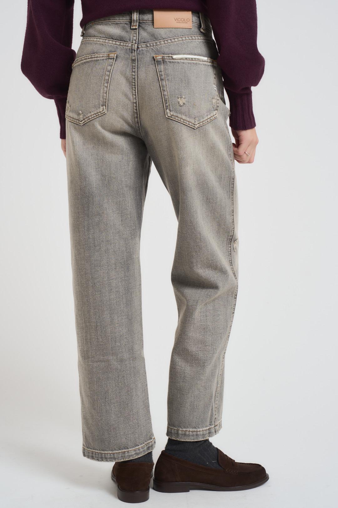 VICOLO Jeans donna dritto grigio chiaro. Modello lunghezza fino alla caviglia. Chiusura frontale con zip e bottone. Cinque tasche. Passanti in vita. Composizione: 100% cotone. La modella è alta 172 cm e indossa la taglia S.