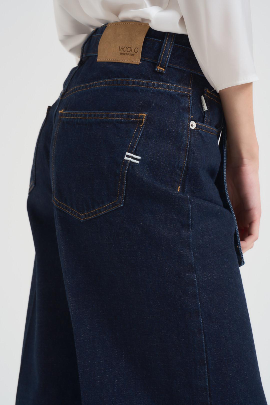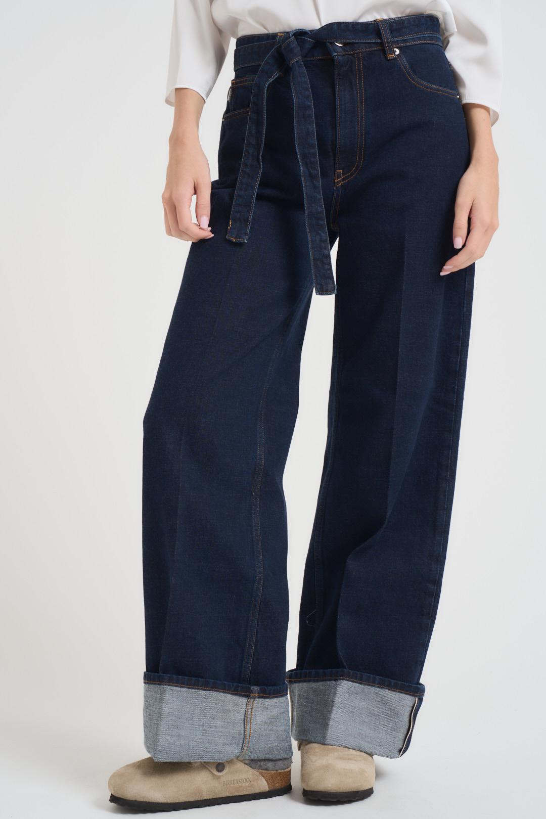 VICOLO Jeans donna Elissa in denim scuro. Modello a gamba dritta, con risvolto non fisso. Cinque tasche. Chiusura con zip e bottoni. Passanti per cintura. Cintura inclusa. Composizione: 100% Cotone. La modella è alta 175 cm e indossa la taglia S.