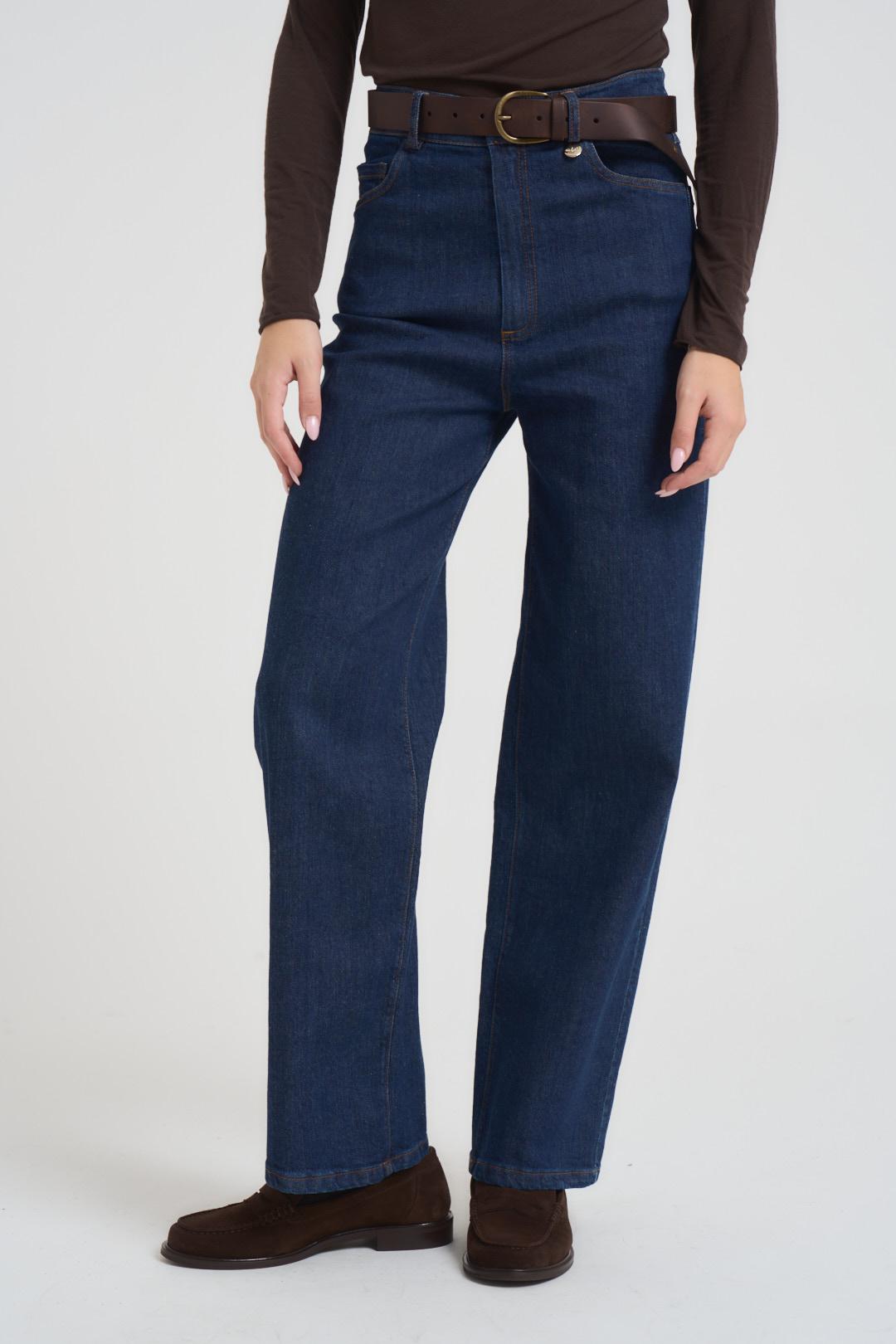 INCLOTH Jeans donna gamba dritta in denim scuro. Modello con chiusura frontale con zip e bottone. Cinque tasche. Composizione: 100% Cotone. La modella è alta 172 cm e indossa la taglia S.