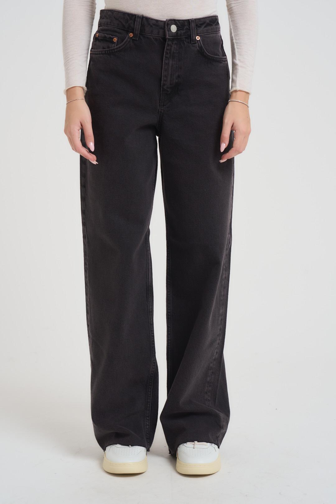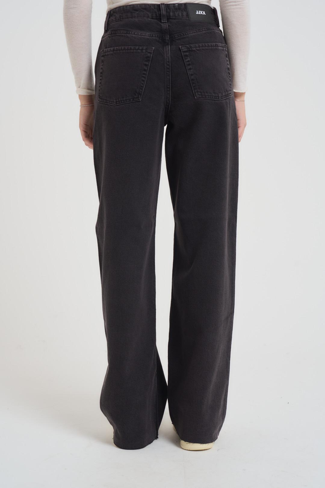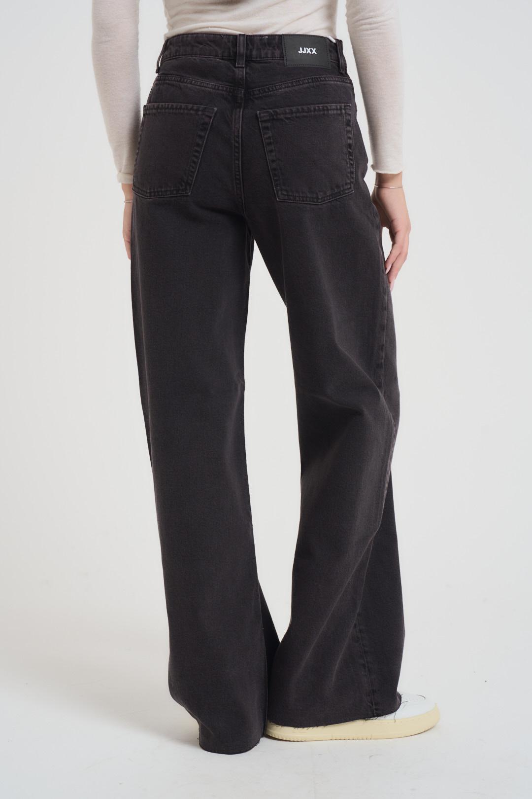 JJXX Jeans donna nero a palazzo. Lavaggio stonewash per un effetto sbiadito e usato. Chiusura con zip e bottone. Vita alta. Orlo destroyed. Wide fit leg. 100% Cotone. La modella è alta 172 cm e indossa la taglia 25.