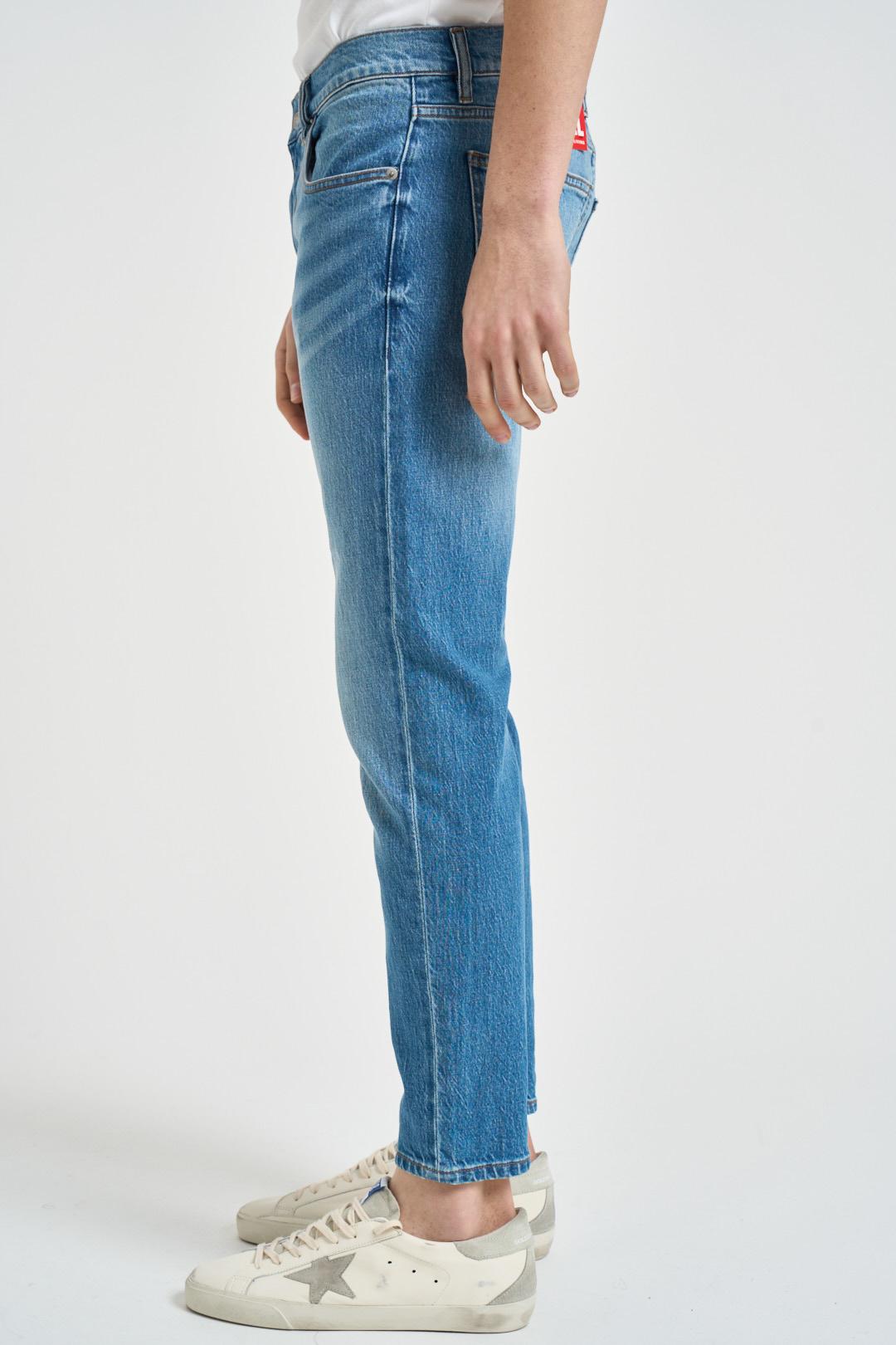 DIESEL Jeans uomo D-Strukt in denim chiaro. Modello dal design classico a cinque tasche. Chiusura frontale con bottoni e zip. Targhetta con logo. Passanti. Taglio slim. Composizione: 98% Cotone 2% Elastane. Il modello è alto 185 cm e indossa la taglia 33.