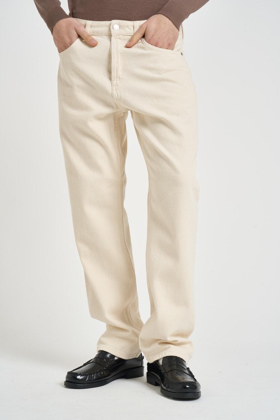 ONLY & SONS NOOS Jeans uomo gamba dritta in denim ecru. Modello con chiusura frontale con cerniera e bottone. Passanti in vita. Cinque tasche. Composizione: 100% cotone. Il modello è alto 190 cm e indossa la taglia 33.