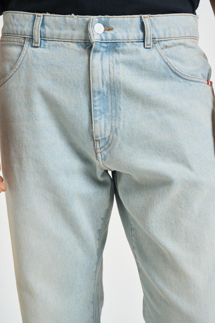 AMISH Jeans uomo James in denim chiaro. Modello a vita media con passanti. Chiusura con bottone logato e zip. Due tasche sul fronte e due tasche sul retro. Loose fit. Composizione: 100% Cotone. Il modello è alto 190 cm e indossa la taglia 33.