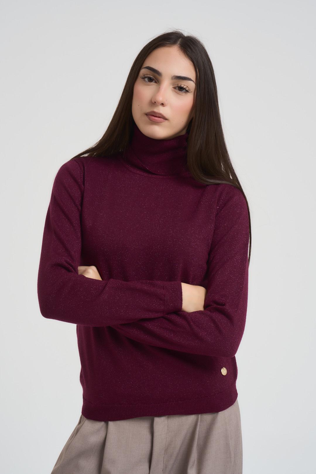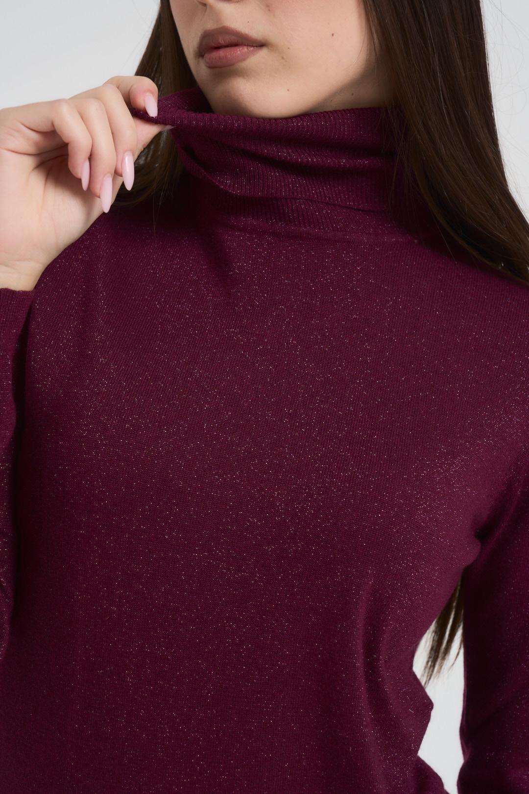 INCLOTH Maglia donna collo alto in lurex. Modello in lurex. Collo, fondo manica e orlo a costine. Colore: bordeaux. Composizione: 100%Viscosa.