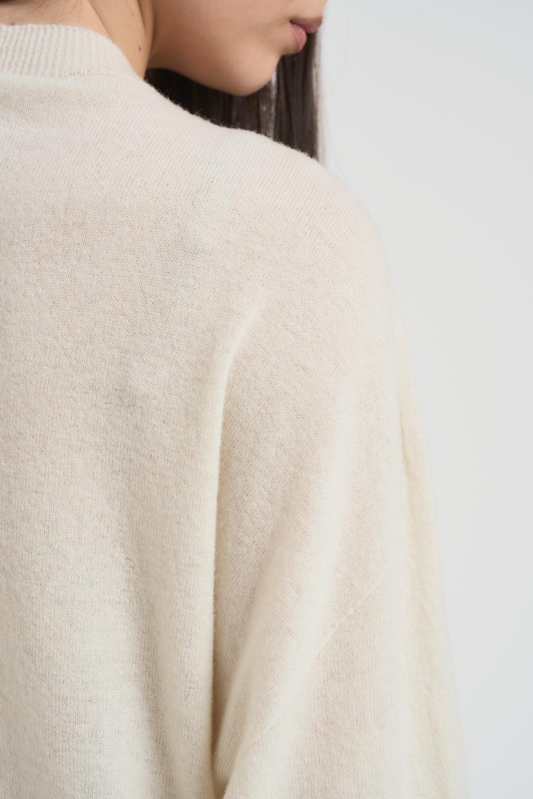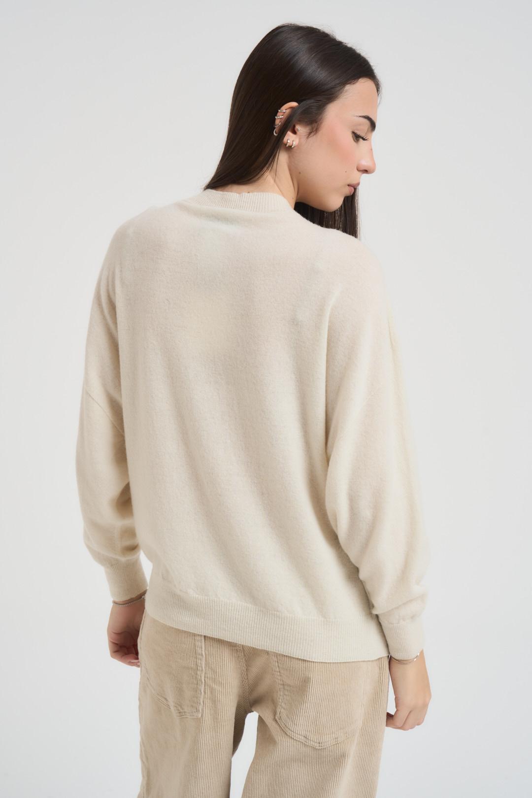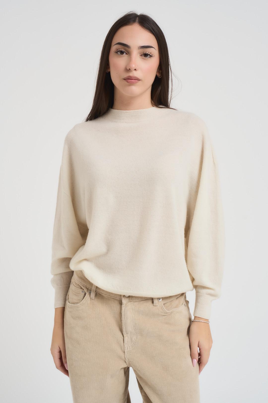 VICOLO Maglia donna scollo a barca panna. Modello manica lunga e dettagli a costine, manica lunga che si stringe sul fondo. Regular fit. Composizione: Lana 55%, Cashmere 45%. La modella è alta 172 cm e indossa la taglia unica.