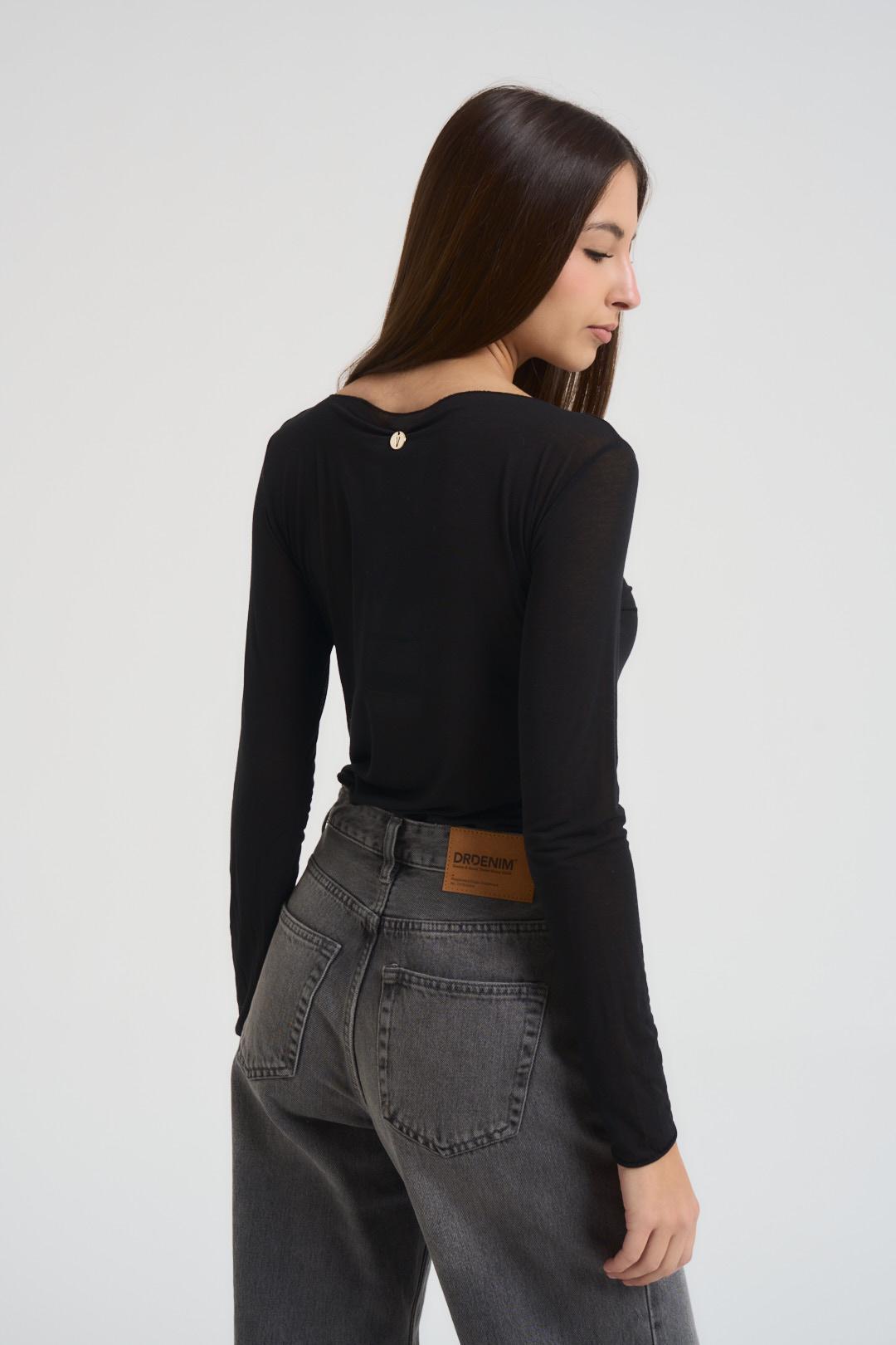 VITTO Maglia donna scollo a barchetta moro. Modello slim fit. Manica lunga. Composizione: 100% Viscosa. La modella è alta 172 cm e indossa la taglia UNI.