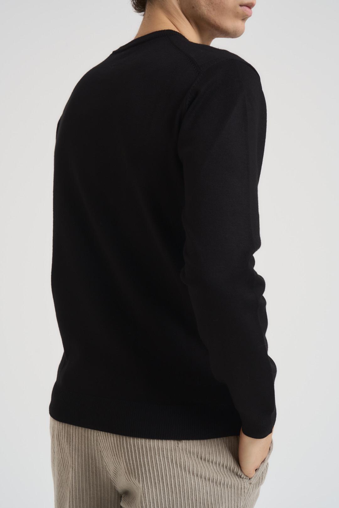 HAMAKI-HO MILANO Maglia uomo basic girocollo nero. Modello maniche lunghe. Polso e fondo a costine. Composizione: 70% viscosa 30% pl. Il modello è alto 185cm e indossa la tg L.